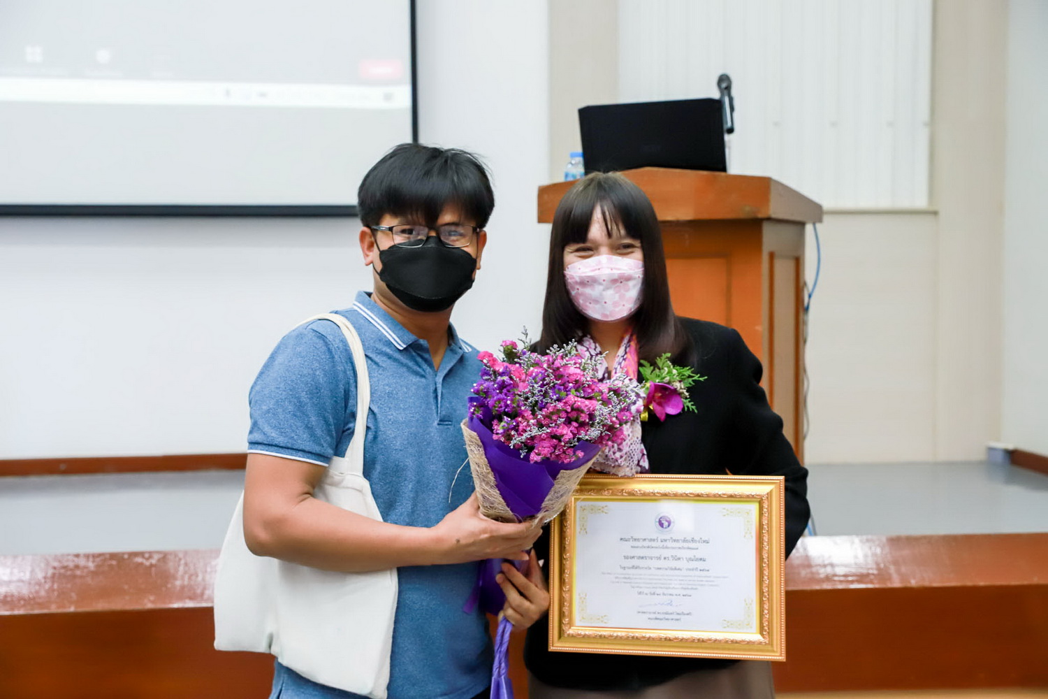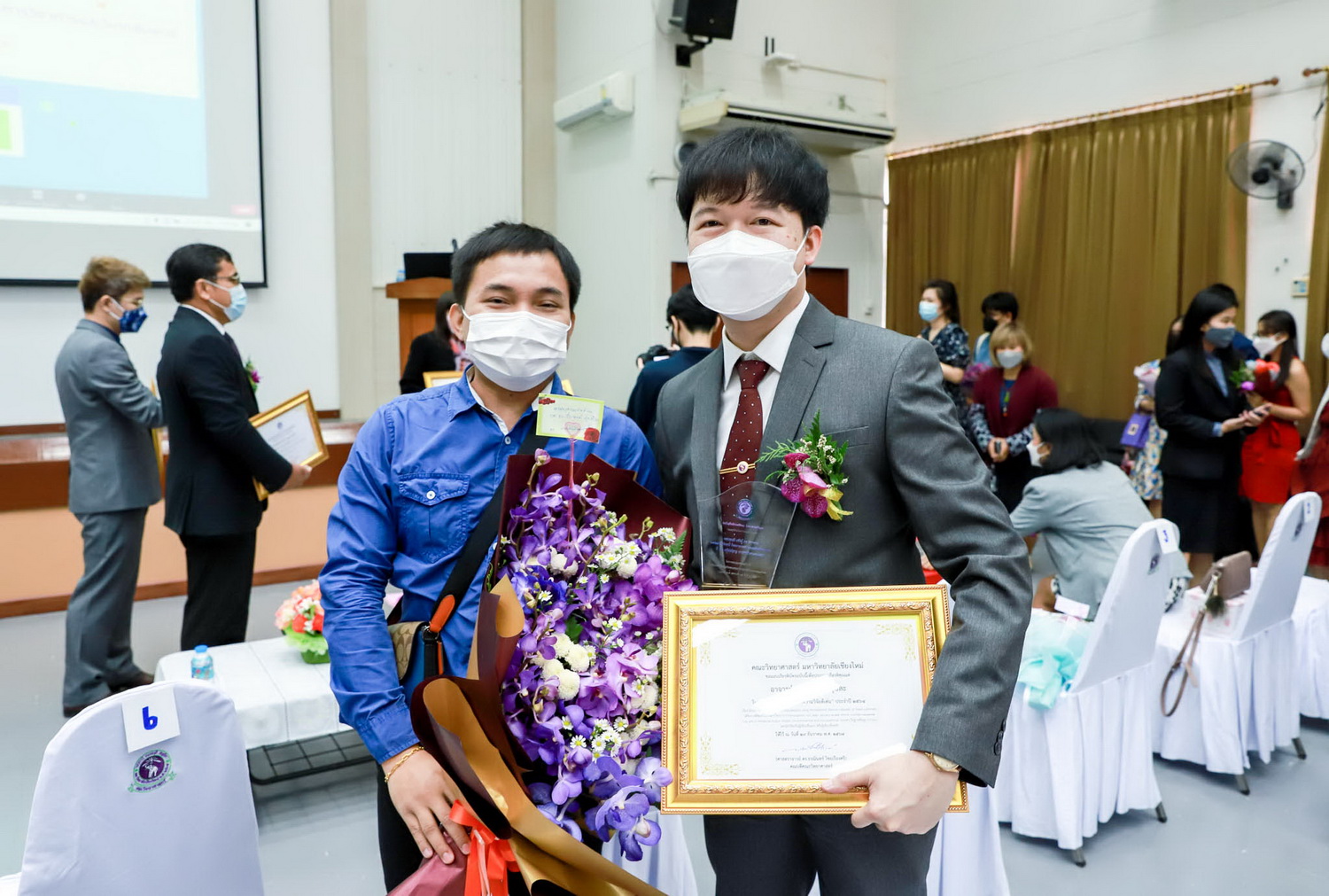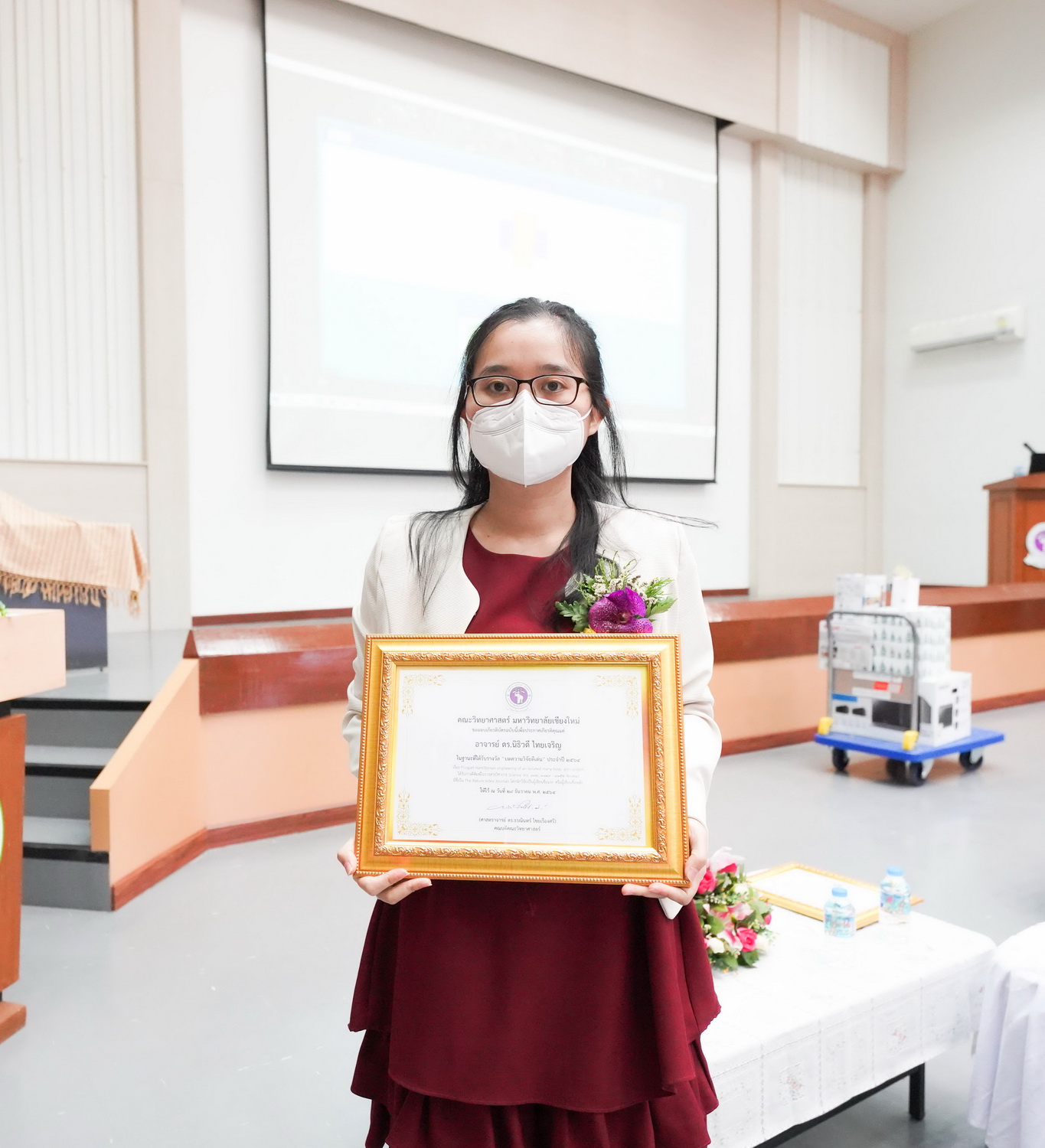 นอกจากนี้ ภายในงานยังมีการแนะนำผู้บริหารและบุคลากรใหม่ ตลอดจนการมอบรางวัลอาจารย์ผู้สอนดีเด่น รางวัลบุคลากรดีเด่น รางวัลนักวิจัยที่มีผลงานวิจัยดีเด่น และร่วมแสดงความยินดีกับบุคลากรได้รับรางวัลและการเชิดชูเกียรติจากหน่วยงานต่างๆ ทั้งภายในและภายนอกมหาวิทยาลัยเชียงใหม่ โดยมีคณาจารย์และบุคลากรจากทั้งสำนักงานคณะ ภาควิชา และศูนย์ เข้าร่วมงานผ่านระบบออนไลน์อย่างคับคั่ง