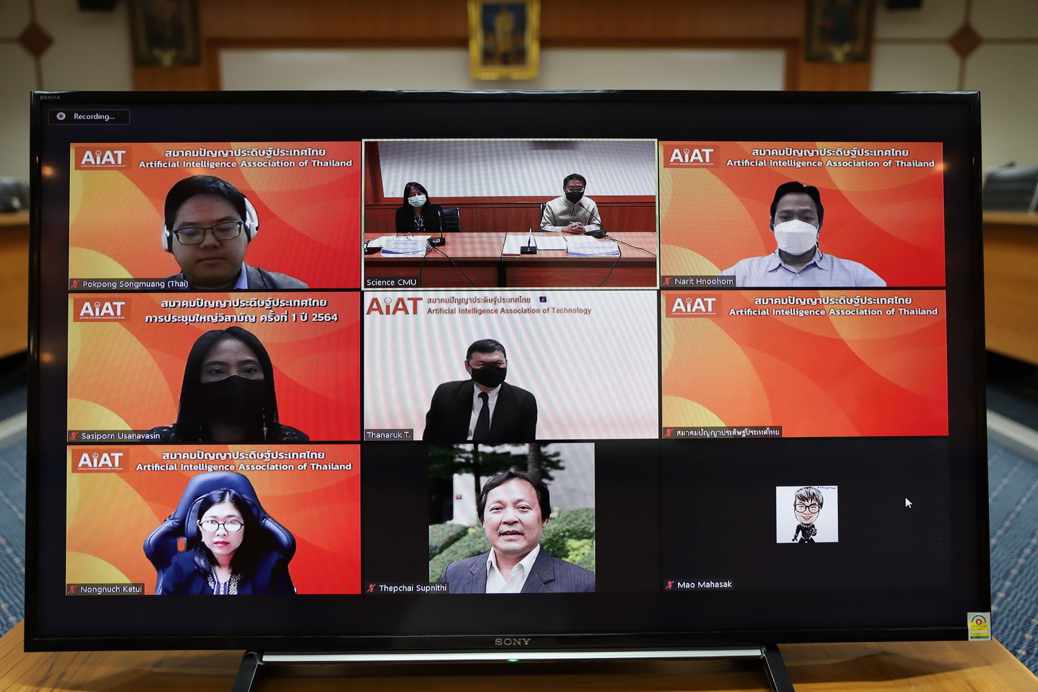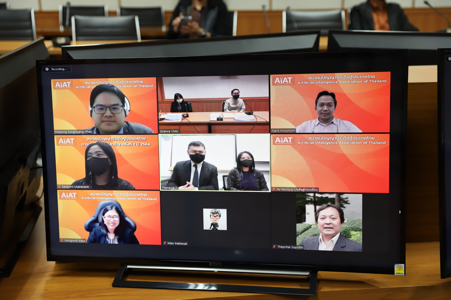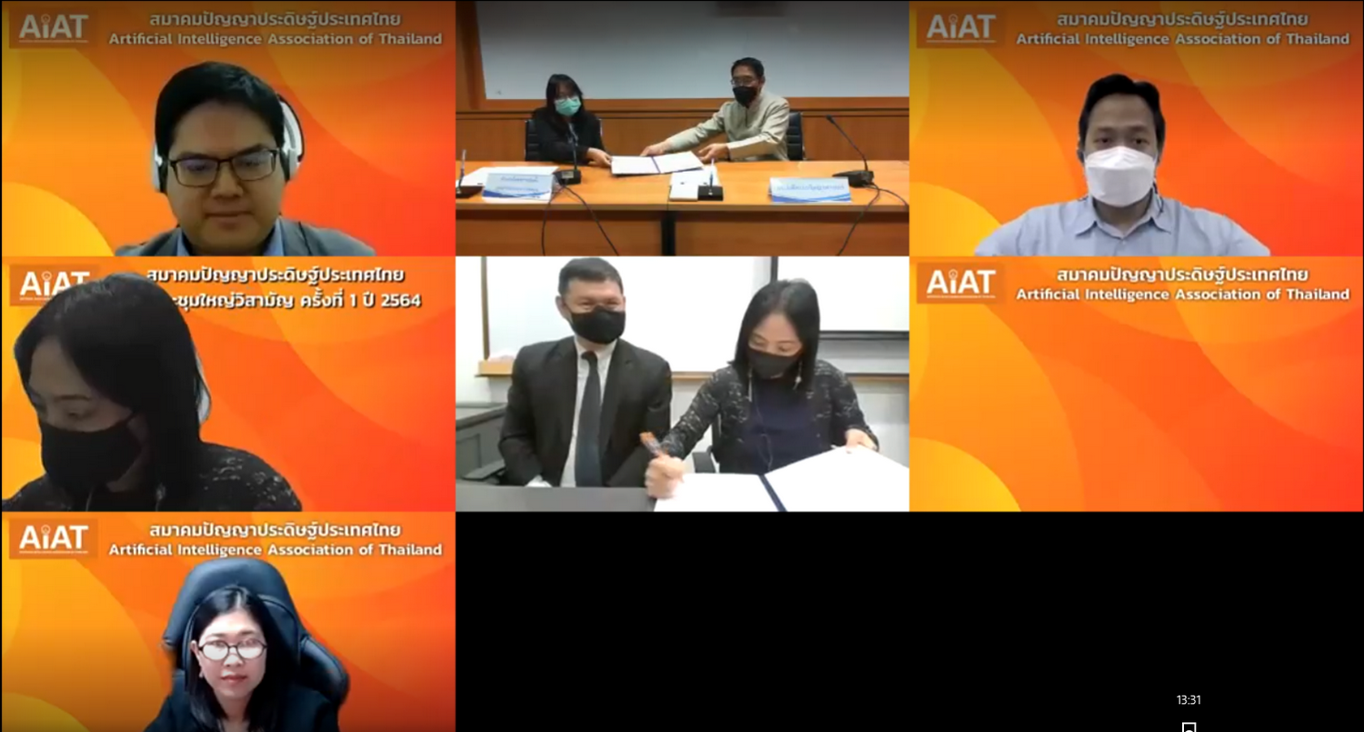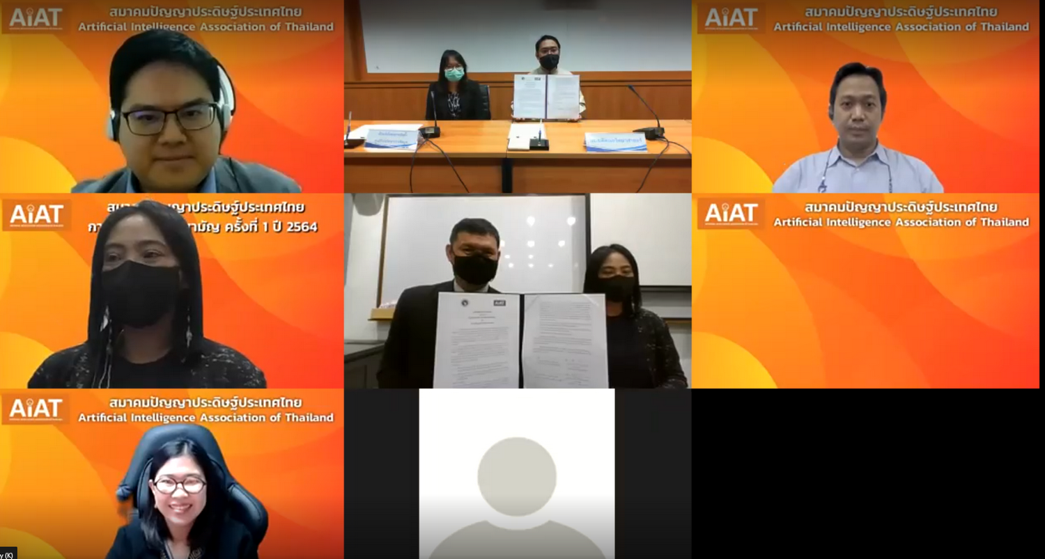วันที่ 3 กุมภาพันธ์ 2565 ศาสตราจารย์ ดร.ธรณินทร์ ไชยเรืองศรี คณบดีคณะวิทยาศาสตร์ มหาวิทยาลัยเชียงใหม่ พร้อมด้วย ผศ.ดร.พิมผกา ธานินพงศ์ หัวหน้าโครงการจัดตั้งศูนย์วิจัยวิทยาการข้อมูล คณะวิทยาศาสตร์ ร่วมลงนามบันทึกข้อตกลงความร่วมมือ ระหว่างคณะวิทยาศาสตร์ มช. กับสมาคมปัญญาประดิษฐ์ประเทศไทย นำโดย ศ.ดร.ธนารักษ์ ธีระมั่นคง นายกสมาคม ผ่านระบบออนไลน์ เพื่อร่วมกันพัฒนาองค์ความรู้ และกำลังคนทางด้านปัญญาประดิษฐ์ของประเทศไทยให้ก้าวทันเทคโนโลยีที่พัฒนาอย่างรวดเร็วในปัจจุบัน