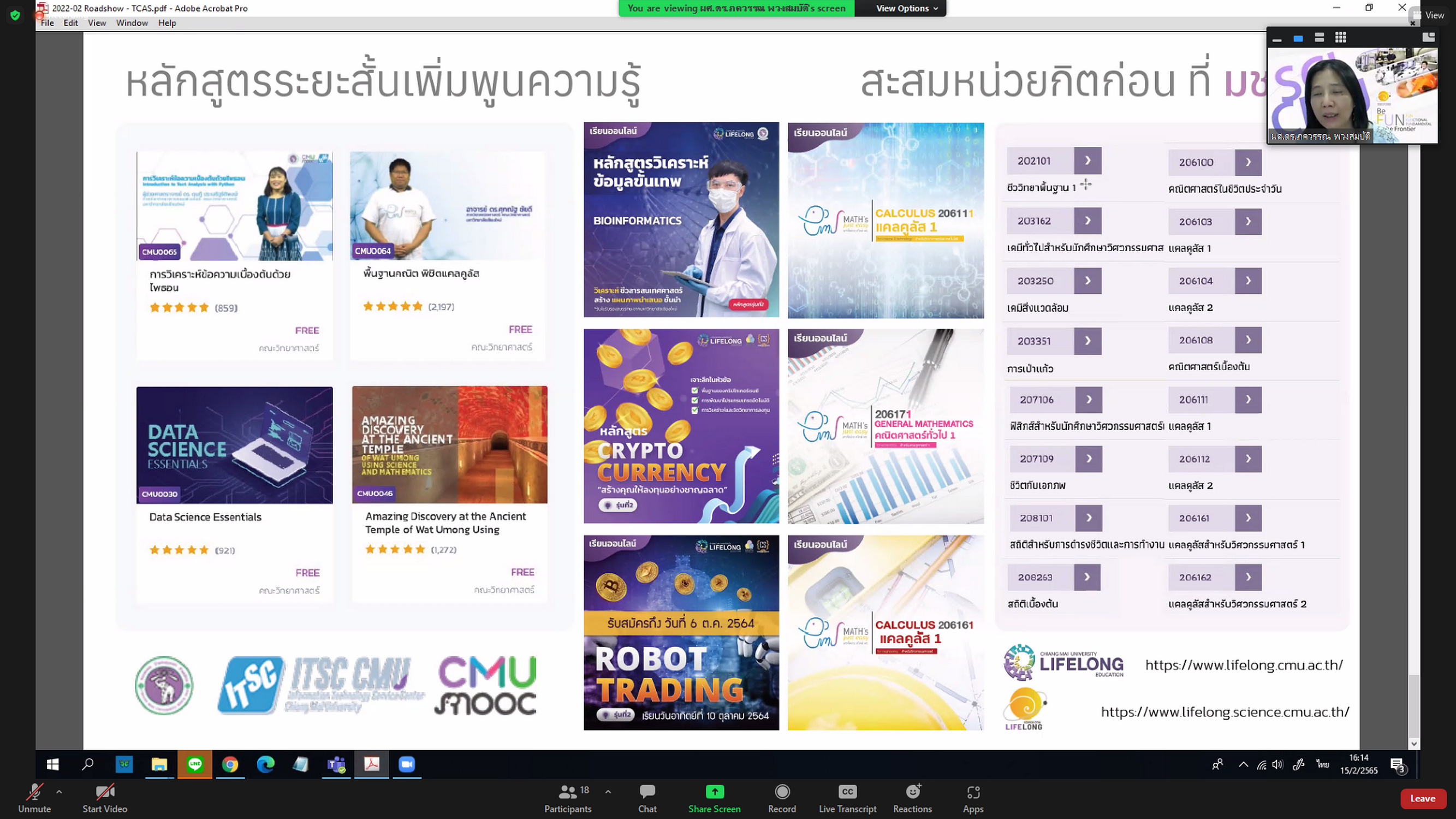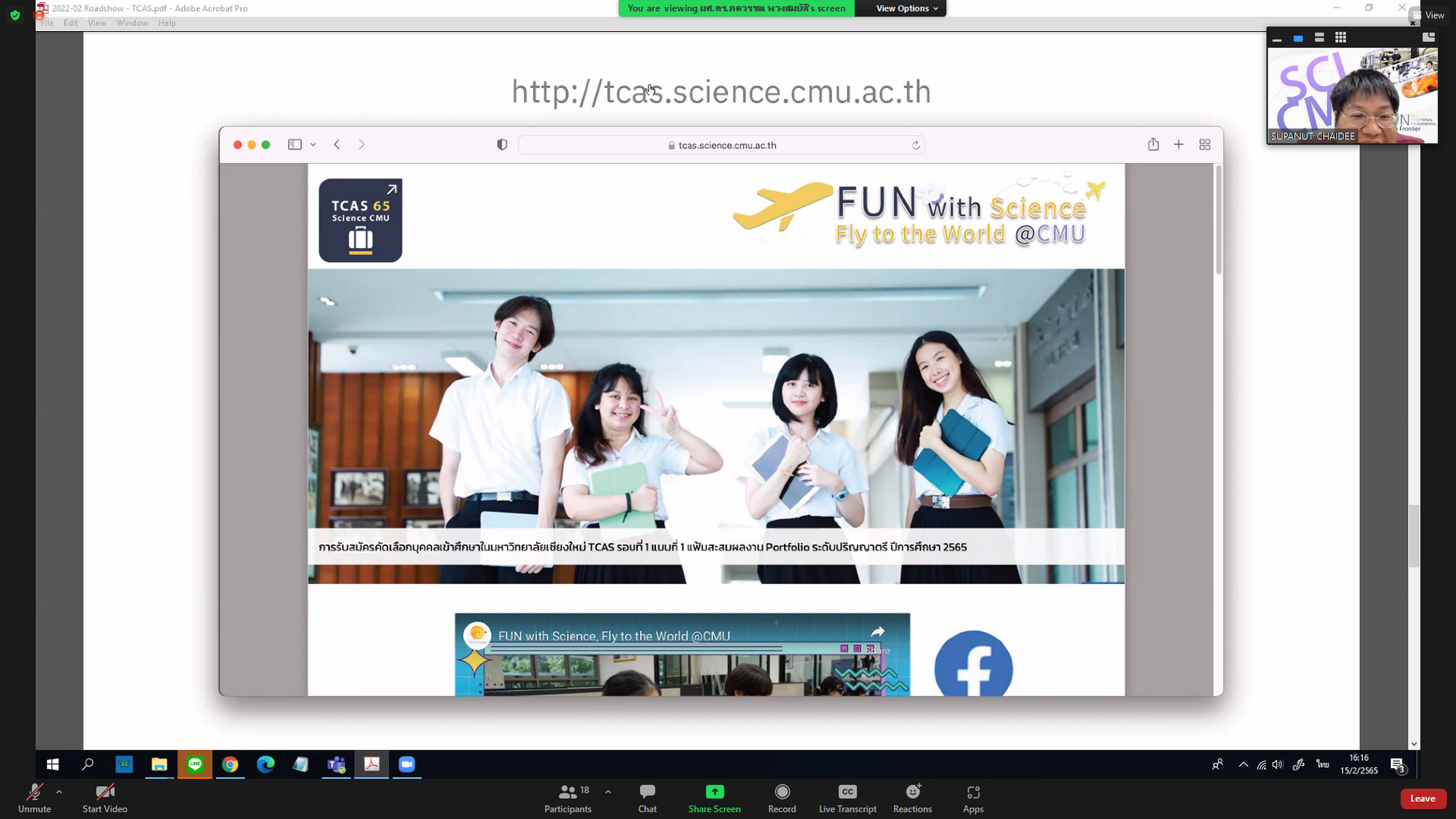 คณะวิทยาศาสตร์จัดกิจกรรม Online Roadshow รอบพิเศษ สำหรับนักเรียนที่สนใจเข้าศึกษาต่อระดับปริญญาตรี คณะวิทยาศาสตร์ เพื่อให้นักเรียนได้รับทราบข้อมูลเกี่ยวกับหลักสูตร กระบวนการรับเข้าศึกษา อาชีพในอนาคต ตลอดจนบรรยากาศการเรียนการสอนในคณะวิทยาศาสตร์ รวมทั้งตอบข้อซักถาม ข้อสงสัยต่างๆ โดยผู้บริหาร และอาจารย์คณะวิทยาศาสตร์จากหลายสาขา เมื่อวันที่ 15 กุมภาพันธ์ 2565 ผ่าน Zoom Meeting