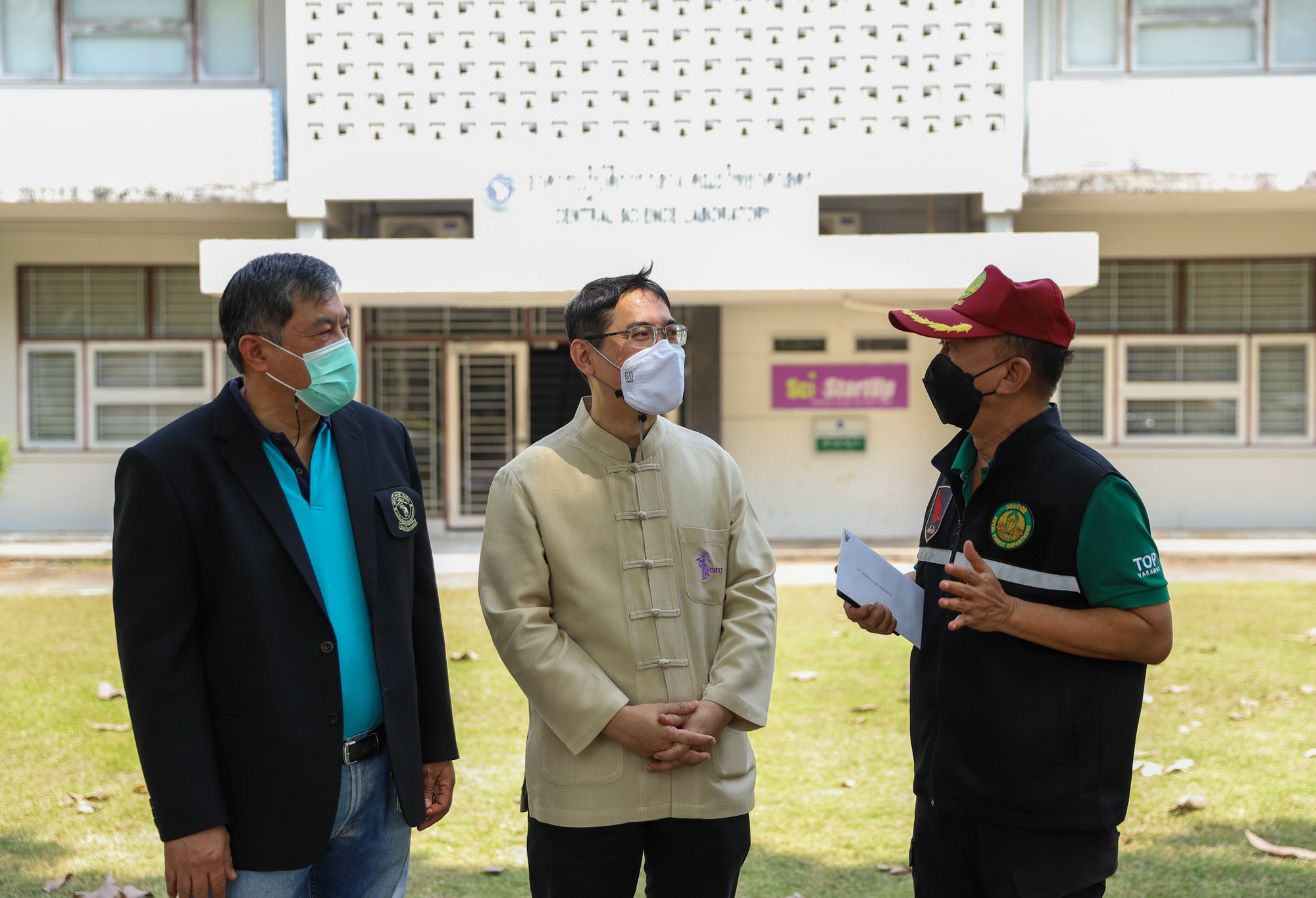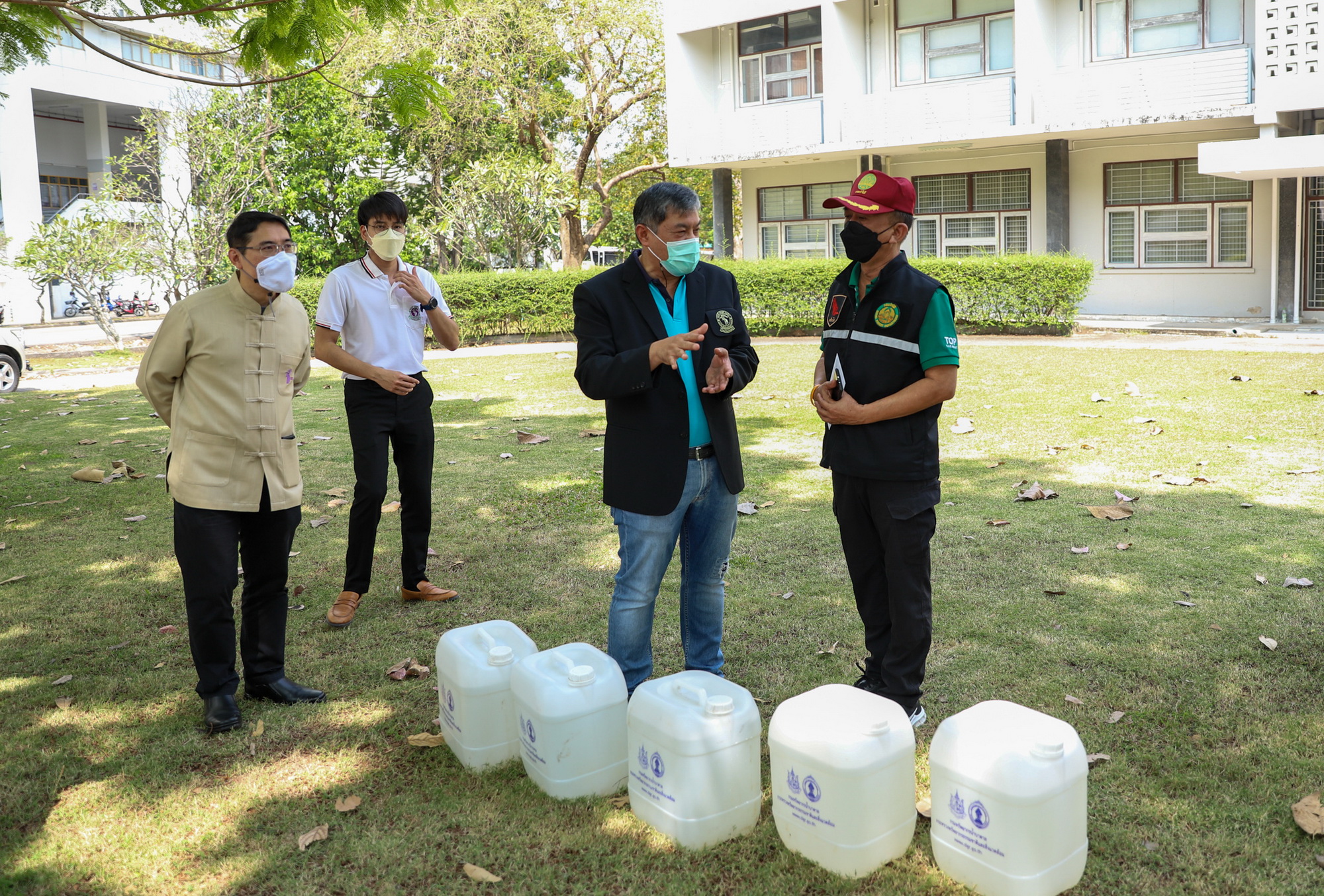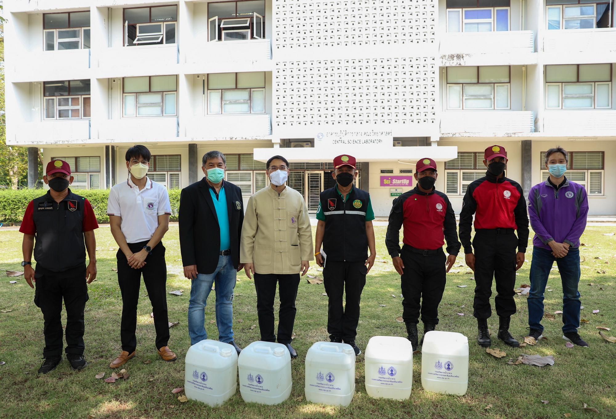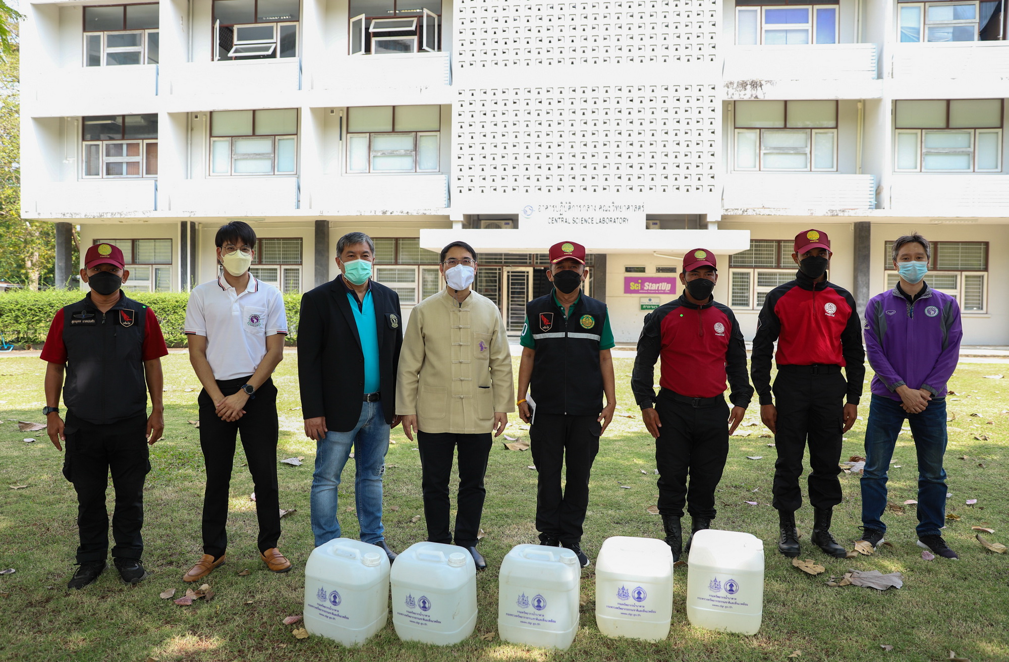 เมื่อวันที่ 24 กุมภาพันธ์ 2565 ศาสตราจารย์ ดร.ธรณินทร์ ไชยเรืองศรี คณบดีคณะวิทยาศาสตร์ มหาวิทยาลัยเชียงใหม่ พร้อมด้วย อาจารย์ ดร.มาโนช นาคสาทา ผู้อำนวยการศูนย์บริการวิทยาศาสตร์และเทคโนโลยี คณะวิทยาศาสตร์ มหาวิทยาลัยเชียงใหม่ มอบสารหน่วงไฟสำหรับฉีดพ่นชุดของพนักงานดับไฟป่า จำนวน 100 ลิตร ให้กับคณะผู้แทนจากศูนย์บัญชาการควบคุมไฟป่า กรมป่าไม้ นำโดย นายอิศเรศ จิระรัตน์ ผู้อำนวยการศูนย์บัญชาการควบคุมไฟป่า เพื่อนำไปช่วยเหลือเจ้าหน้าที่ดับไฟป่าในการเตรียมความพร้อมของศูนย์บัญชาการควบคุมไฟป่าที่ได้สนธิกำลังชุดปฏิบัติการพิเศษเหยี่ยวไฟ จำนวน 150 นาย เพื่อทำการควบคุมไฟป่าในพื้นที่ 17 จังหวัดภาคเหนือ
