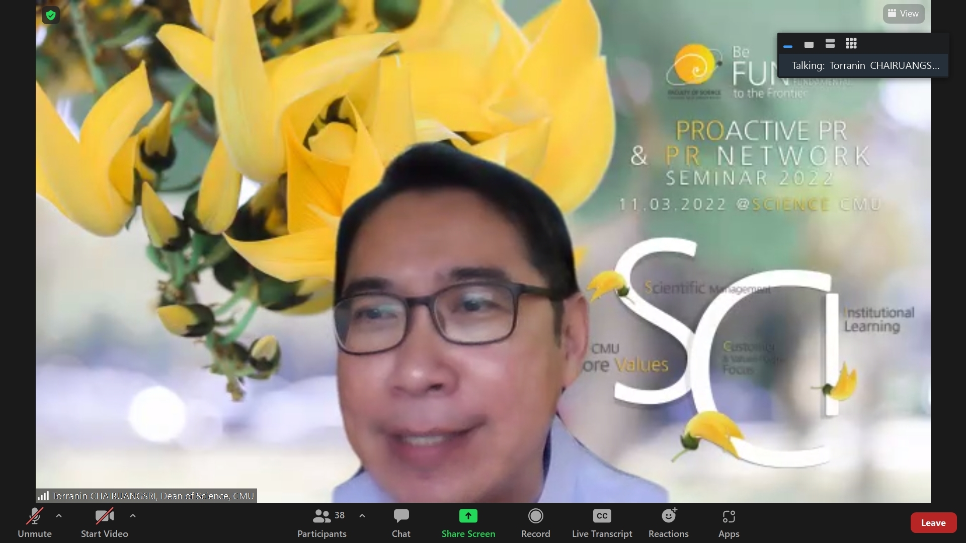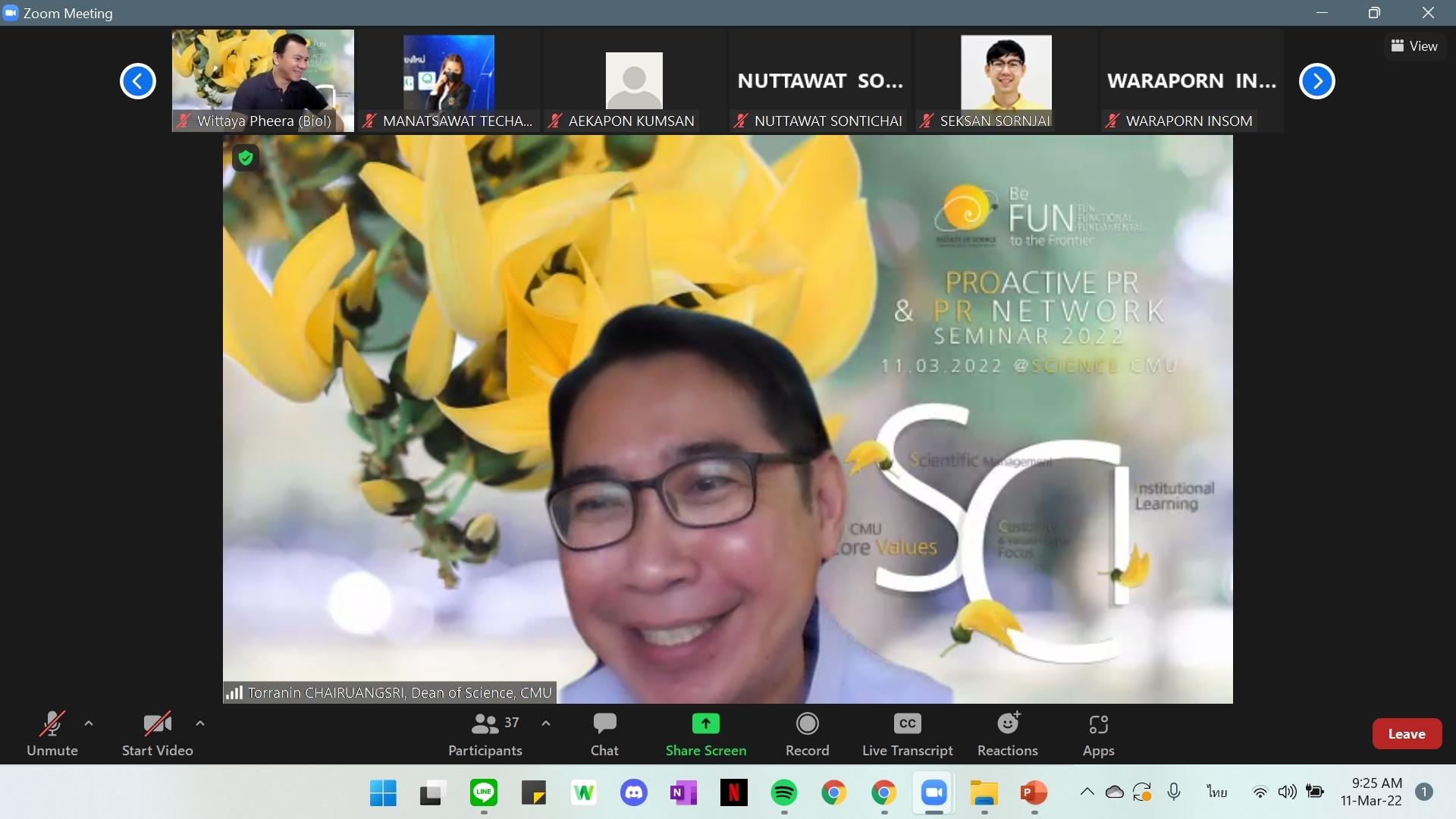 เมื่อวันที่ 11 มีนาคม 2565 ฝ่ายสื่อสารองค์กรคณะวิทยาศาสตร์ จัดการสัมมนาร่วมกันระหว่างคณะกรรมการประชาสัมพันธ์เชิงรุก และเครือข่ายประชาสัมพันธ์ คณะวิทยาศาสตร์ ภายใต้หัวข้อ "PROACTIVE PR & PR NETWORK คณะวิทยาศาสตร์ มหาวิทยาลัยเชียงใหม่" ผ่านระบบออนไลน์ โดยได้รับเกียรติจาก ศาสตราจารย์ ดร.ธรณินทร์ ไชยเรืองศรี คณบดีคณะวิทยาศาสตร์ เป็นประธานเปิดการสัมมนา อาจารย์ ดร.ศุภณัฐ ชัยดี ผู้ช่วยคณบดีฝ่ายสื่อสารองค์กร กล่าวต้อนรับ และบรรยาย หัวข้อ : ทิศทางการดำเนินงานด้านการสื่อสารองค์กรของคณะวิทยาศาสตร์ และรองศาสตราจารย์ ดร.ปรารถนา ใจผ่อง ผู้อำนวยการวิทยาลัยการศึกษาตลอดชีวิต มหาวิทยาลัยเชียงใหม่ วิทยากรพิเศษ บรรยาย หัวข้อการวิเคราะห์ข้อมูลบนสื่อออนไลน์ เพื่อวางแผนการสื่อสารองค์กร ซึ่งกิจกรรมในครั้งนี้จัดขึ้นเพื่อให้บุคลากรและผู้แทนทุกภาคส่วนที่ปฏิบัติงานเกี่ยวข้องกับงานด้านการประชาสัมพันธ์ ได้รับฟังแนวทางการสื่อสารองค์กรของคณะฯ ตลอดจนได้แลกเปลี่ยนข้อคิดเห็น และข้อเสนอแนะต่าง ๆ เพื่อเสริมสร้างความเข้มแข็งของงานด้านสื่อสารองค์กรของคณะวิทยาศาสตร์