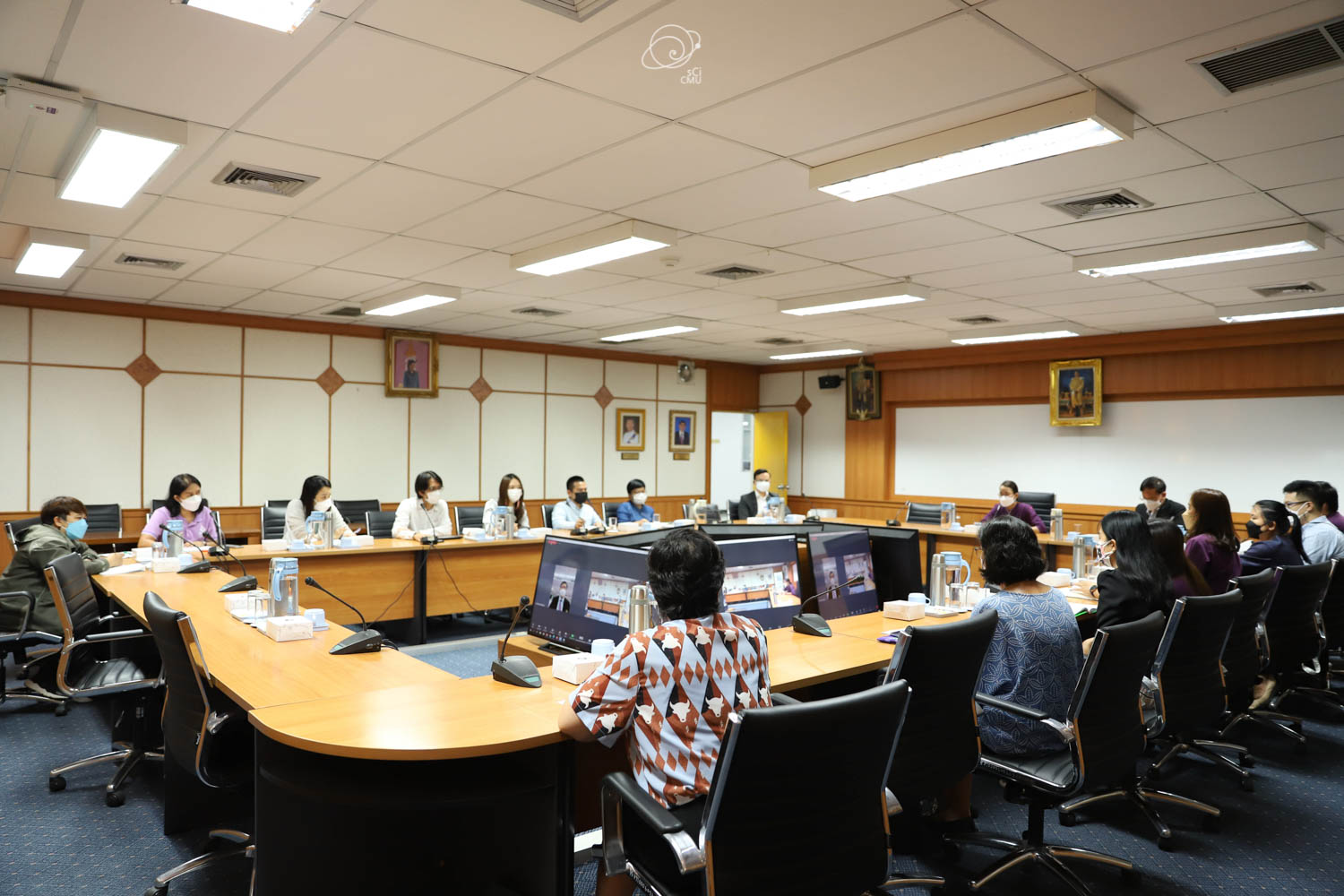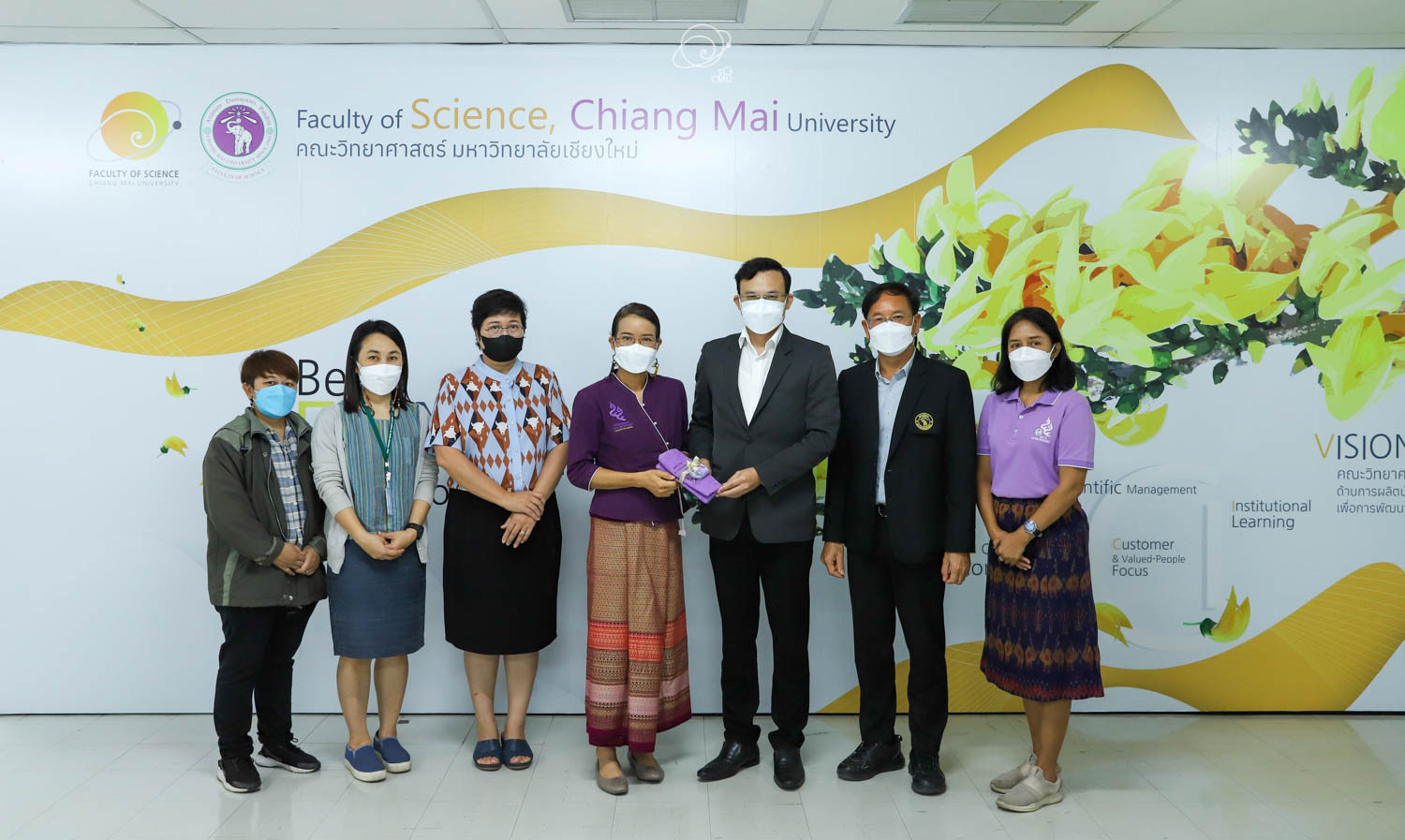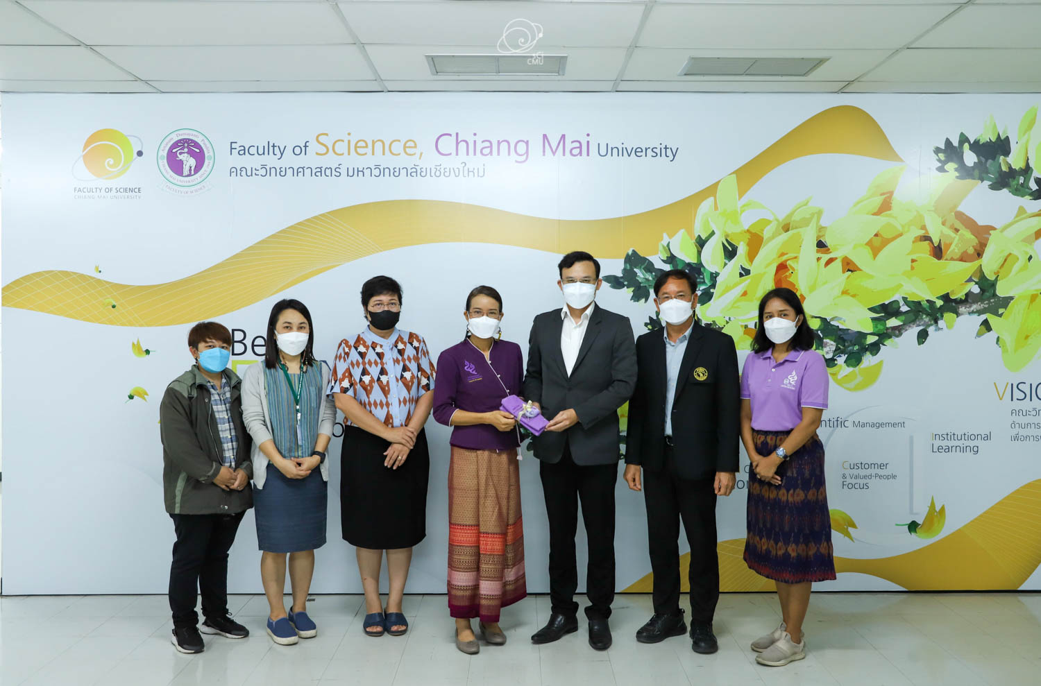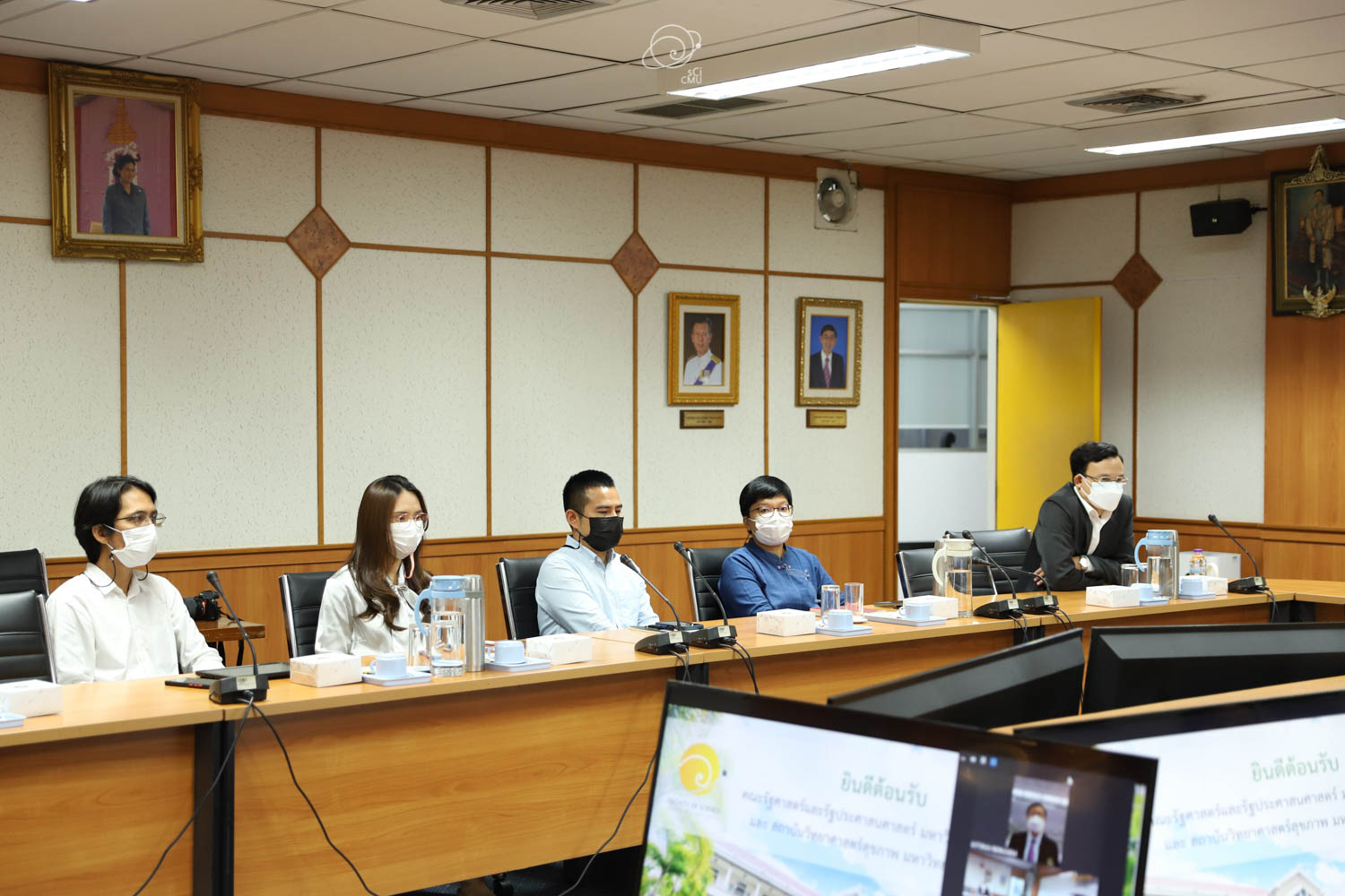 รศ.ดร.หทัยชนก เนียมทรัพย์ รองคณบดีฝ่ายบริหาร คณะวิทยาศาสตร์ พร้อมด้วยผู้บริหาร และบุคลากร ร่วมให้การต้อนรับผู้บริหาร และคณะศึกษาดูงานจากคณะรัฐศาสตร์และรัฐประศาสนศาสตร์ และสถาบันวิจัยวิทยาศาสตร์สุขภาพ มหาวิทยาลัยเชียงใหม่ ซึ่งนำโดย ผศ.ดร.อลงกรณ์ คูตระกูล รองคณบดีฝ่ายบริหาร คณะรัฐศาสตร์และรัฐประศาสนศาสตร์ ในโอกาสเข้าศึกษาดูงานเกี่ยวกับระบบสารสนเทศการติดตามการขอตำแหน่งทางวิชาการซึ่งพัฒนาโดยคณะวิทยาศาสตร์ ในวันที่ 20 พฤษภาคม 2565 ณ ห้องประชุม 2 ชั้น 2 อาคาร 40 ปี คณะวิทยาศาสตร์