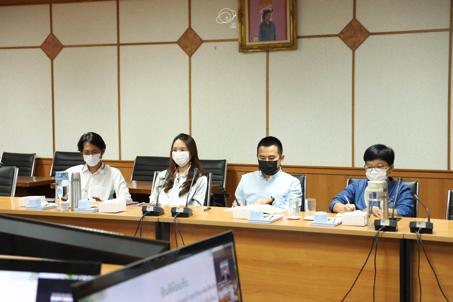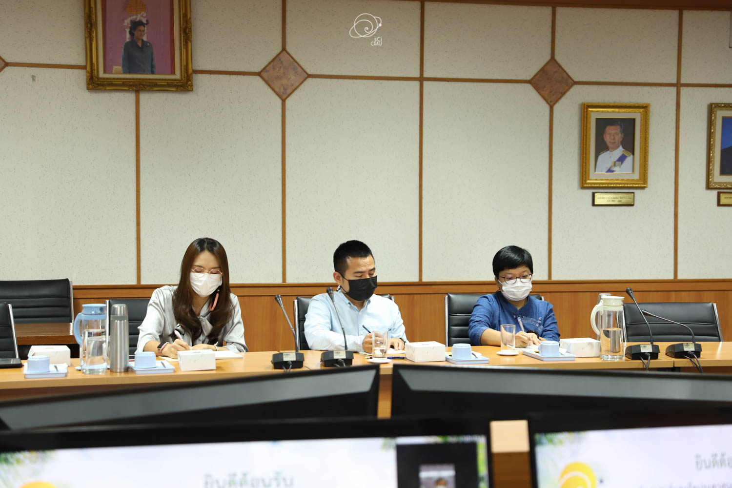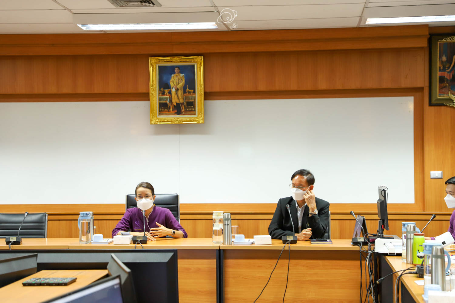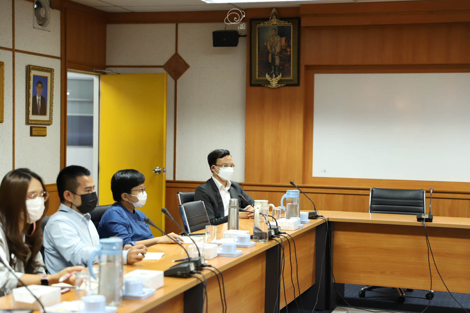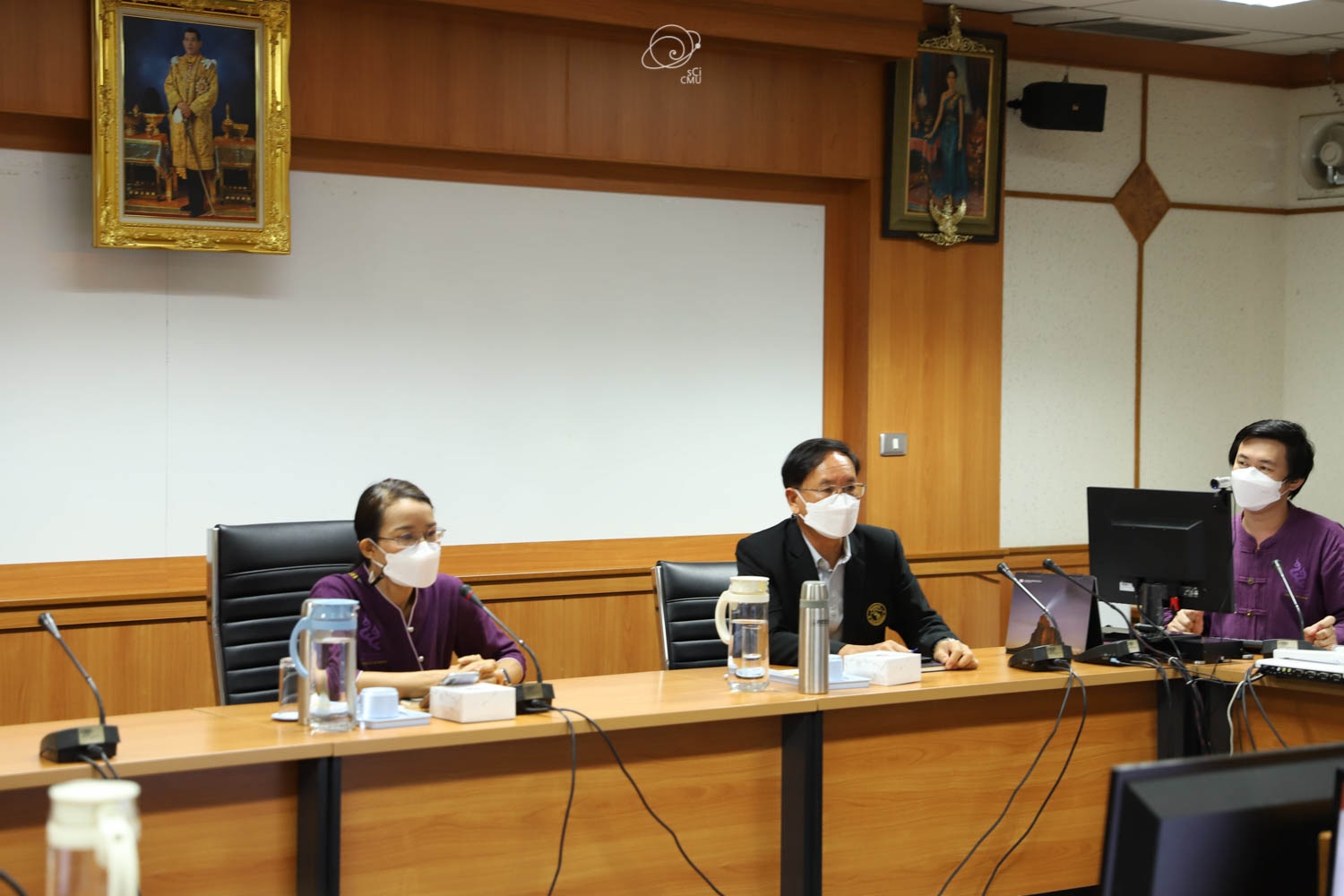 รศ.ดร.หทัยชนก เนียมทรัพย์ รองคณบดีฝ่ายบริหาร คณะวิทยาศาสตร์ พร้อมด้วยผู้บริหาร และบุคลากร ร่วมให้การต้อนรับผู้บริหาร และคณะศึกษาดูงานจากคณะรัฐศาสตร์และรัฐประศาสนศาสตร์ และสถาบันวิจัยวิทยาศาสตร์สุขภาพ มหาวิทยาลัยเชียงใหม่ ซึ่งนำโดย ผศ.ดร.อลงกรณ์ คูตระกูล รองคณบดีฝ่ายบริหาร คณะรัฐศาสตร์และรัฐประศาสนศาสตร์ ในโอกาสเข้าศึกษาดูงานเกี่ยวกับระบบสารสนเทศการติดตามการขอตำแหน่งทางวิชาการซึ่งพัฒนาโดยคณะวิทยาศาสตร์ ในวันที่ 20 พฤษภาคม 2565 ณ ห้องประชุม 2 ชั้น 2 อาคาร 40 ปี คณะวิทยาศาสตร์