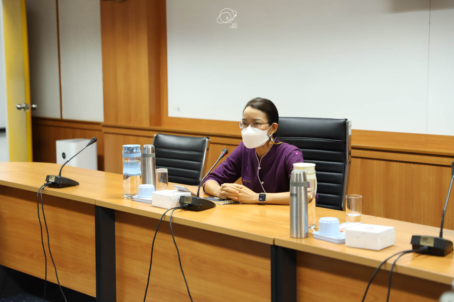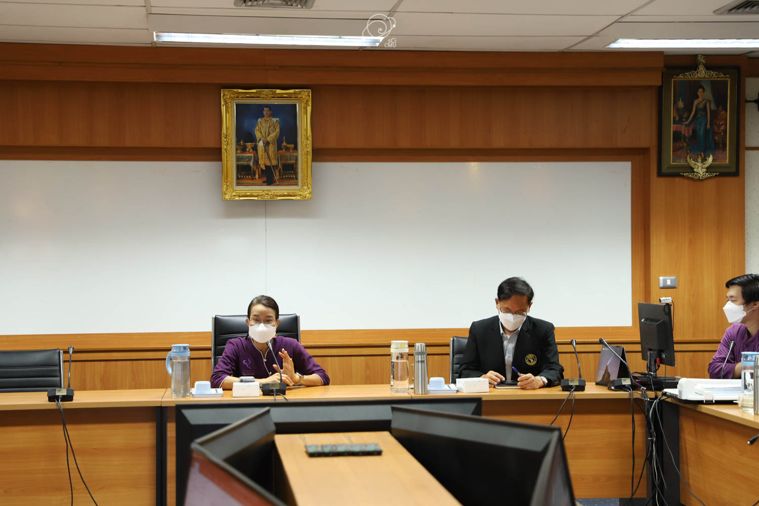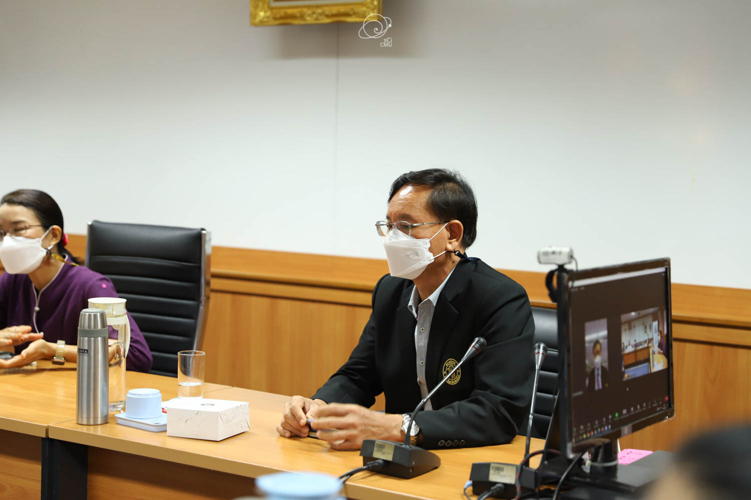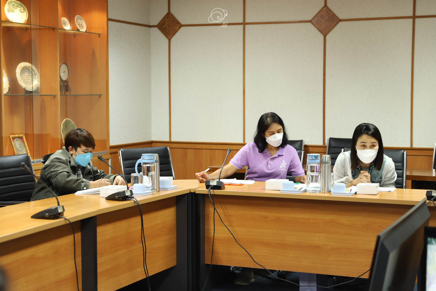 รศ.ดร.หทัยชนก เนียมทรัพย์ รองคณบดีฝ่ายบริหาร คณะวิทยาศาสตร์ พร้อมด้วยผู้บริหาร และบุคลากร ร่วมให้การต้อนรับผู้บริหาร และคณะศึกษาดูงานจากคณะรัฐศาสตร์และรัฐประศาสนศาสตร์ และสถาบันวิจัยวิทยาศาสตร์สุขภาพ มหาวิทยาลัยเชียงใหม่ ซึ่งนำโดย ผศ.ดร.อลงกรณ์ คูตระกูล รองคณบดีฝ่ายบริหาร คณะรัฐศาสตร์และรัฐประศาสนศาสตร์ ในโอกาสเข้าศึกษาดูงานเกี่ยวกับระบบสารสนเทศการติดตามการขอตำแหน่งทางวิชาการซึ่งพัฒนาโดยคณะวิทยาศาสตร์ ในวันที่ 20 พฤษภาคม 2565 ณ ห้องประชุม 2 ชั้น 2 อาคาร 40 ปี คณะวิทยาศาสตร์
