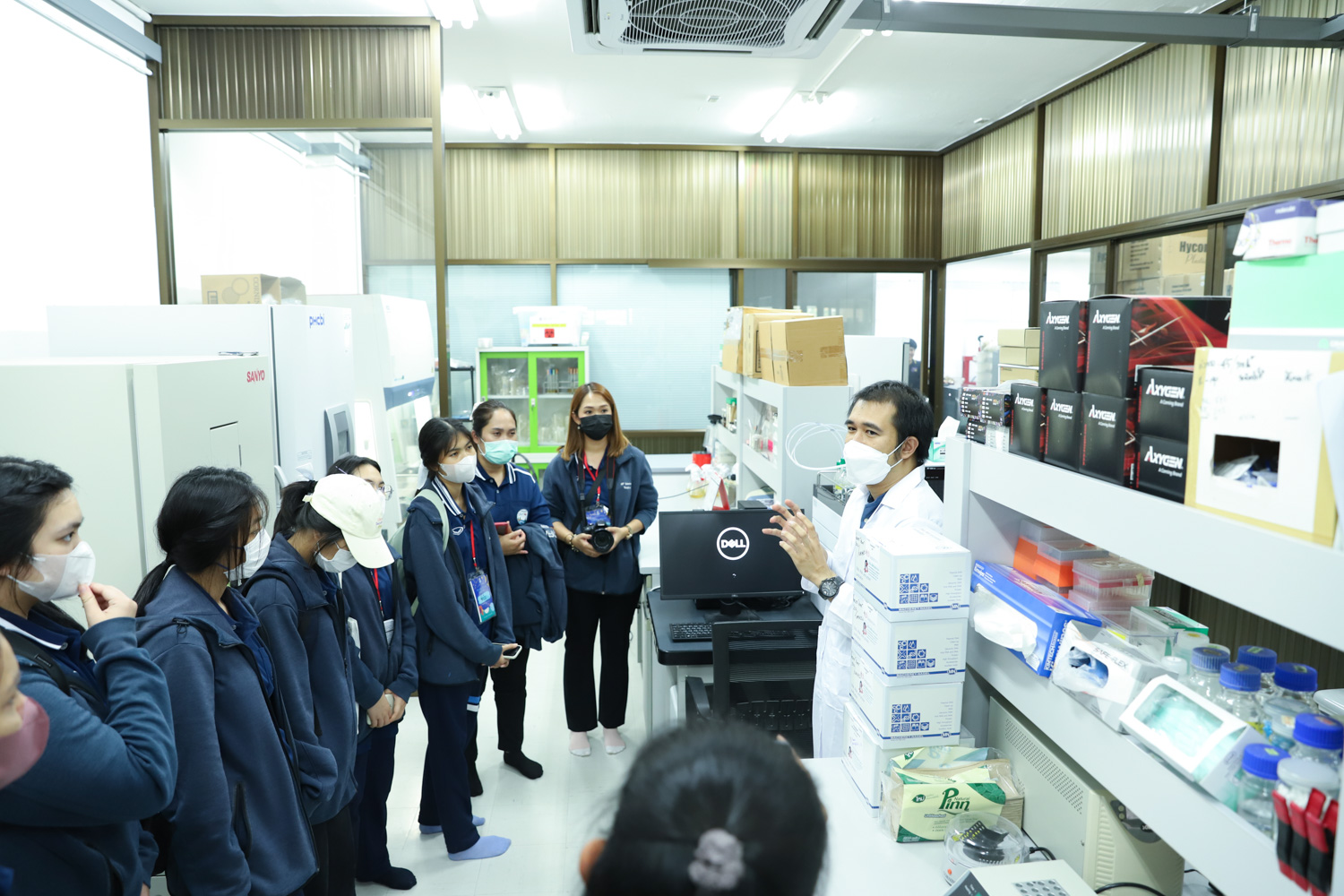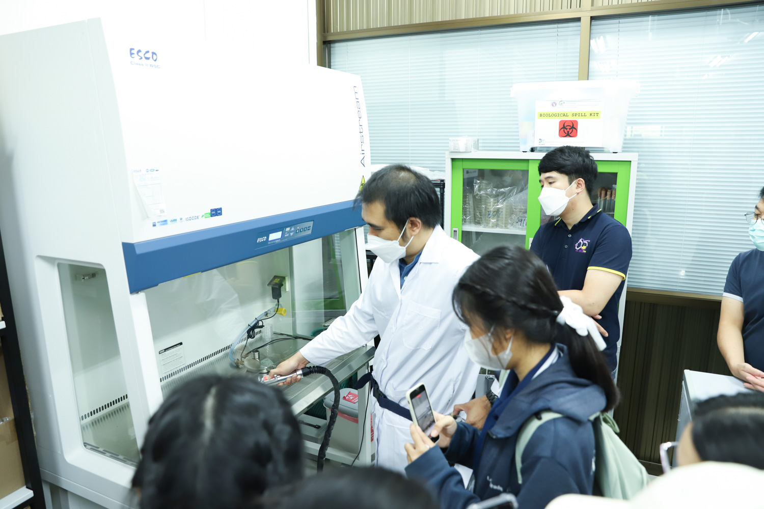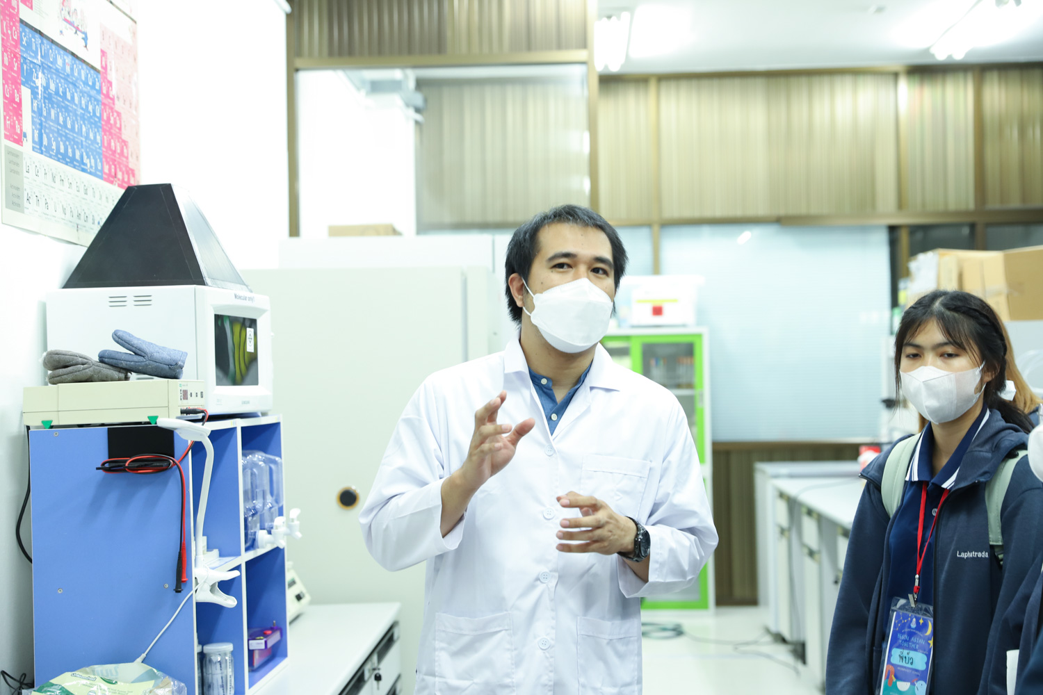 วันที่ 12 กรกฎาคม 2565 ผู้ช่วยศาสตราจารย์ ดร.ศุภณัฐ ชัยดี ผู้ช่วยคณบดีฝ่ายสื่อสารองค์กร คณะวิทยาศาสตร์ กล่าวต้อนรับ พร้อมกับบรรยายแนะนำหลักสูตร และภาพรวมการเรียนการสอนของคณะวิทยาศาสตร์ ให้แก่นักเรียนระดับมัธยมศึกษาตอนปลาย จากโรงเรียนอรุณประดิษฐ จังหวัดเพชรบุรี ที่มาเยี่ยมชม และศึกษาดูงานด้านการเรียนการสอนของคณะฯ ณ ห้องสัมมนา ชั้น 2 อาคาร 40 ปี คณะวิทยาศาสตร์ เพื่อให้นักเรียนมีข้อมูลประกอบการตัดสินใจศึกษาต่อระดับอุมดมศึกษา ทั้งนี้ คณะฯ ได้เปิดโอกาสให้นักเรียนเข้าเยี่ยมชมห้องปฏิบัติการ ภาควิชาชีววิทยา เพื่อให้นักเรียนได้รับประสบการณ์การเรียนการสอนในห้องเรียนจริง