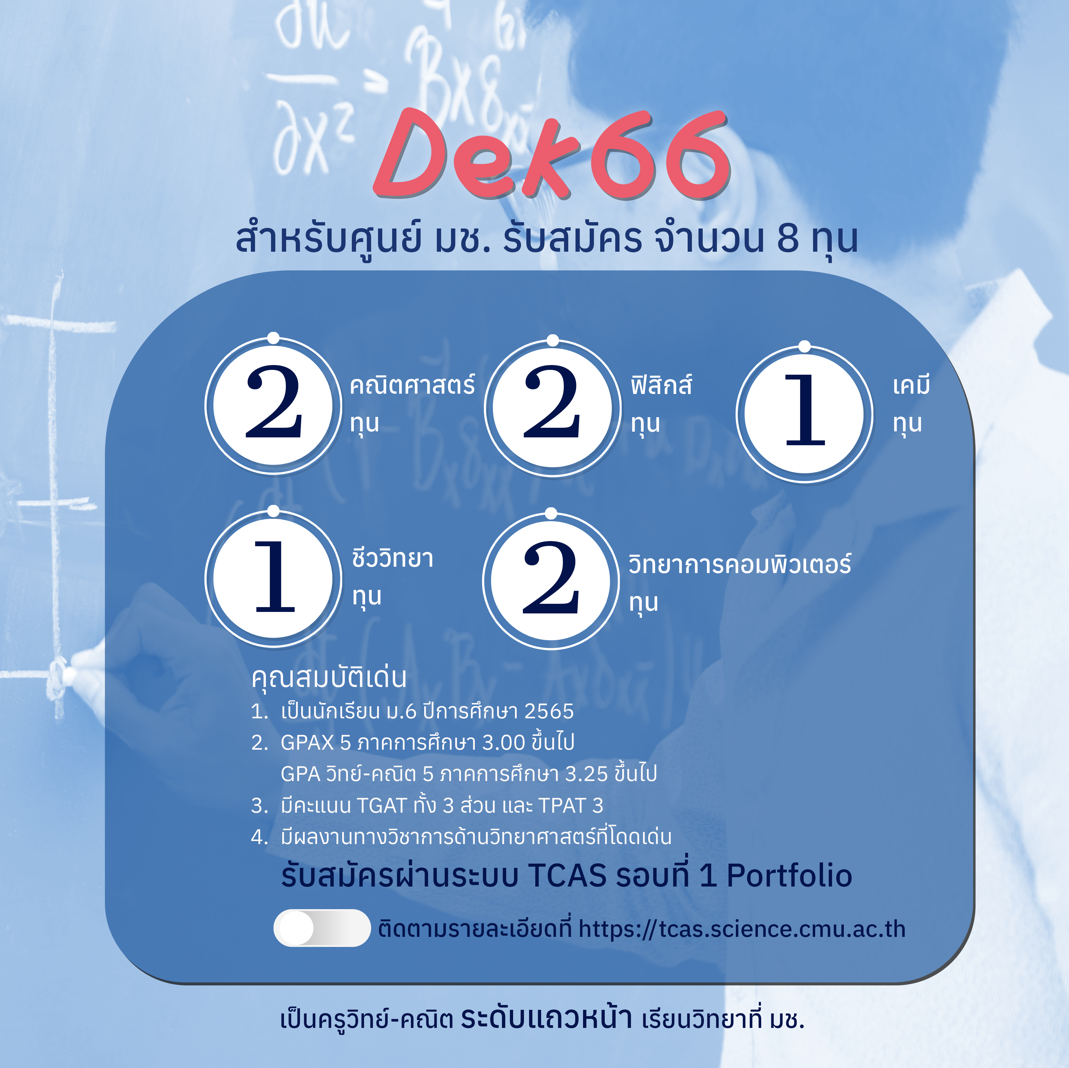 ติดตามรายละเอียดที่ https://tcas.science.cmu.ac.th
