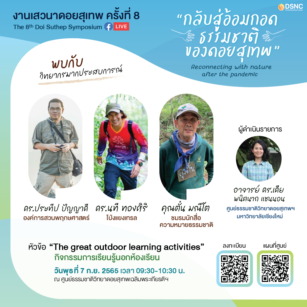 ชวนมาล้อมวงคุยเฟื่องเรื่อง "ธรรมชาติ" พบกับ วิทยากรสายธรรมชาติ มากประสบการณ์ ในงานเสวนาดอยสุเทพ ครั้งที่ 8 (The 8th Doi Suthep Symposium) "กลับสู่อ้อมกอดธรรมชาติของดอยสุเทพ Reconnecting with nature after the pandemic"