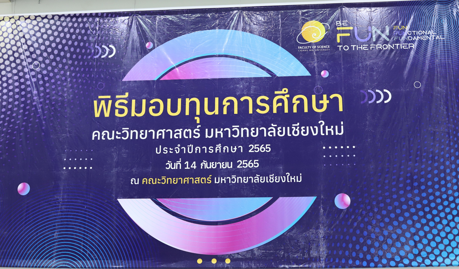 คณะวิทยาศาสตร์ มหาวิทยาลัยเชียงใหม่ มอบทุนการศึกษาแก่นักศึกษา ประจำปีการศึกษา 2565 รวมกว่า 280 ทุน เป็นเงินกว่า 4,045,255 บาท เมื่อวันที่ 14 กันยายน 2565 ณ ห้องบรรยาย SCB2100 อาคาร 40 ปี คณะวิทยาศาสตร์