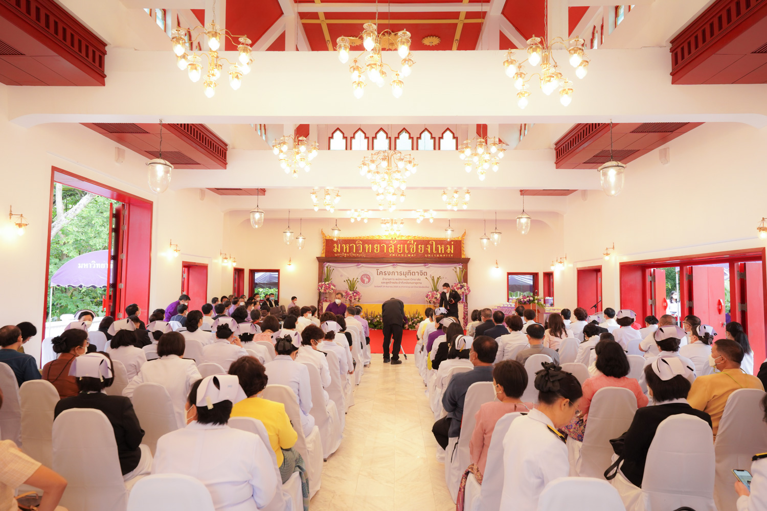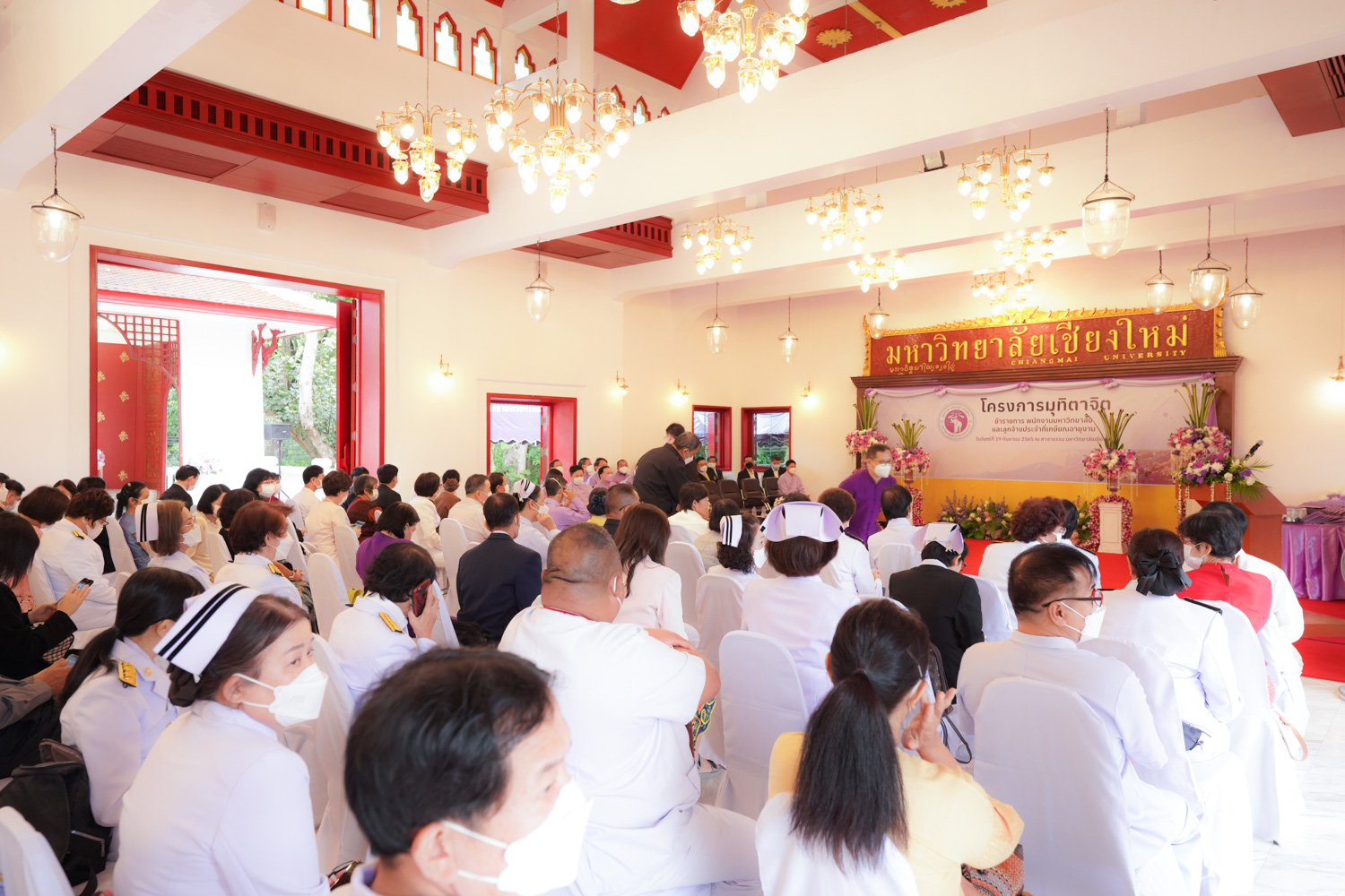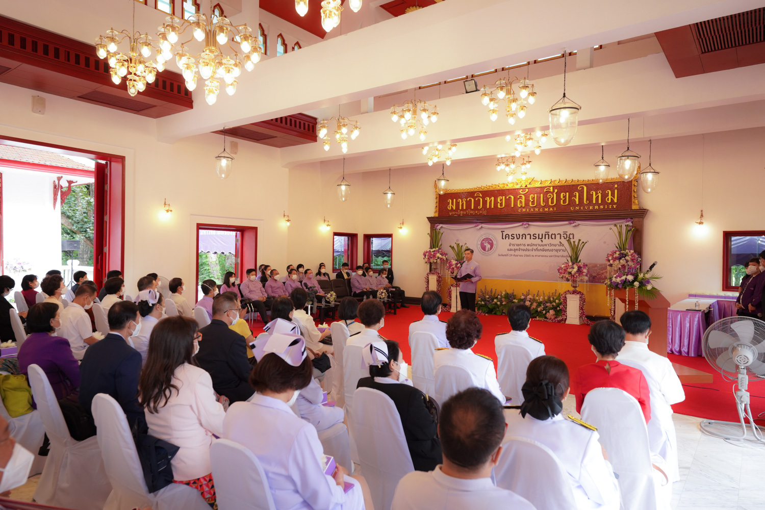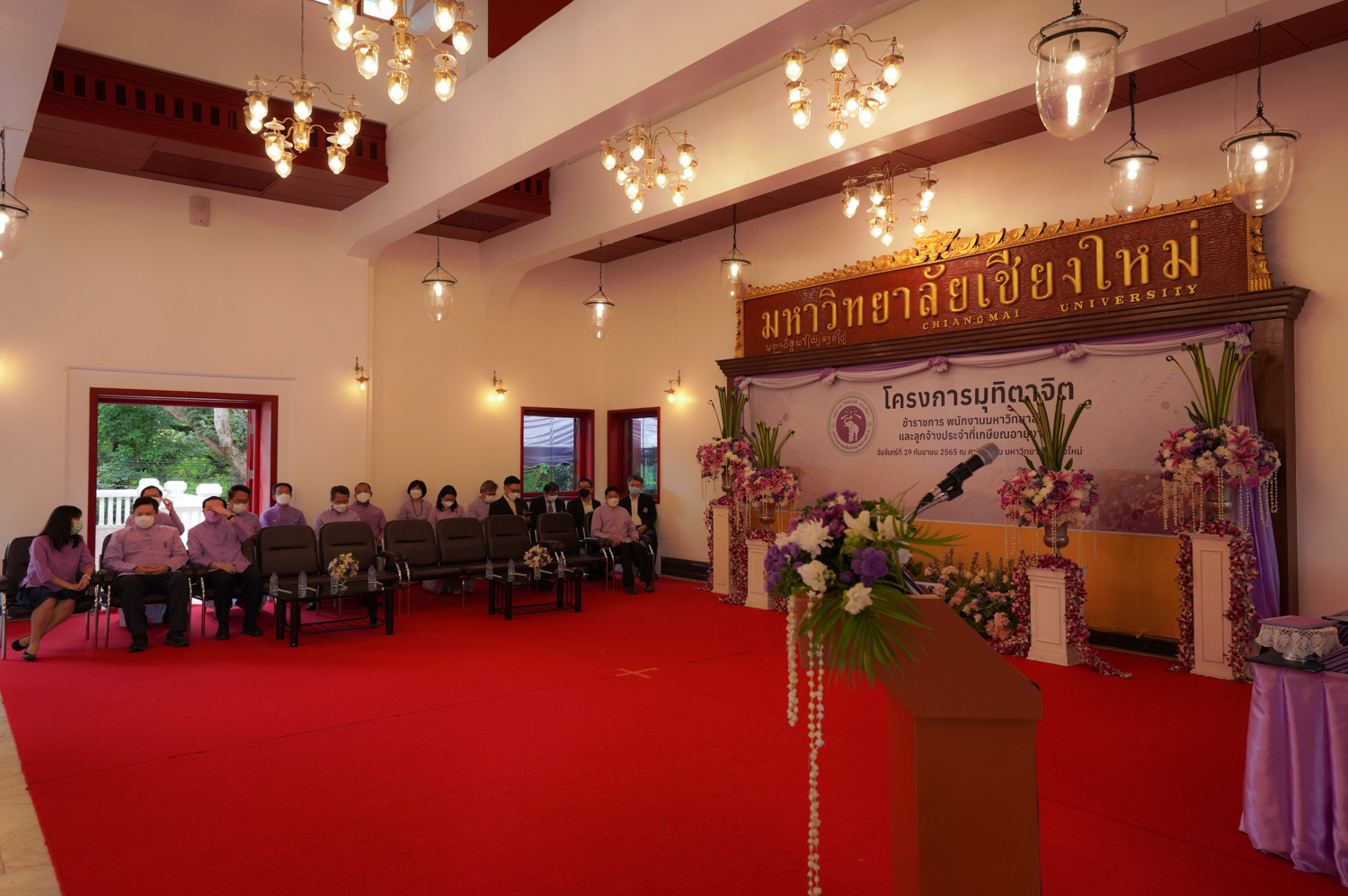 รองศาสตราจารย์ ดร. หทัยชนก เนียมทรัพย์ รองคณบดีฝ่ายบริหาร พร้อมด้วยนายพร พรมมหาราช เลขานุการคณะวิทยาศาสตร์ ร่วมพิธีแสดงมุทิตาจิตแด่ข้าราชการ พนักงานมหาวิทยาลัย และลูกจ้างประจำของมหาวิทยาลัยเชียงใหม่ที่เกษียณอายุงาน ประจำปี 2565 ซึ่งจัดโดยมหาวิทยาลัยเชียงใหม่ เมื่อวันที่ 19 กันยายน พ.ศ. 2565 ณ ศาลาธรรม มหาวิทยาลัยเชียงใหม่ โดยมี ศาสตราจารย์ ดร.นพ.พงษ์รักษ์ ศรีบัณฑิตมงคล อธิการบดีมหาวิทยาลัยเชียงใหม่ เป็นประธานในพิธีฯ ซึ่งจัดขึ้นเพื่อเชิดชูเกียรติและระลึกถึงคุณงามความดีของผู้เกษียณอายุงานที่ได้อุทิศตนปฏิบัติหน้าที่ด้วยแรงกายแรงใจ มีความมานะ อุตสาหะ พากเพียรพยายาม และมุ่งมั่นสรรค์สร้างพัฒนามหาวิทยาลัยเชียงใหม่ จนครบวาระการทำงาน ในโอกาสนี้ คณาจารย์และบุคลากรของคณะวิทยาศาสตร์ที่เกษียณอายุงาน ประจำปี 2565 ได้เข้ารับการเชิดชูเกียรติในพิธีฯ ดังกล่าวด้วย