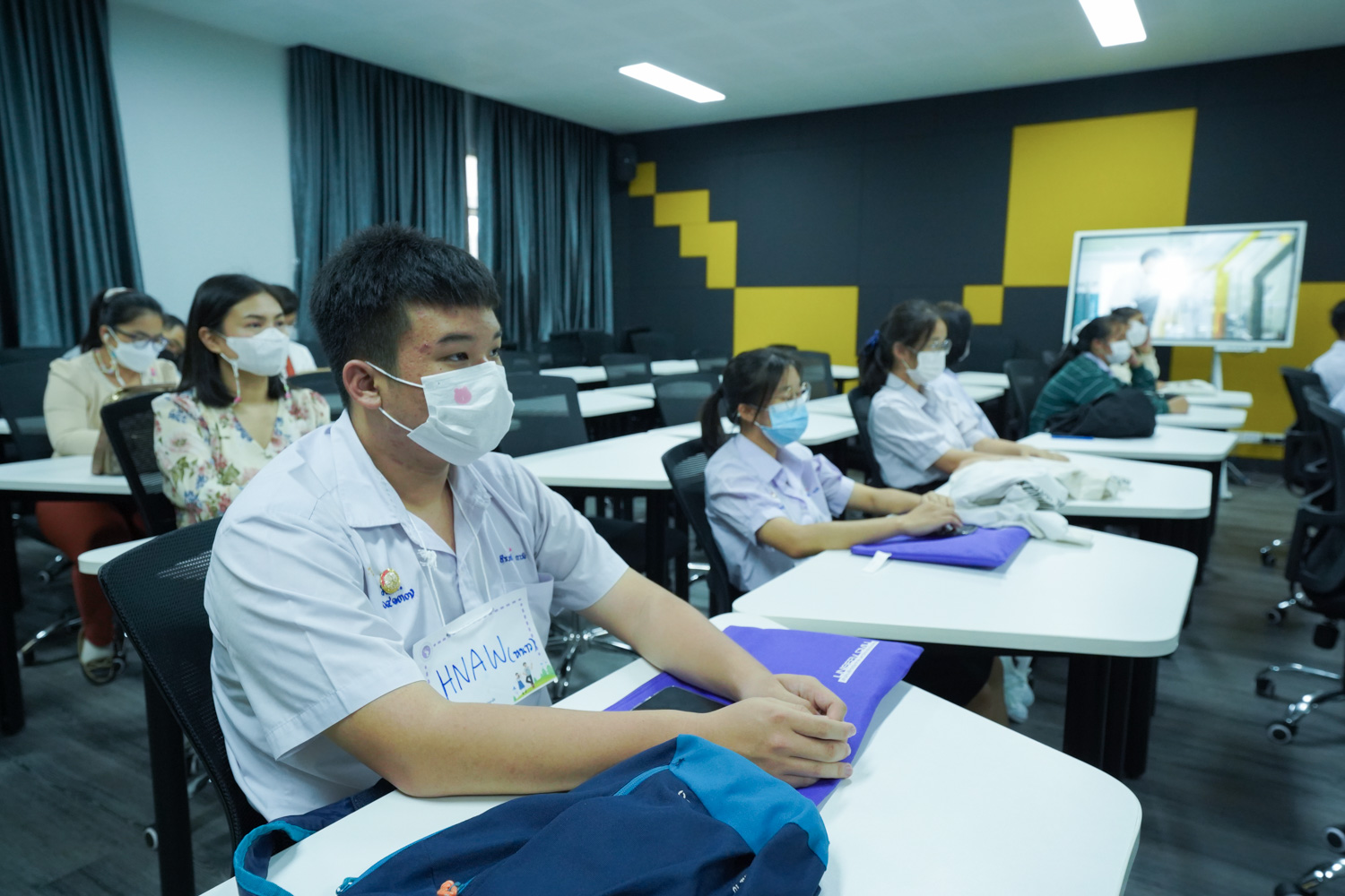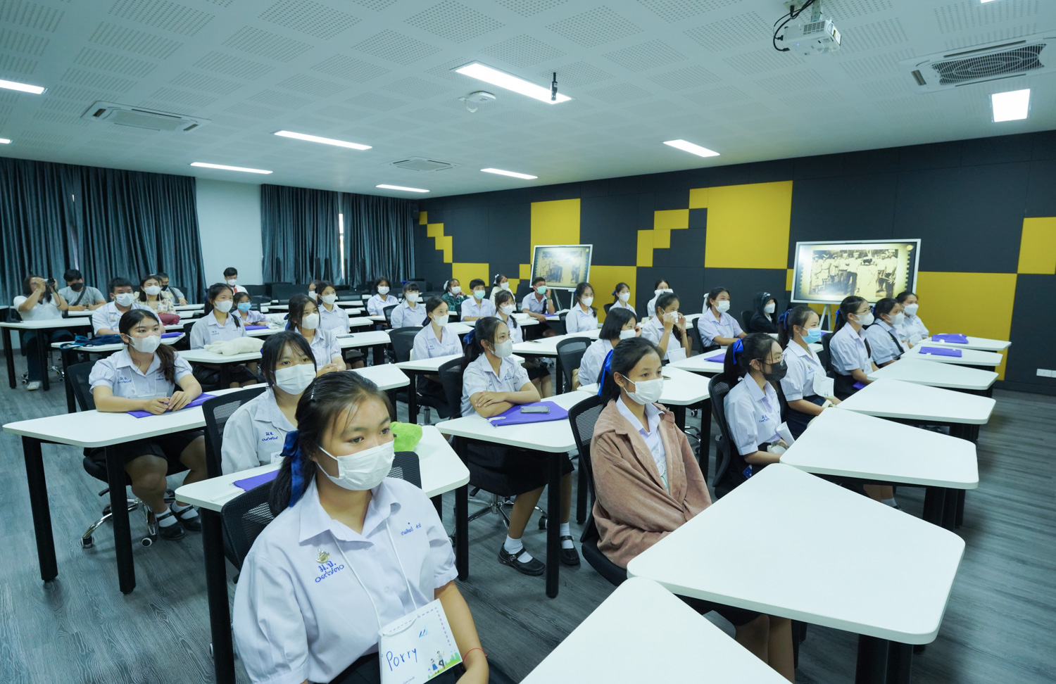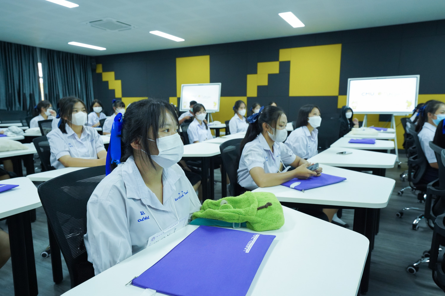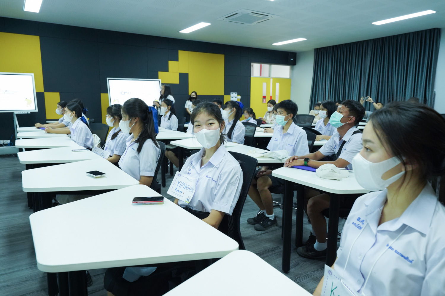 วันที่ 23 กันยายน 2565 ผู้ช่วยศาสตราจารย์ ดร.ศุภณัฐ ชัยดี ผู้ช่วยคณบดีฝ่ายสื่อสารองค์กร คณะวิทยาศาสตร์ กล่าวต้อนรับ พร้อมกับบรรยายแนะนำหลักสูตร และภาพรวมการเรียนการสอนของคณะวิทยาศาสตร์ ให้แก่นักเรียนจากโรงเรียนในเขตพื้นที่ห่างไกลของจังหวัดเชียงใหม่ ในโครงการเสริมความรู้พื้นฐานก่อนเข้ามหาวิทยาลัยตามแนวพระราชดำริของสมเด็จพระกนิษฐาธิราชเจ้า กรมสมเด็จพระเทพรัตนราชสุดาฯ สยามบรมราชกุมารี ซึ่งดำเนินการโดยสำนักบริการวิชาการ มหาวิทยาลัยเชียงใหม่ จำนวน 32 คน ที่มาเยี่ยมชม และศึกษาดูงานด้านการเรียนการสอนของคณะฯ ณ ห้อง Smart Classroom ชั้น 5 อาคาร 40 ปี คณะวิทยาศาสตร์ เพื่อให้นักเรียนมีข้อมูลประกอบการตัดสินใจศึกษาต่อในระดับอุดมศึกษาอย่างรอบด้าน