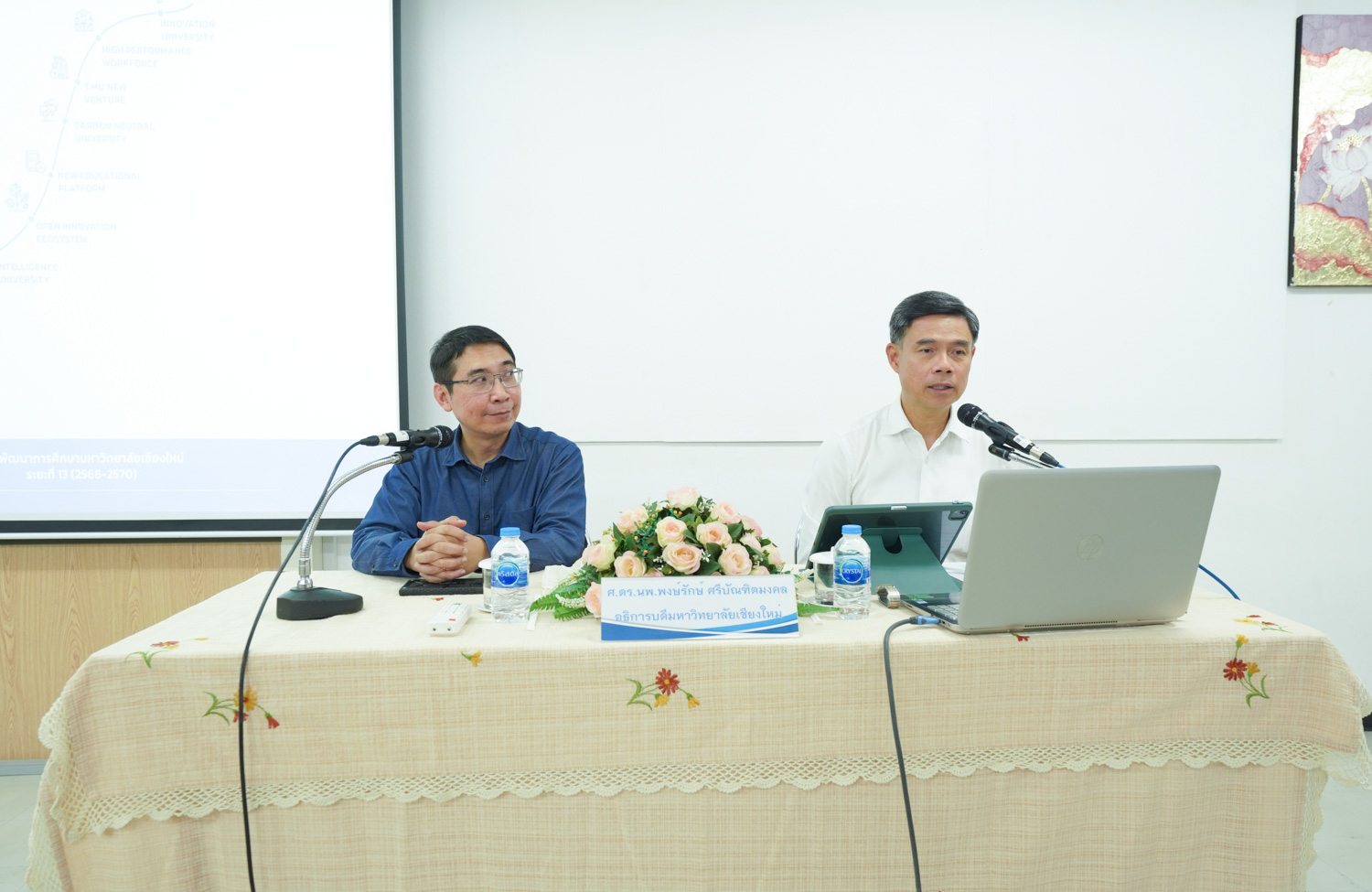 ศาสตราจารย์ ดร.ธรณินทร์ ไชยเรืองศรี คณบดีคณะวิทยาศาสตร์ พร้อมด้วยผู้บริหารคณะ ภาควิชา และศูนย์ ร่วมให้การต้อนรับคณะผู้บริหารมหาวิทยาลัยเชียงใหม่ นำโดย ศาสตราจารย์ ดร.นายแพทย์พงษ์รักษ์ ศรีบัณฑิตมงคล อธิการบดีมหาวิทยาลัยเชียงใหม่ ในโอกาสเข้าพบปะผู้บริหารคณะวิทยาศาสตร์ เพื่อมอบแนวนโยบายในการบริหารงาน และแลกเปลี่ยนข้อคิดเห็น พร้อมกับรับฟังข้อเสนอแนะต่างๆ ในวันที่ 6 ตุลาคม 2565 ณ ห้องสัมมนา ชั้น 2 อาคาร 40 ปี คณะวิทยาศาสตร์