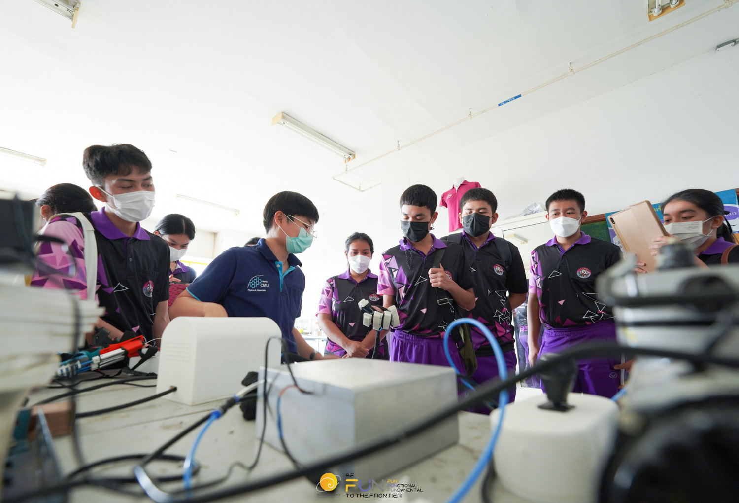 วันที่ 18 ตุลาคม 2565 ผู้ช่วยศาสตราจารย์ ดร.ศุภณัฐ ชัยดี ผู้ช่วยคณบดีฝ่ายสื่อสารองค์กร คณะวิทยาศาสตร์ กล่าวต้อนรับ พร้อมกับบรรยายแนะนำหลักสูตร และภาพรวมการเรียนการสอนของคณะวิทยาศาสตร์ ให้แก่นักเรียนจากโรงเรียนทุ่งสง จังหวัดนครศรีธรรมราช ที่มาเยี่ยมชม และศึกษาดูงานด้านการเรียนการสอนของคณะฯ เพื่อให้นักเรียนมีข้อมูลประกอบการตัดสินใจศึกษาต่อในระดับอุดมศึกษาอย่างรอบด้าน ณ ห้องสัมมนา ชั้น 2 อาคาร 40 ปี คณะวิทยาศาสตร์ พร้อมกับเปิดโอกาสให้นักเรียนเข้าชมห้องปฏิบัติการภาควิชาชีววิทยา และภาควิชาฟิสิกส์และวัสดุศาสตร์ เพื่อสัมผัสบรรยากาศการเรียนจริงที่วิทยา มช.