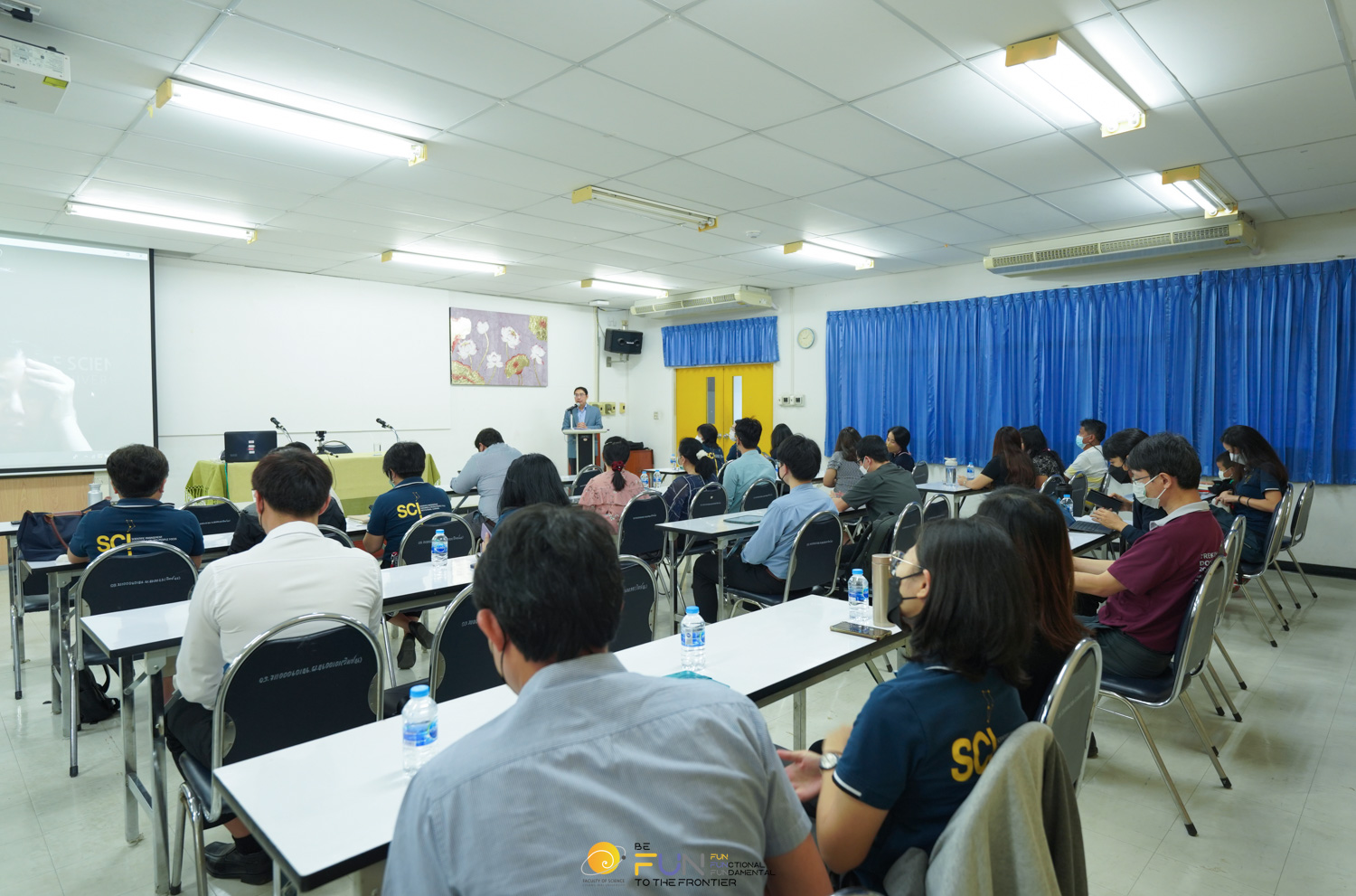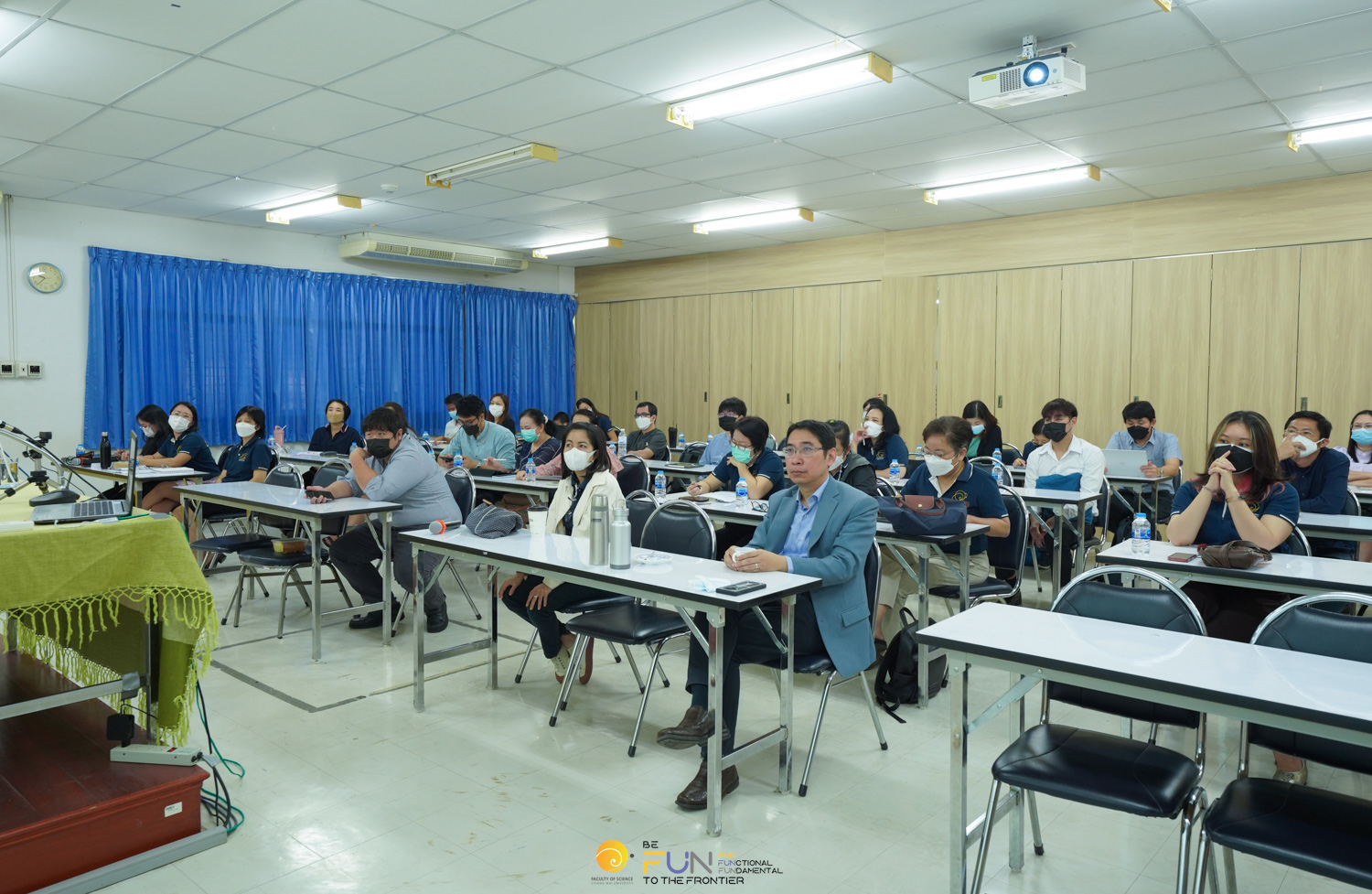 คณะวิทยาศาสตร์จัดโครงการพัฒนาการเรียนการสอน เรื่อง “การระดมความคิดเห็น : การพัฒนาหลักสูตรทางเลือกใหม่ คณะวิทยาศาสตร์” โดยได้รับเกียรติจาก ศาสตราจารย์ ดร.ธรณินทร์ ไชยเรืองศรี คณบดีคณะวิทยาศาสตร์ เป็นประธานเปิดโครงการ ซึ่งจัดขึ้นเพื่อให้ผู้เข้าร่วมโครงการได้ทราบข้อมูล และมีโอกาสแสดงความคิดเห็นเกี่ยวกับการพัฒนาหลักสูตรทางเลือกใหม่ในรูปแบบต่างๆ และเพื่อให้ได้แผนการเปิดหรือพัฒนาหลักสูตรทางเลือกใหม่ อย่างน้อย 3 หลักสูตร ในระยะเวลา 5 ปี โดยมีผู้บริหาร หัวหน้าภาควิชา/หัวหน้าศูนย์ฯ ที่รับผิดชอบงานด้านวิชาการ ประธานกรรมการบริหารหลักสูตรหรือผู้แทน และบุคลากรที่เกี่ยวข้องเข้าร่วมโครงการ ในวันพุธที่ 19 ตุลาคม 2565 ณ ห้องสัมมนา อาคาร 40 ปี คณะวิทยาศาสตร์