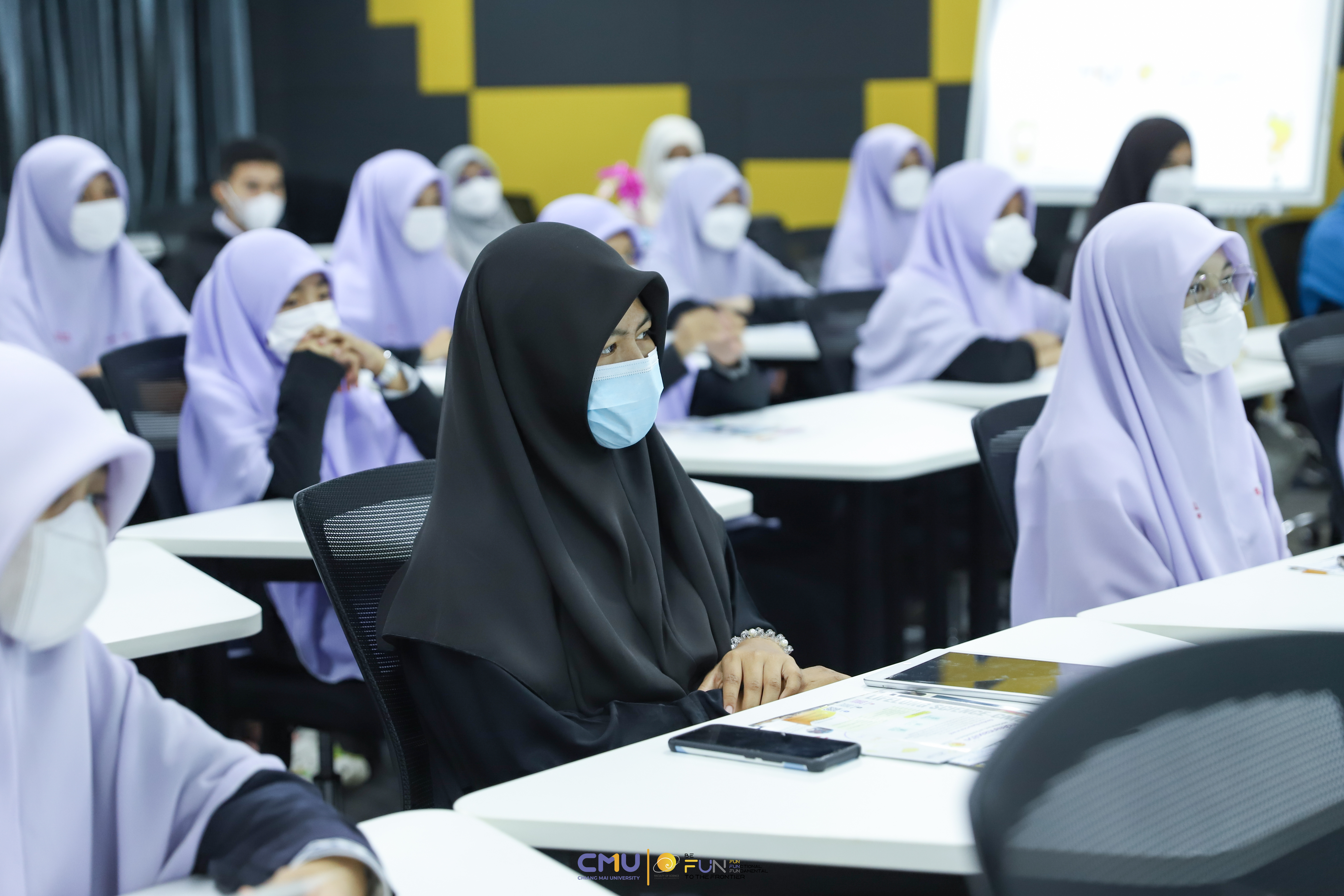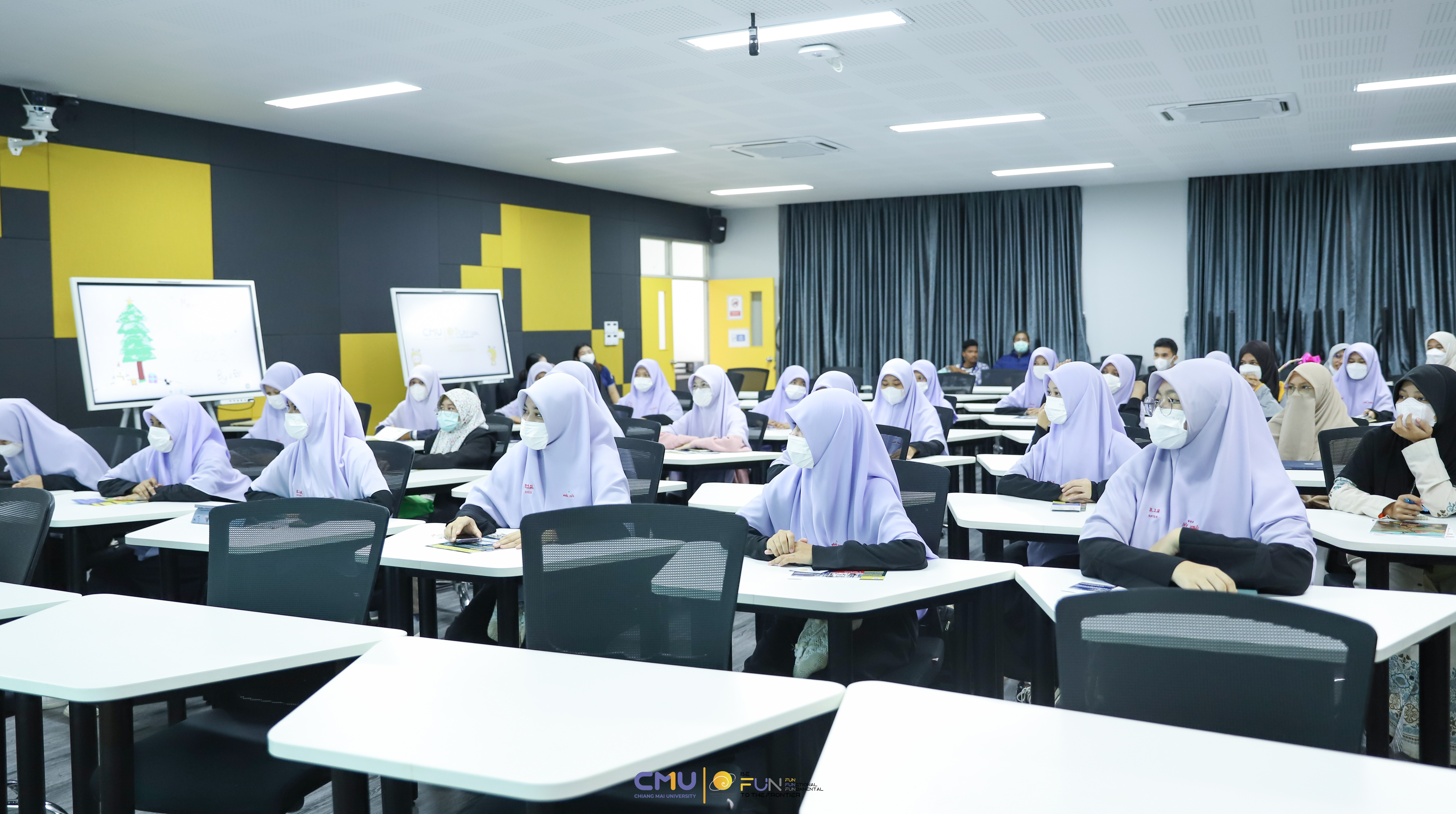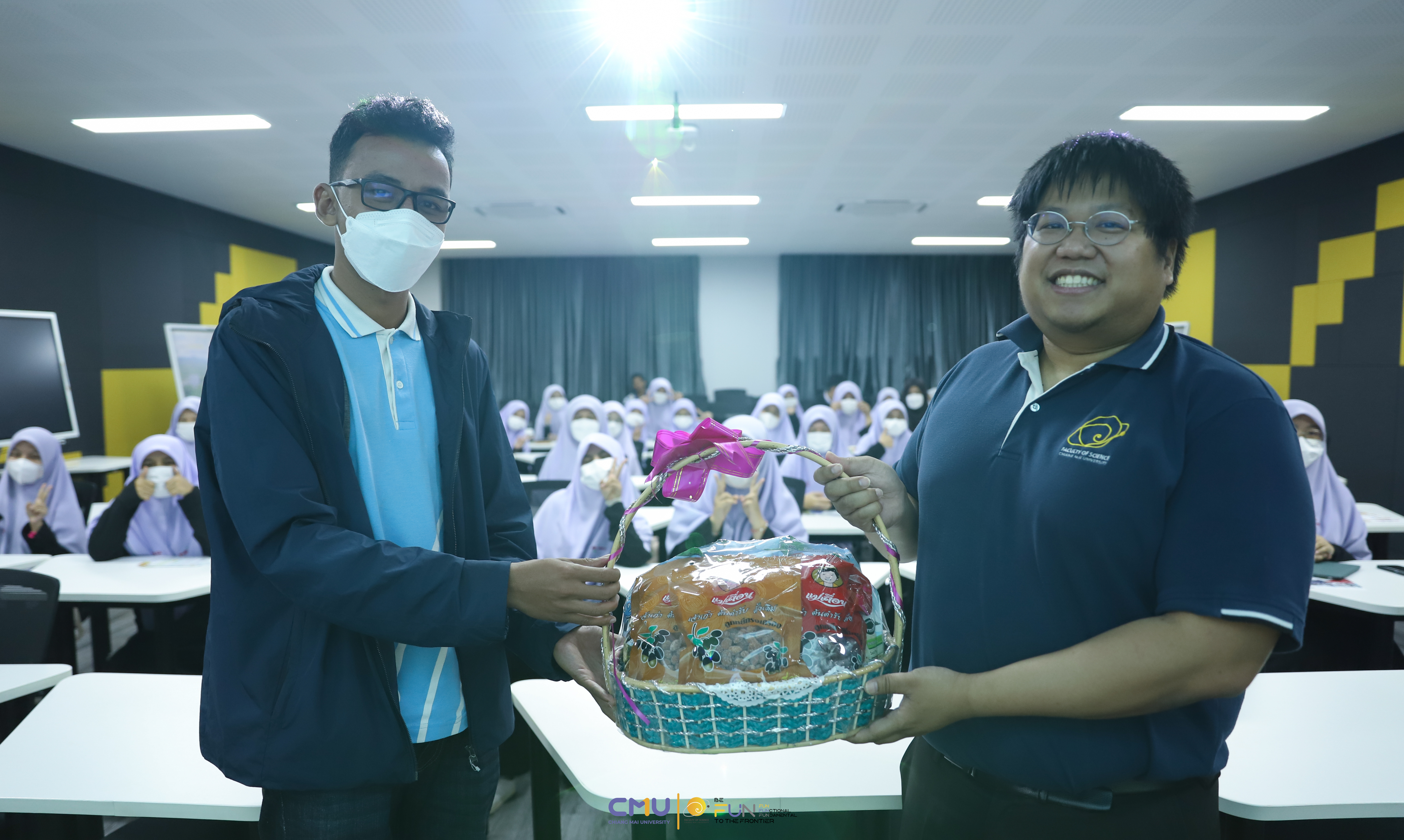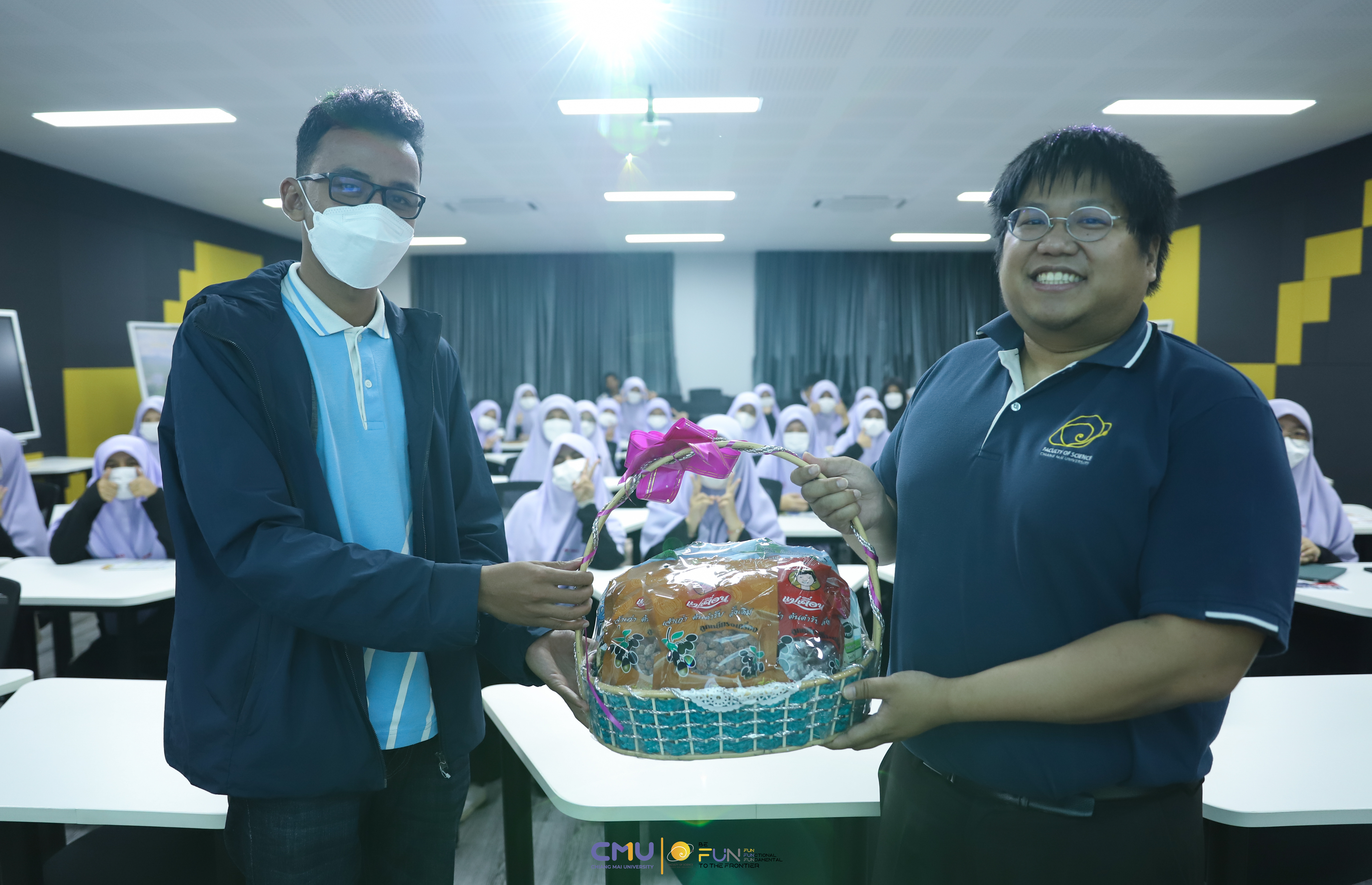 วันที่ 15 ธันวาคม 2565 ผู้ช่วยศาสตราจารย์ ดร.ศุภณัฐ ชัยดี ผู้ช่วยคณบดีฝ่ายสื่อสารองค์กร คณะวิทยาศาสตร์ กล่าวต้อนรับ พร้อมกับบรรยายแนะนำหลักสูตร และภาพรวมการเรียนการสอนของคณะวิทยาศาสตร์ ให้แก่นักเรียนจากโรงเรียนธรรมวิทยามูลนิธิ จังหวัดยะลา ที่มาเยี่ยมชม และศึกษาดูงานด้านการเรียนการสอนของคณะฯ เพื่อให้นักเรียนมีข้อมูลประกอบการตัดสินใจศึกษาต่อในระดับอุดมศึกษาอย่างรอบด้าน ณ ห้อง Smart Classroom อาคาร 40 ปี คณะวิทยาศาสตร์ พร้อมกับเปิดโอกาสให้นักเรียนเข้าชมภาควิชาธรณีวิทยา เพื่อสัมผัสบรรยากาศการเรียนจริงที่วิทยา มช.