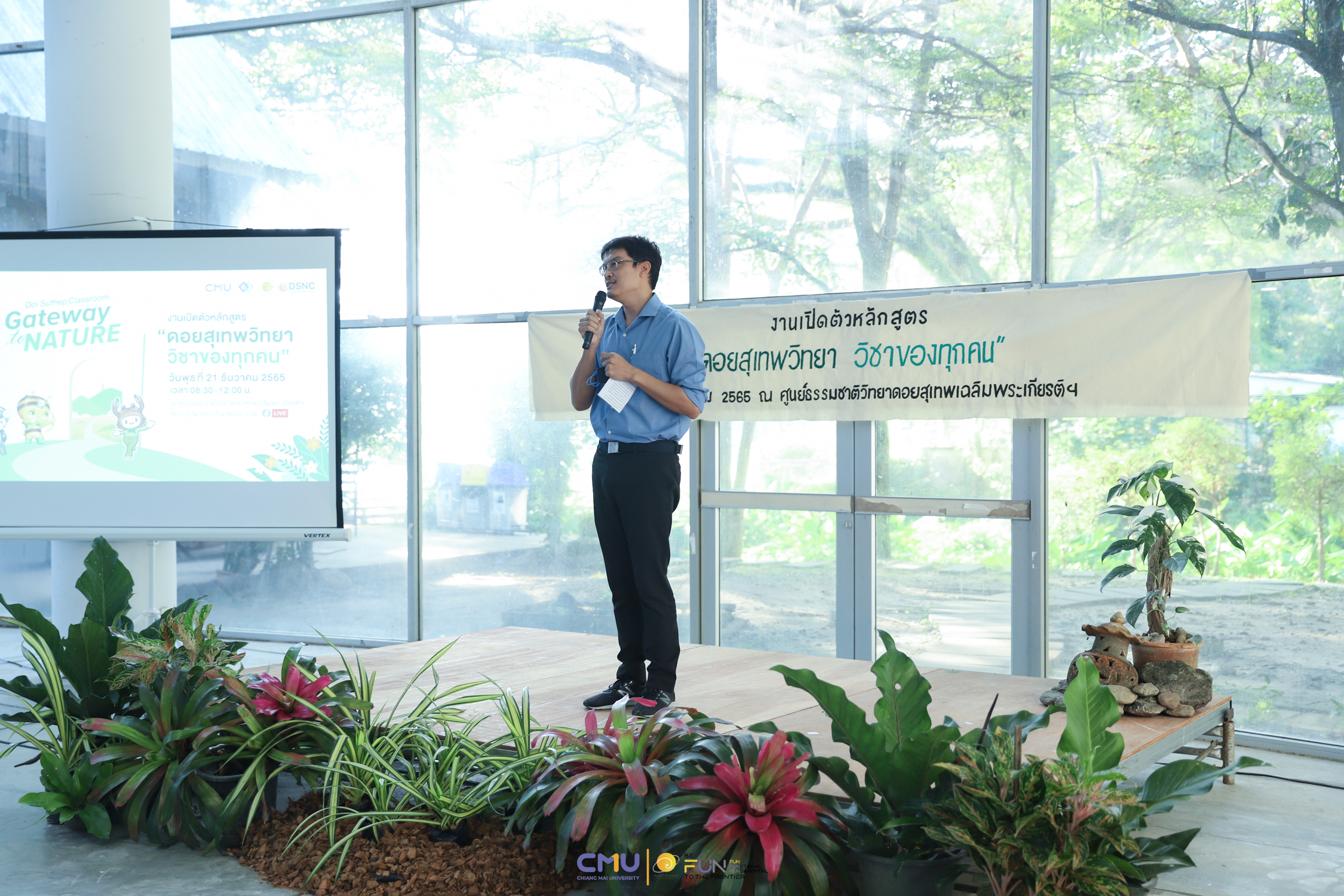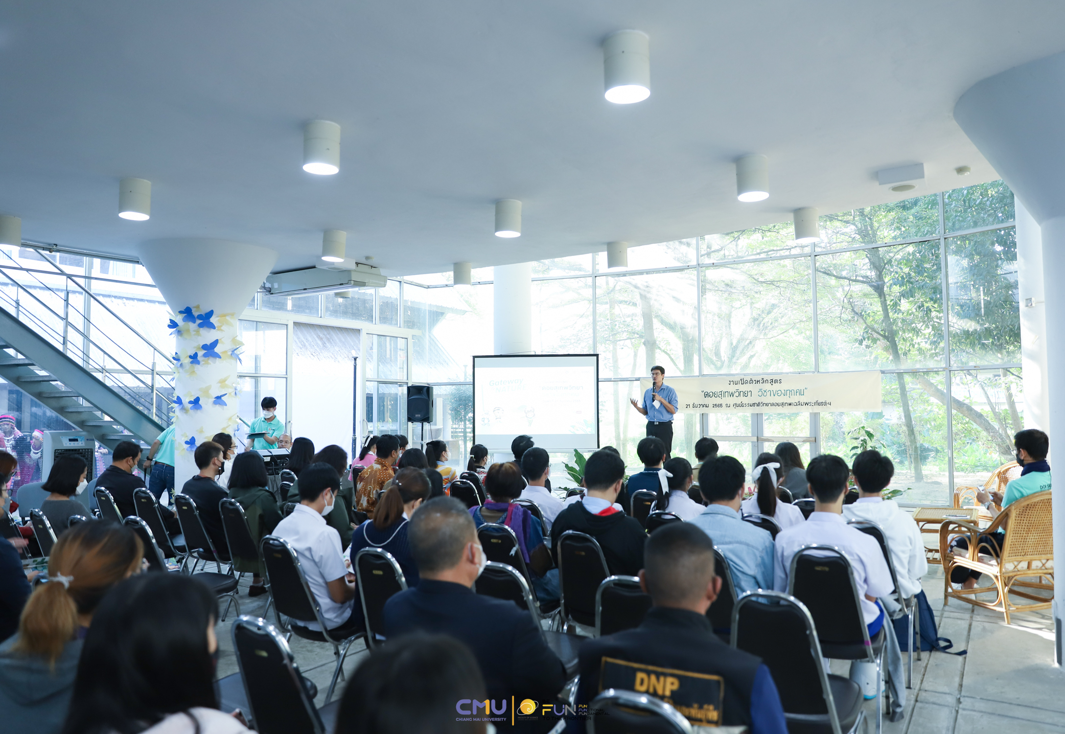 วันพุธที่ 21 ธันวาคม 2565 ศูนย์ธรรมชาติวิทยาดอยสุเทพเฉลิมพระเกียรติฯ คณะวิทยาศาสตร์ มหาวิทยาลัยเชียงใหม่ จัดงานเปิดตัวหลักสูตร “ดอยสุเทพวิทยา วิชาของทุกคน” Doi Suthep Classroom – Gateway to NATURE ณ ศูนย์ธรรมชาติวิทยาดอยสุเทพเฉลิมพระเกียรติฯ และถ่ายทอดสดผ่านระบบออนไลน์ โดยได้รับเกียรติจาก รศ.ดร.จิรัฏฐ์ แสนทน รองคณบดีฝ่ายแผนและยุทธศาสตร์ คณะวิทยาศาสตร์ เป็นประธานเปิดงาน และ รศ.ดร.ประสิทธิ์ วังภคพัฒนวงศ์ หัวหน้าศูนย์ธรรมชาติวิทยาดอยสุเทพเฉลิมพระเกียรติฯ กล่าวรายงานความเป็นมาของการจัดงาน