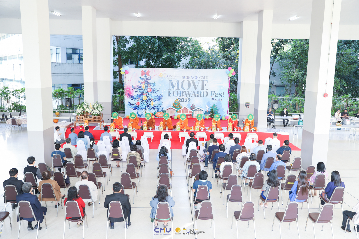 คณะวิทยาศาสตร์จัดพิธีทำบุญประจำปี งานประชุมบุคลากร และงานส่งท้ายปีเก่าต้อนรับปีใหม่ เมื่อวันที่ 28 ธันวาคม 2565 ณ ห้อง SCB2100 และบริเวณโถงกิจกรรมชั้น 1 อาคาร 40 ปี คณะวิทยาศาสตร์