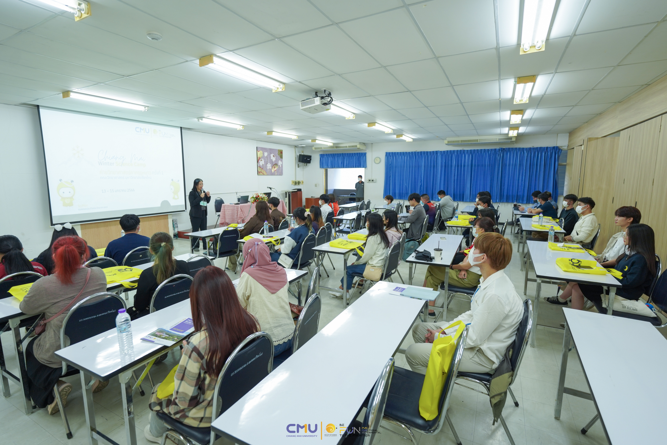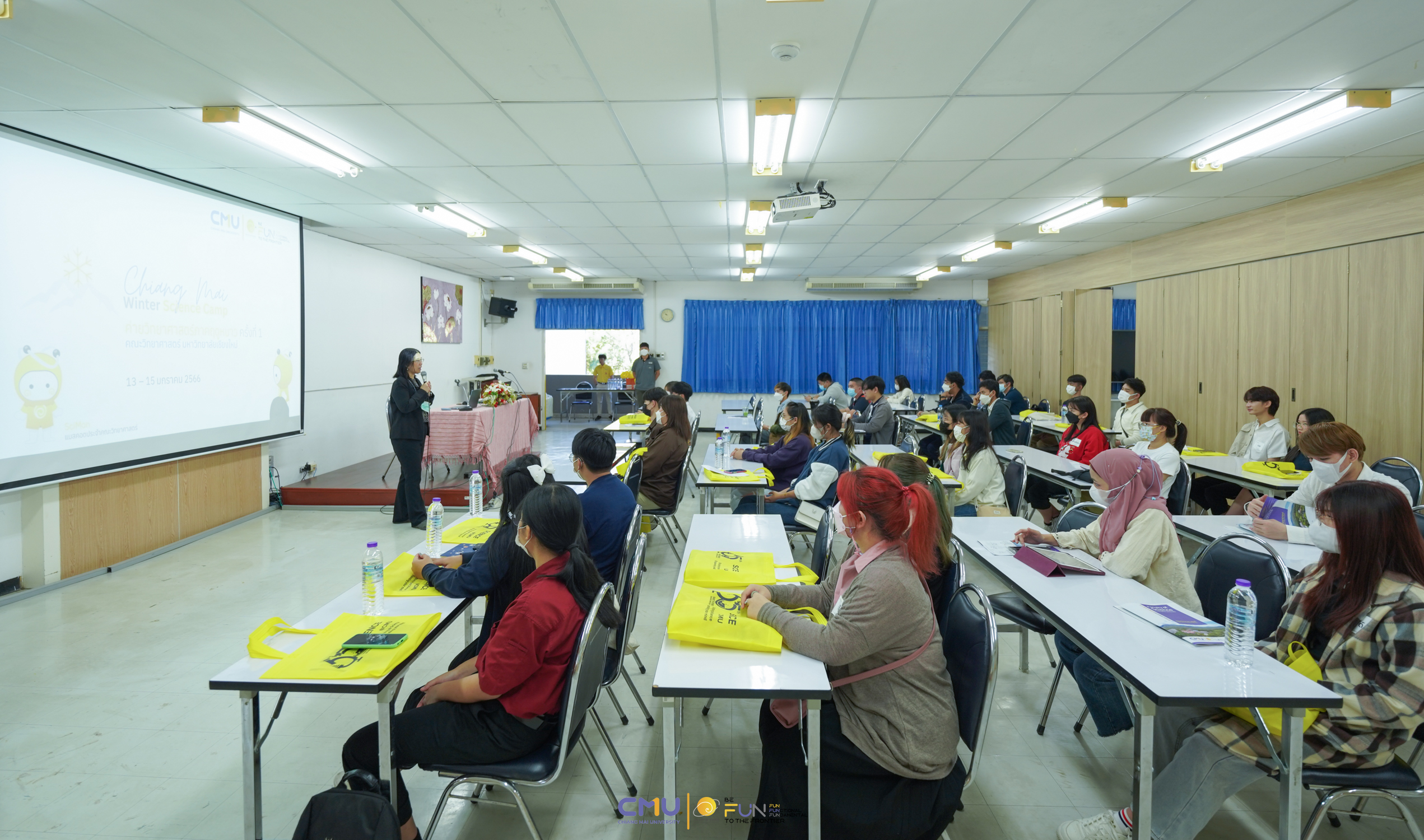 คณะวิทยาศาสตร์ จัดพิธีเปิดกิจกรรม "Chiang Mai Winter Science Camp" ค่ายสำหรับนักศึกษาระดับปริญญาตรี ปี 3 ขึ้นไป และผู้สนใจเรียนต่อระดับบัณฑิตศึกษาที่วิทยา มช. ที่ผ่านการคัดเลือกจากทั่วประเทศ เมื่อวันที่ 13 มกราคม 2566 ณ ห้องสัมมนา ชั้น 2 อาคาร 40 ปี คณะวิทยาศาสตร์ โดยได้รับเกียรติจาก ผู้ช่วยศาสตราจารย์ ดร.ภควรรณ พวงสมบัติ รองคณบดีฝ่ายวิชาการ เป็นประธานเปิดค่าย