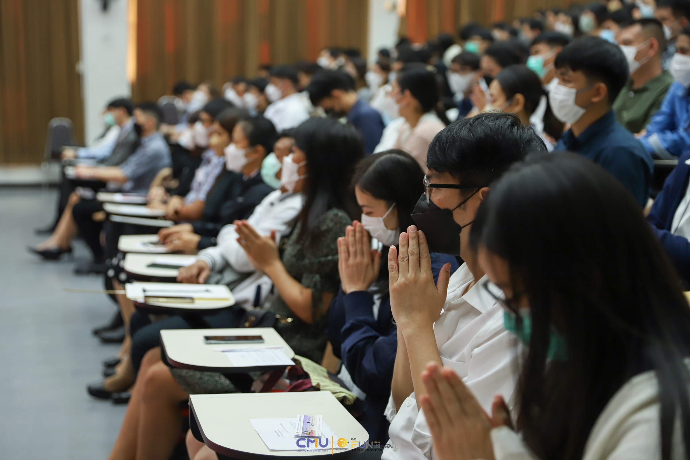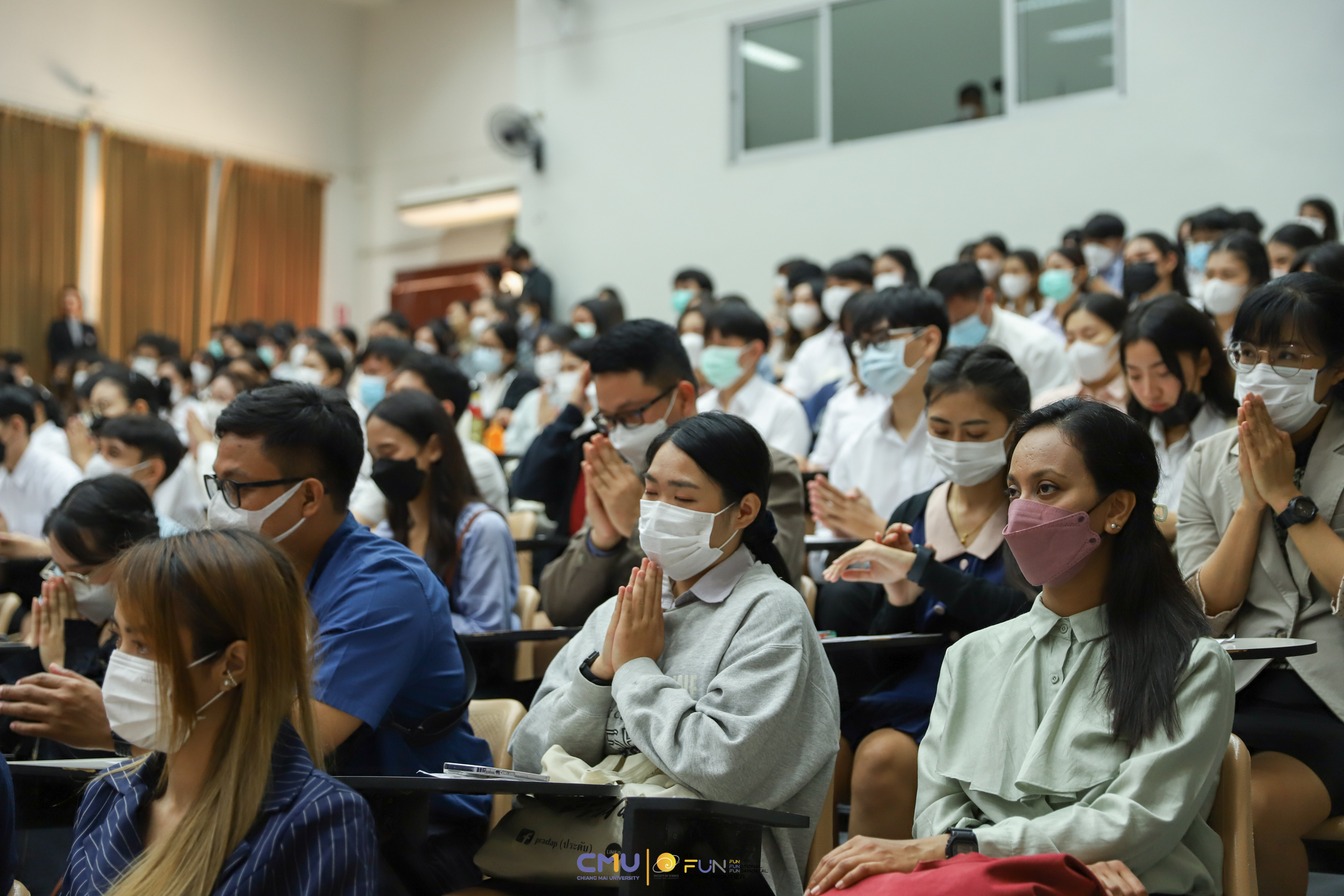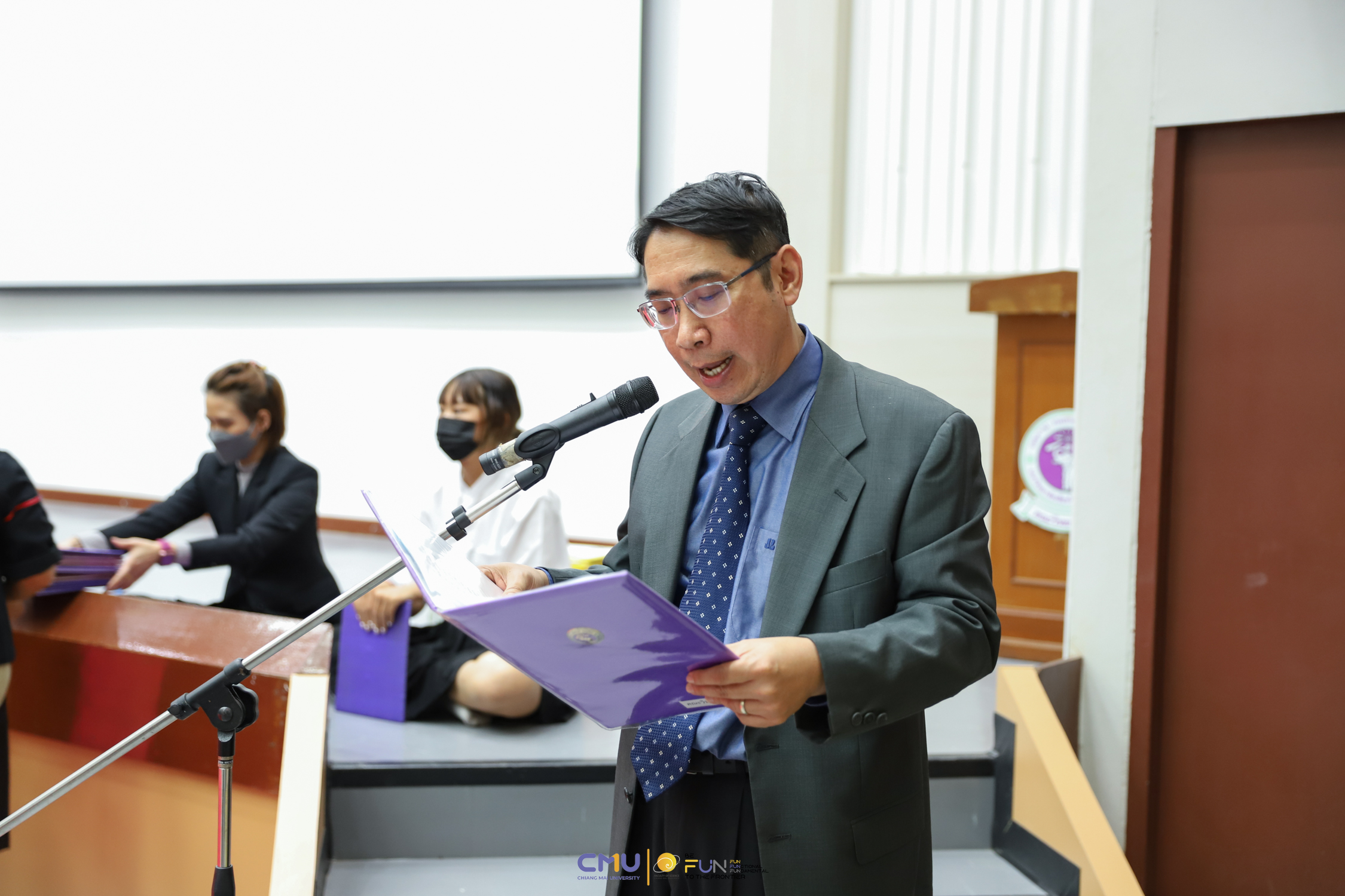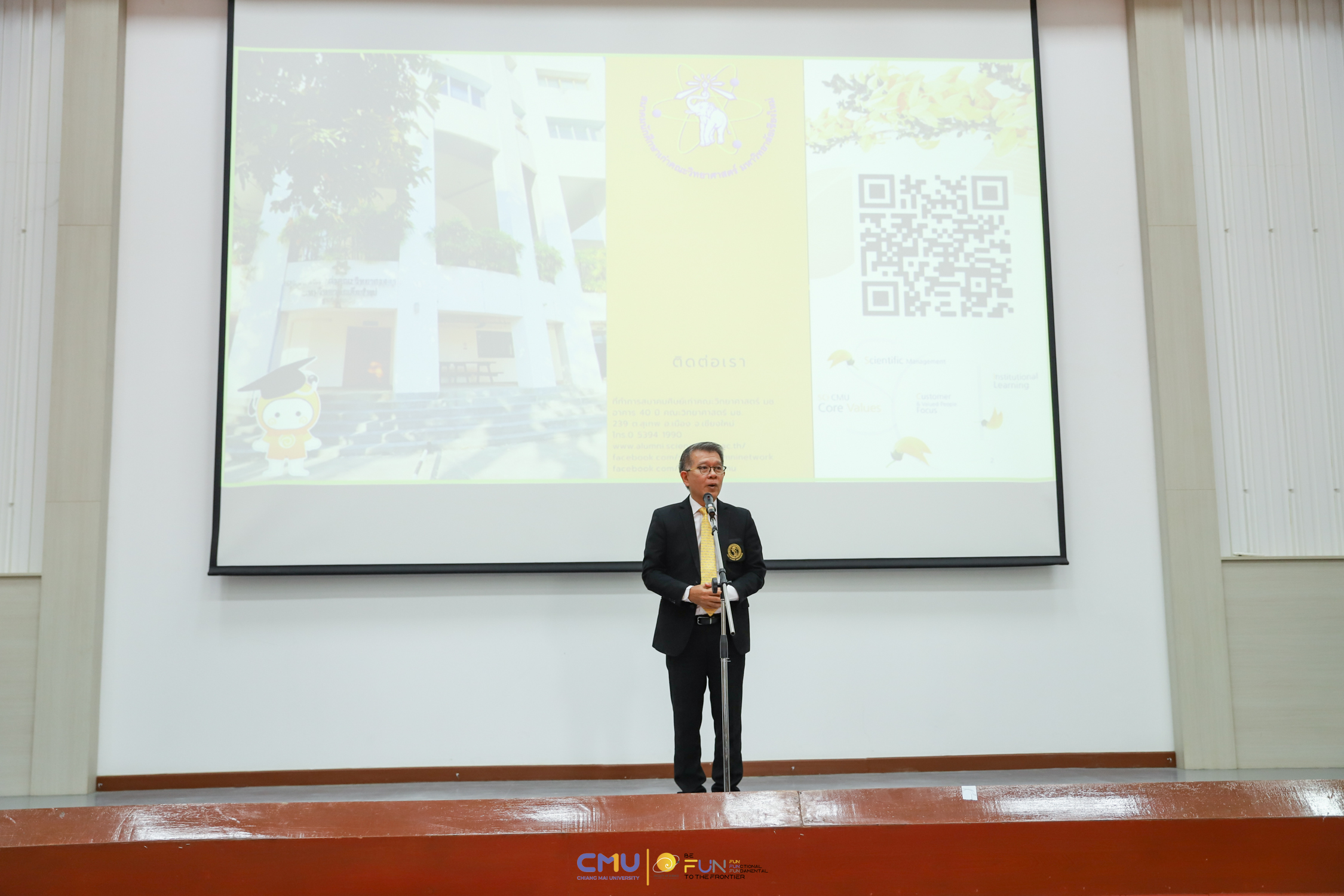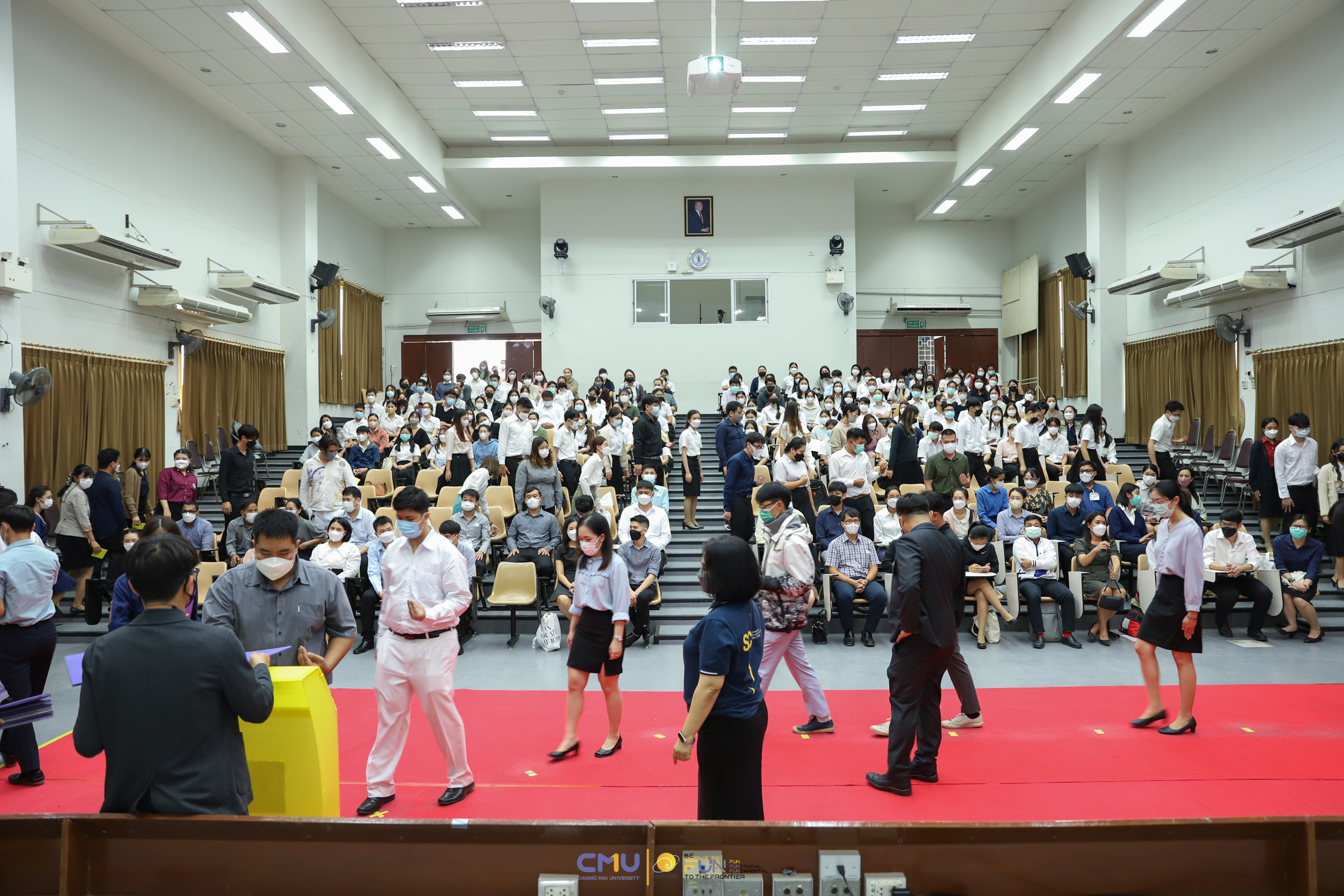 ศาสตราจารย์ เชี่ยวชาญพิเศษ ดร.ธรณินทร์ ไชยเรืองศรี คณบดีคณะวิทยาศาสตร์ และ ดร.สมหมาย เตชวาล นายกสมาคมนักศึกษาเก่าคณะวิทยาศาสตร์ กล่าวต้อนรับและแสดงความยินดีกับบัณฑิตใหม่ของคณะวิทยาศาสตร์ ที่จะเข้ารับมอบปริญญาบัตร ครั้งที่ 57 ของมหาวิทยาลัยเชียงใหม่ ในการฝึกซ้อมเข้ารับมอบปริญญาบัตรของบัณฑิตคณะวิทยาศาสตร์ เมื่อวันที่ 21 มกราคม 2566 ณ ห้องบรรยาย SCB2100 และลานอะตอม อาคาร 40 ปี คณะวิทยาศาสตร์
