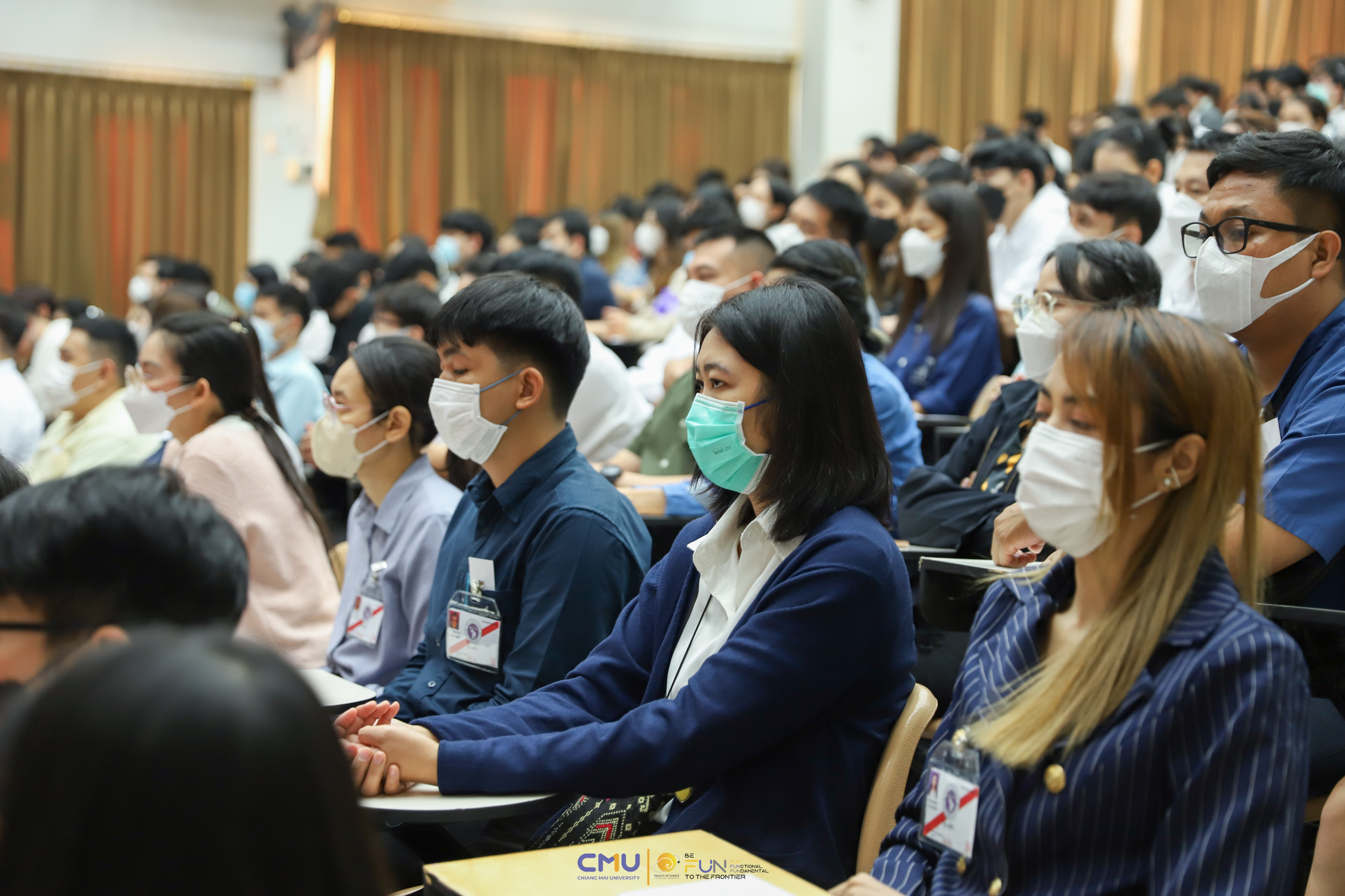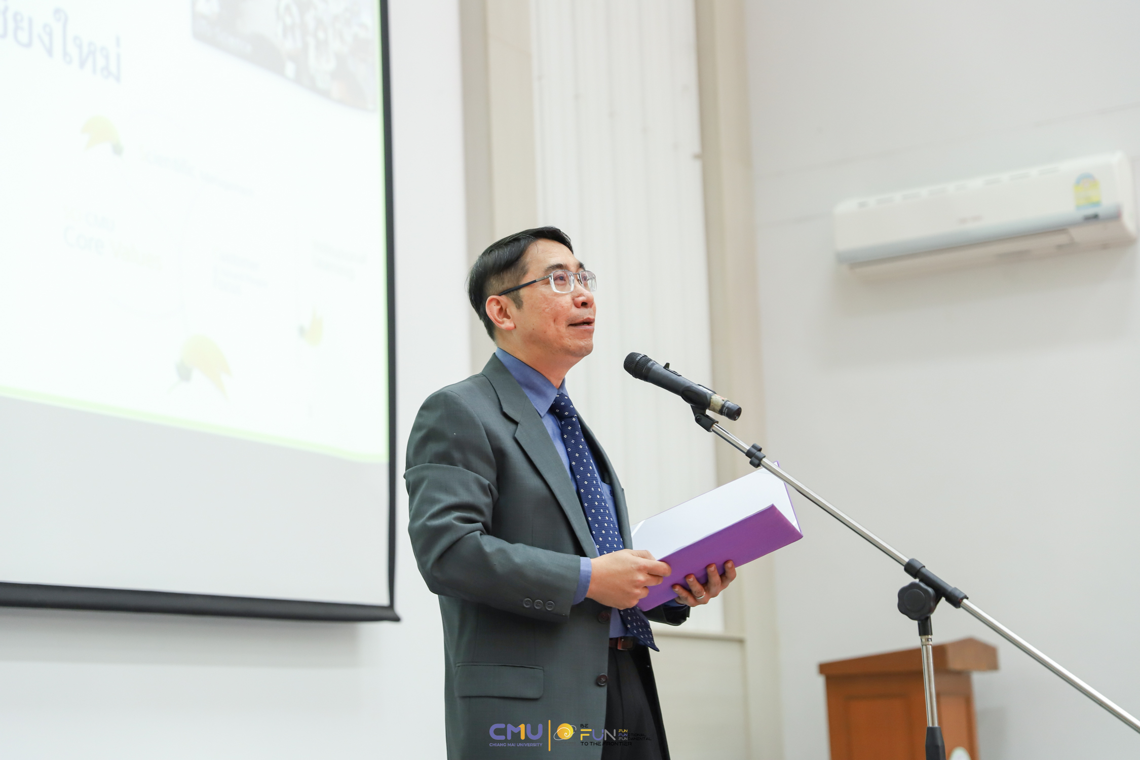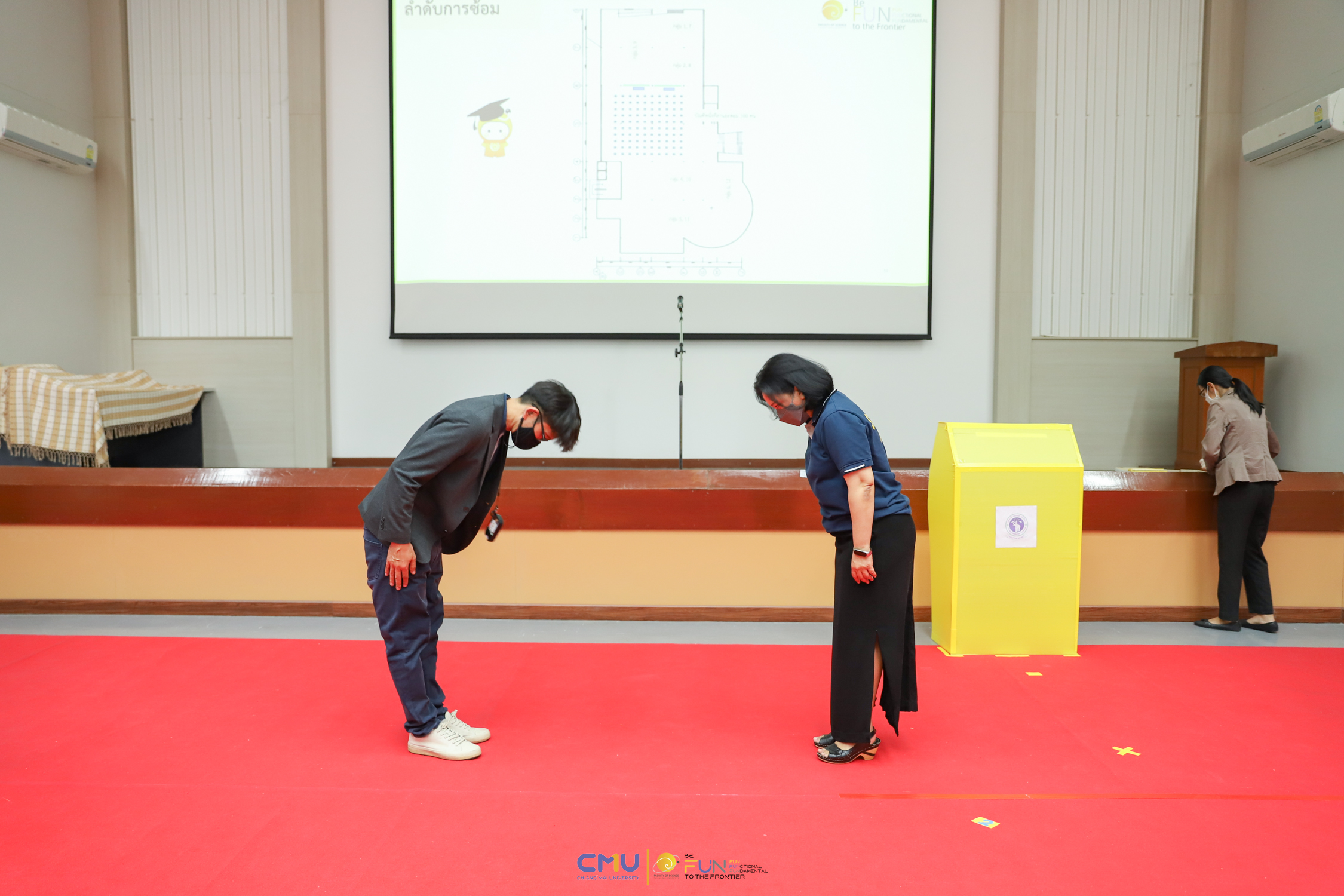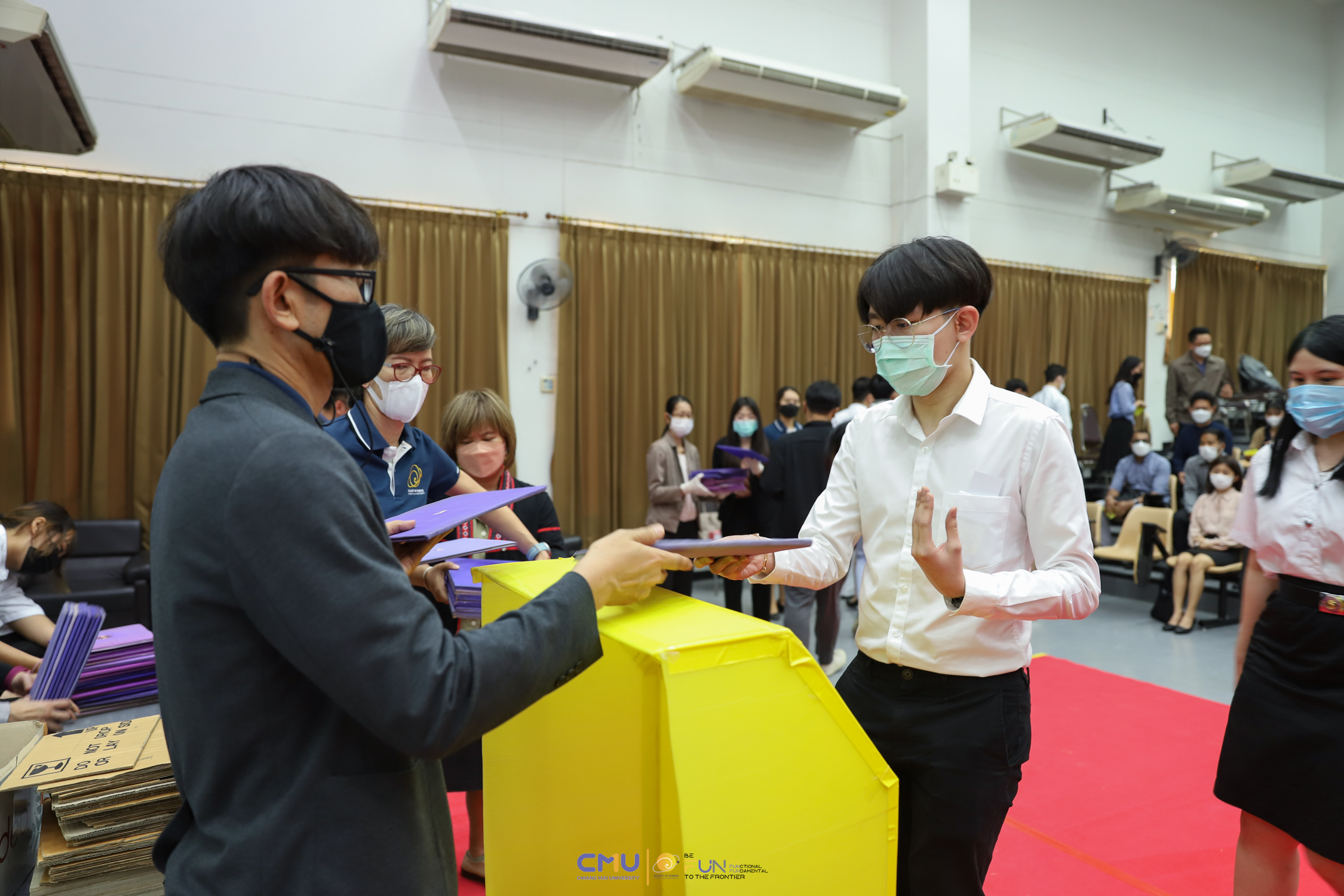 ศาสตราจารย์ เชี่ยวชาญพิเศษ ดร.ธรณินทร์ ไชยเรืองศรี คณบดีคณะวิทยาศาสตร์ และ ดร.สมหมาย เตชวาล นายกสมาคมนักศึกษาเก่าคณะวิทยาศาสตร์ กล่าวต้อนรับและแสดงความยินดีกับบัณฑิตใหม่ของคณะวิทยาศาสตร์ ที่จะเข้ารับมอบปริญญาบัตร ครั้งที่ 57 ของมหาวิทยาลัยเชียงใหม่ ในการฝึกซ้อมเข้ารับมอบปริญญาบัตรของบัณฑิตคณะวิทยาศาสตร์ เมื่อวันที่ 21 มกราคม 2566 ณ ห้องบรรยาย SCB2100 และลานอะตอม อาคาร 40 ปี คณะวิทยาศาสตร์