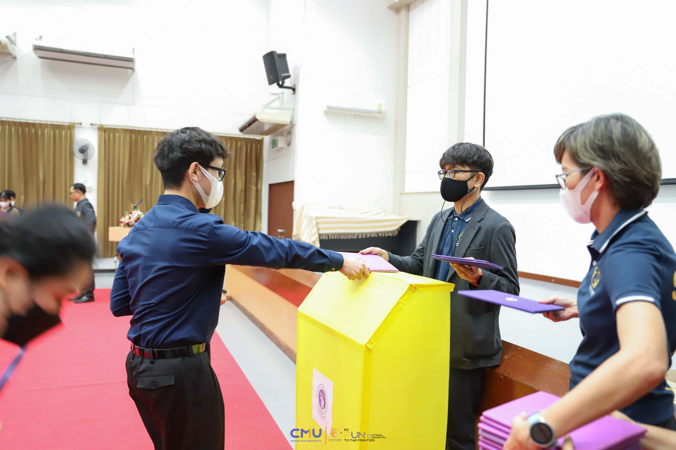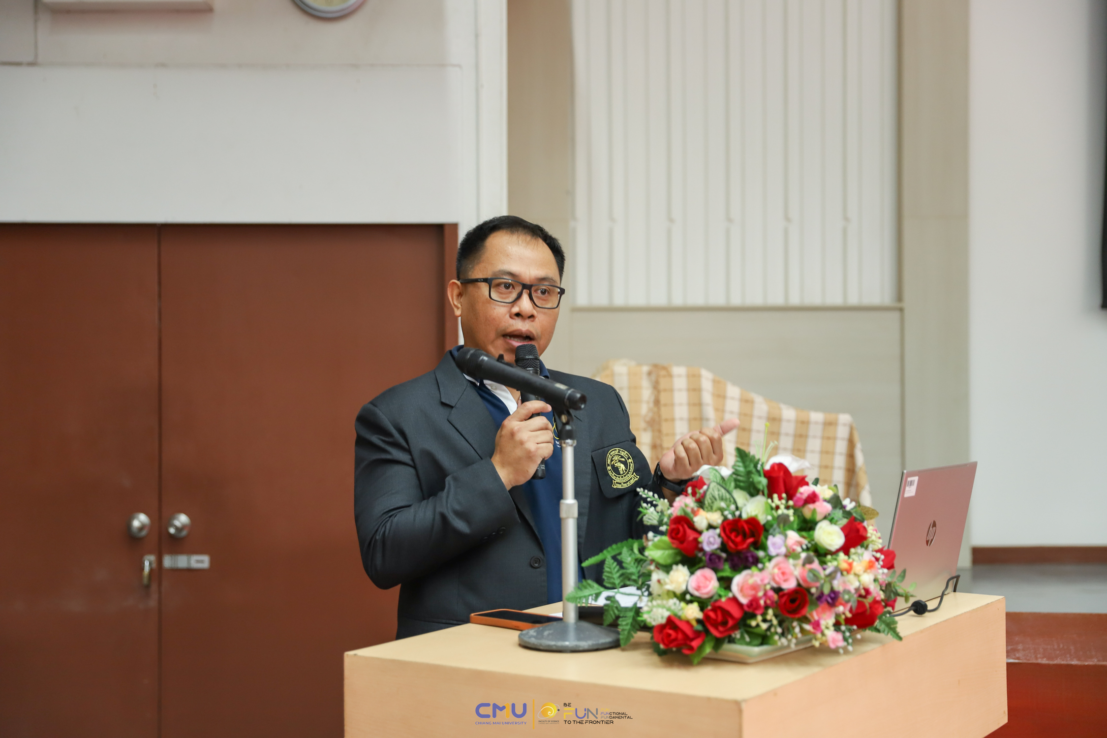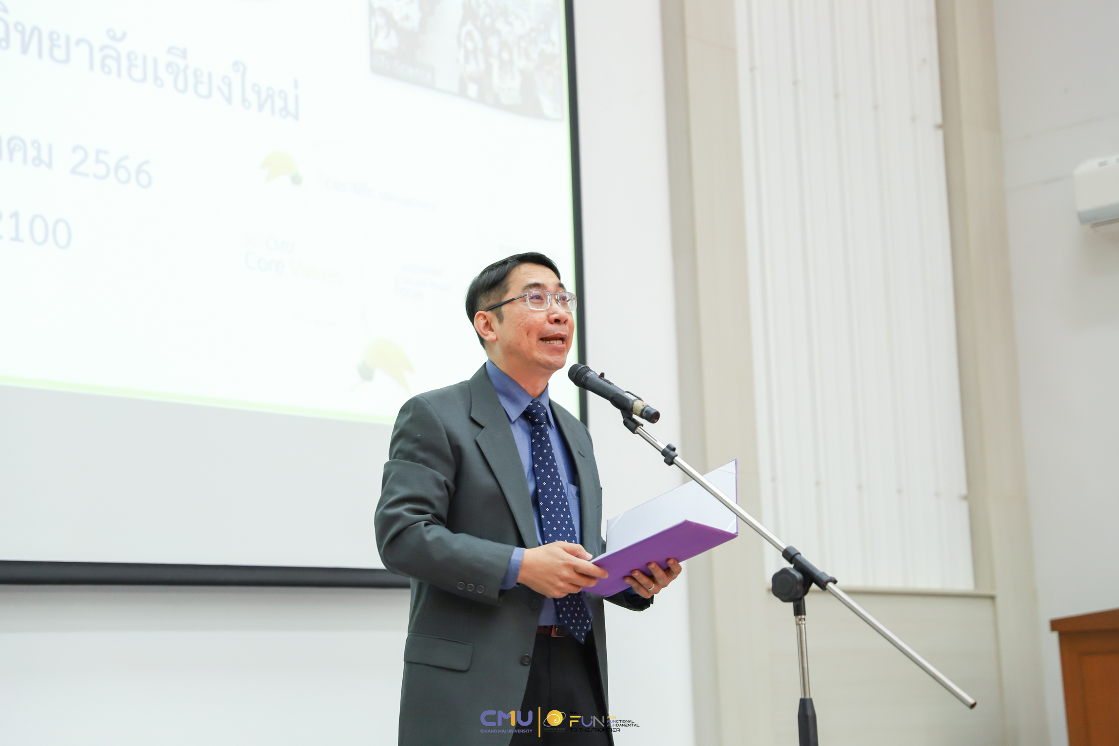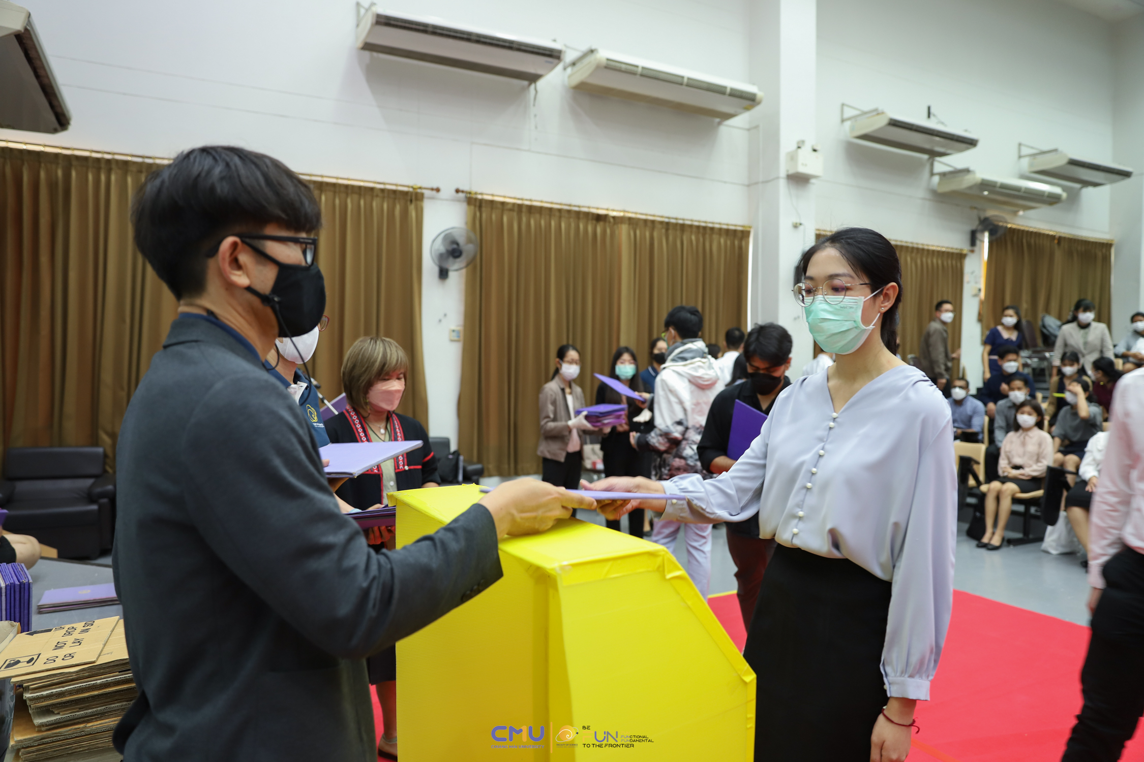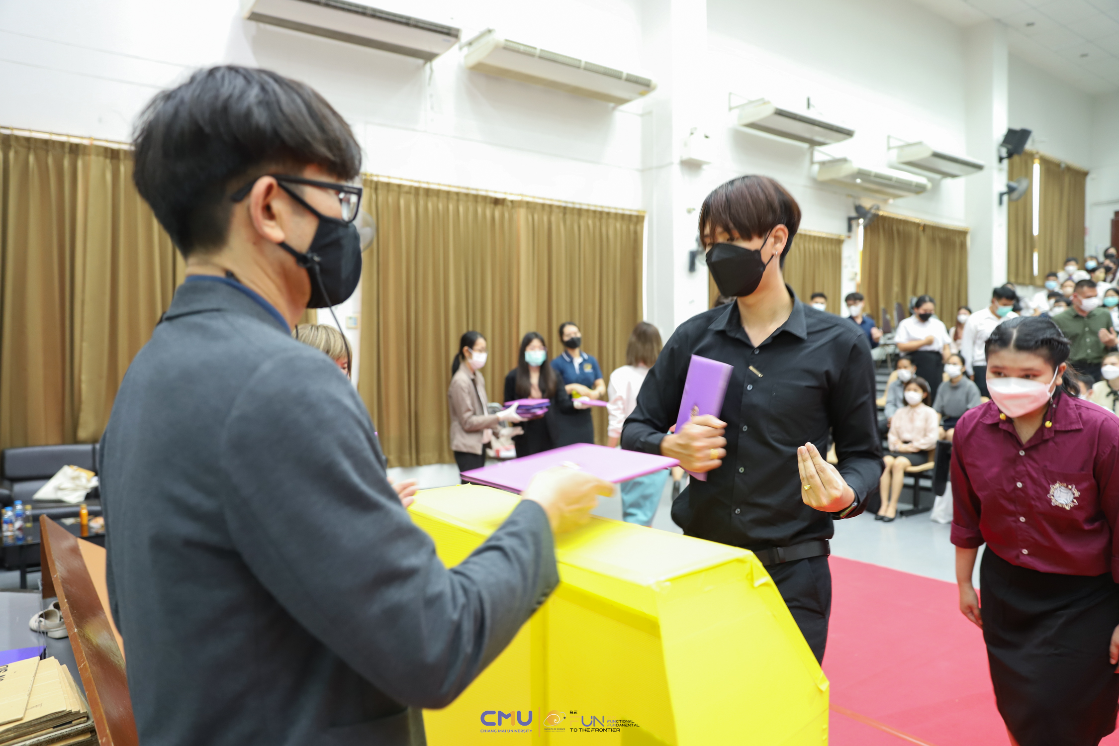 ศาสตราจารย์ เชี่ยวชาญพิเศษ ดร.ธรณินทร์ ไชยเรืองศรี คณบดีคณะวิทยาศาสตร์ และ ดร.สมหมาย เตชวาล นายกสมาคมนักศึกษาเก่าคณะวิทยาศาสตร์ กล่าวต้อนรับและแสดงความยินดีกับบัณฑิตใหม่ของคณะวิทยาศาสตร์ ที่จะเข้ารับมอบปริญญาบัตร ครั้งที่ 57 ของมหาวิทยาลัยเชียงใหม่ ในการฝึกซ้อมเข้ารับมอบปริญญาบัตรของบัณฑิตคณะวิทยาศาสตร์ เมื่อวันที่ 21 มกราคม 2566 ณ ห้องบรรยาย SCB2100 และลานอะตอม อาคาร 40 ปี คณะวิทยาศาสตร์