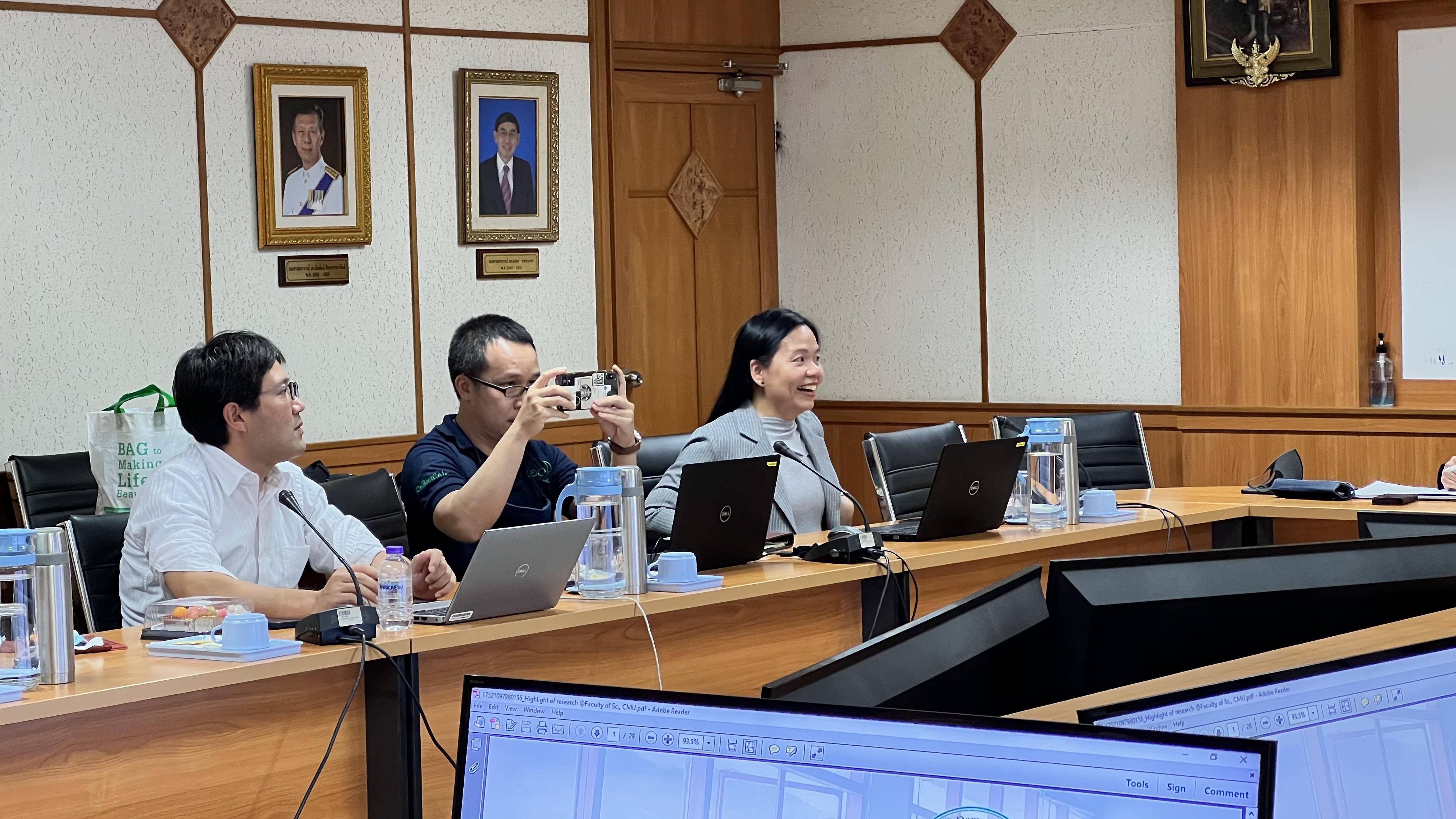 เมื่อวันที่ 24 มกราคม 2566 รองศาสตราจารย์ ดร.เกศรินทร์ พิมรักษา รองคณบดีฝ่ายวิจัยและวิเทศสัมพันธ์ คณะวิทยาศาสตร์ ให้การต้อนรับคณะผู้บริหารและนักวิจัยจาก บริษัท คาโอ อินดัสเตรียล (ประเทศไทย) จำกัด ซึ่งนำโดย Mr. Kenji Terasawa (VP & GM Chemical Business) และ Mr. Narin Sayanwisuttikam (VP Technical Sales & Marketing) ในโอกาสเข้าพบ เพื่อร่วมหารือในประเด็น Research collaboration ในการสร้างความร่วมมือด้านการวิจัยระหว่างคณะวิทยาศาสตร์และบริษัท ซึ่งจะนำไปสู่การพัฒนาองค์ความรู้จากการวิจัยสู่การใช้ประโยชน์เชิงพาณิชย์ในอนาคต ณ ห้องประชุมบัวเรศคำทอง ชั้น 2 อาคาร 40 ปี คณะวิทยาศาสตร์ พร้อมกันนี้ ได้นำชมเครื่องมือวิทยาศาสตร์ขั้นสูง ณ อาคารปฏิบัติการกลาง คณะวิทยาศาสตร์ โดยมี ผู้ช่วยศาสตราจารย์ ดร.โยธิน ฉิมอุปละ ผู้บริหารจัดการห้องปฏิบัติการกลาง ให้การต้อนรับและบรรยายข้อมูล