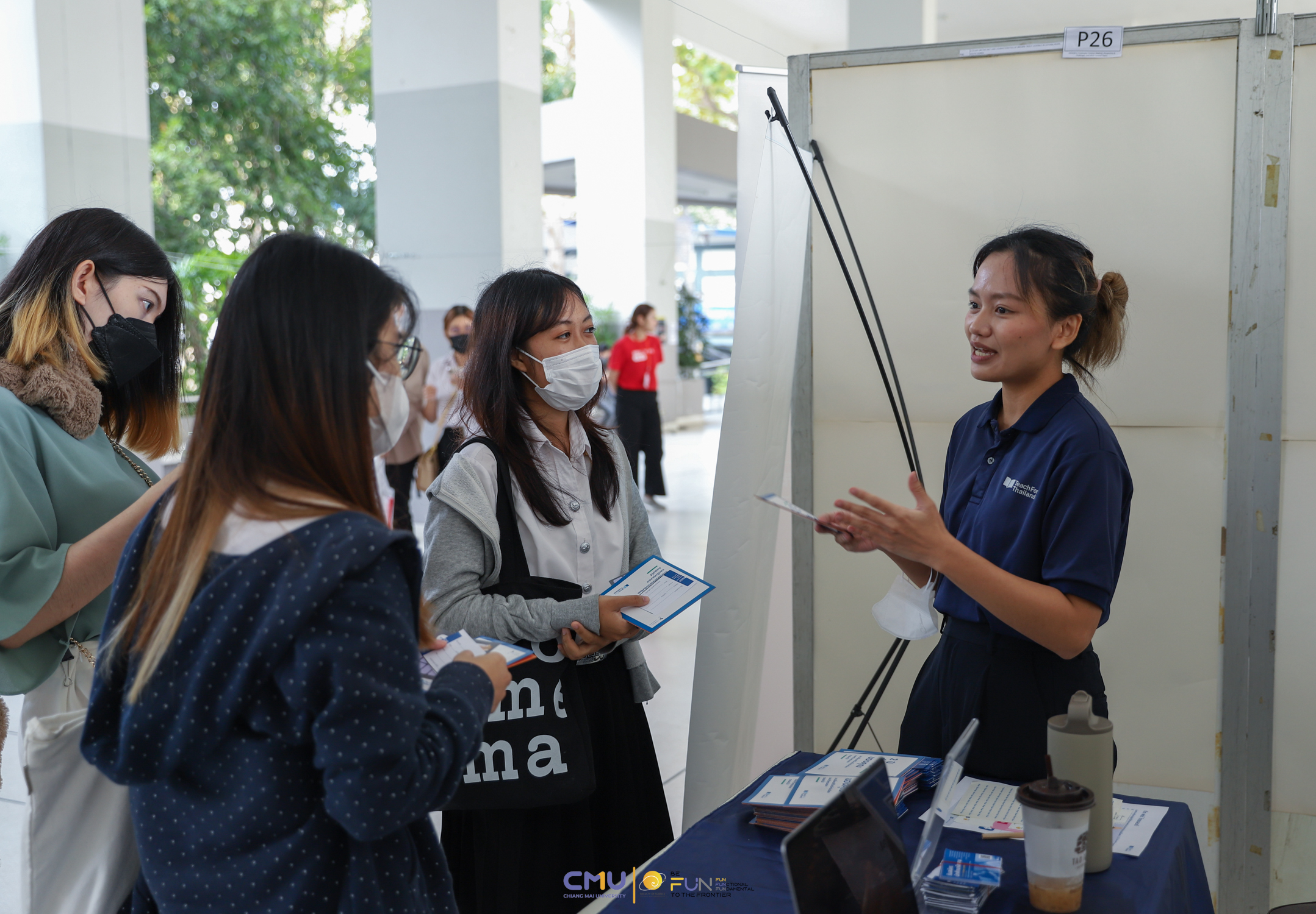 คณะวิทยาศาสตร์จัดงาน Science CMU Job Fair 2023 เมื่อวันที่ 1 กุมภาพันธ์ 2566 ณ ห้อง SCB2100 และลานอะตอม ชั้น 1 อาคาร 40 ปี คณะวิทยาศาสตร์ ภายในงานมีการการบรรยาย หัวข้อ เตรียมตัวอย่างไรก่อนไปสัมภาษณ์ (เคล็ดไม่ลับฉบับ HR) โดยวิทยากรพิเศษ และการแนะนำบริษัทและตำแหน่งงาน กว่า 31 บริษัท (ทั้งแบบ On-Site และ Online) โดยมีนักศึกษาให้ความสนใจเข้าร่วมงานอย่างคึกคัก โดยได้รับเกียรติจาก ศ. (เชี่ยวชาญพิเศษ) ดร.ธรณินทร์ ไชยเรืองศรี คณบดีคณะวิทยาศาสตร์ เป็นประธานเปิดกิจกรรม และ ผศ.ดร.ชัยพร ตั้งทอง รองคณบดีฝ่ายพัฒนาคุณภาพนักศึกษาและศิษย์เก่าสัมพันธ์ รายงานความเป็นมาของการจัดงาน