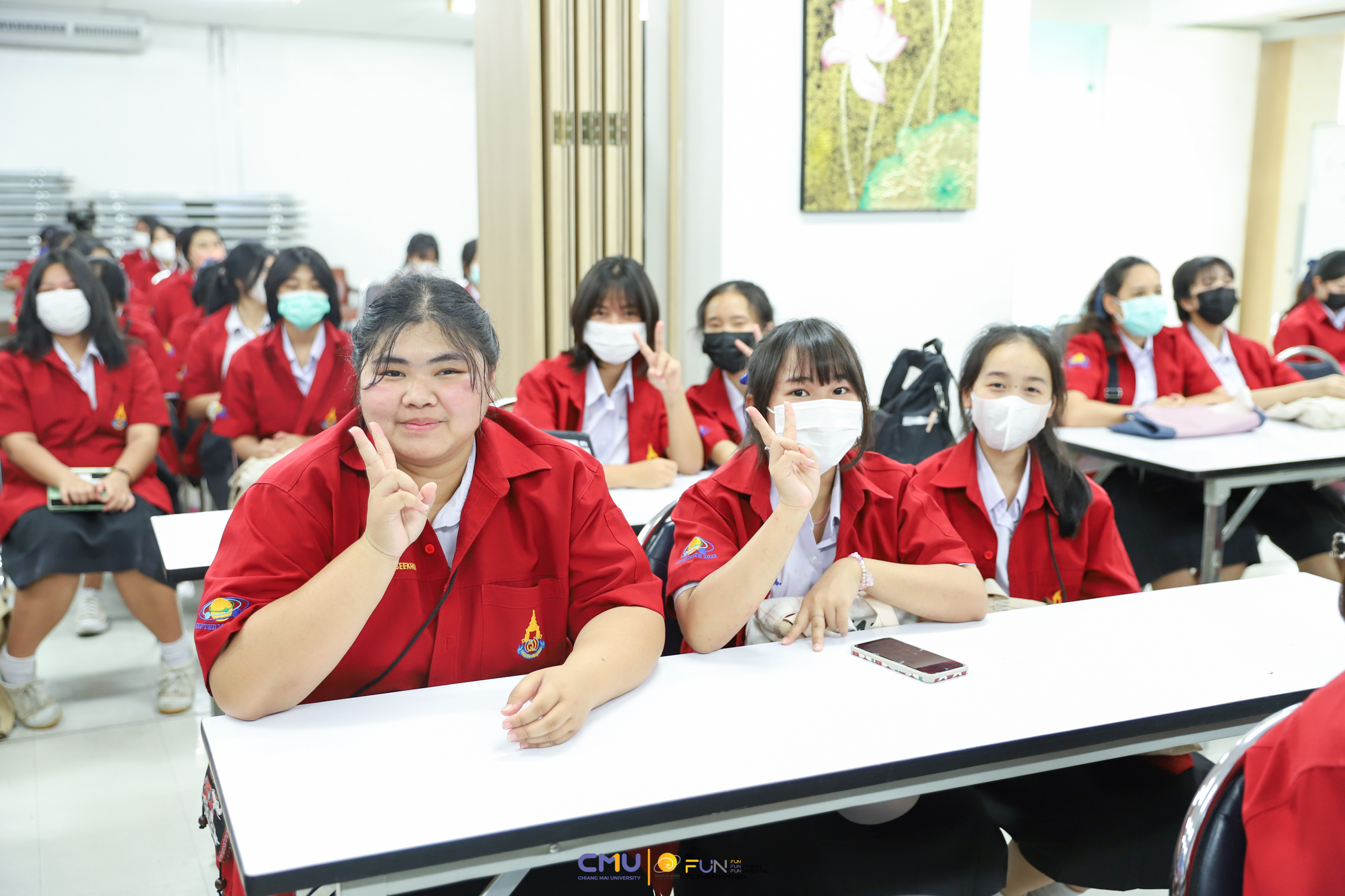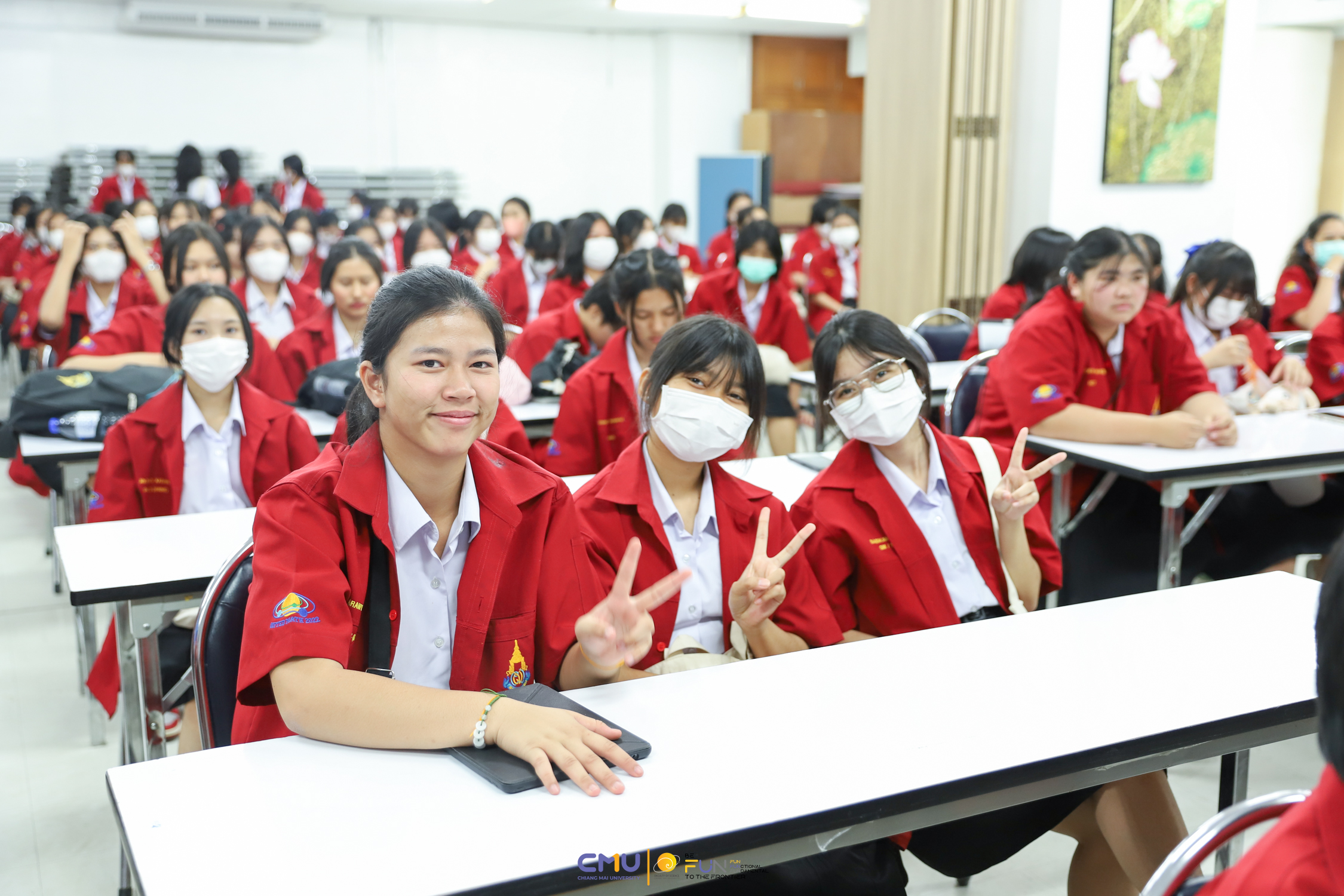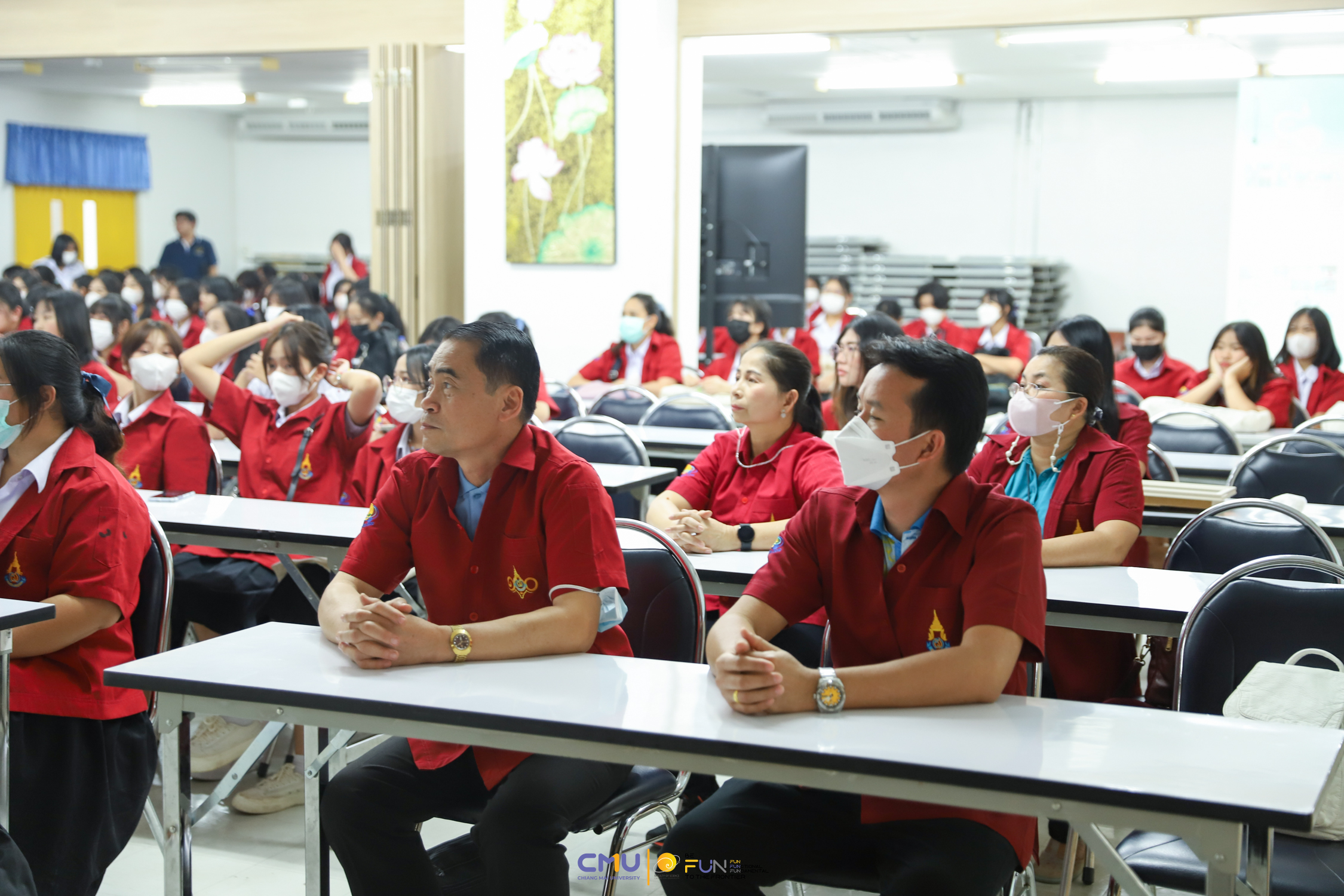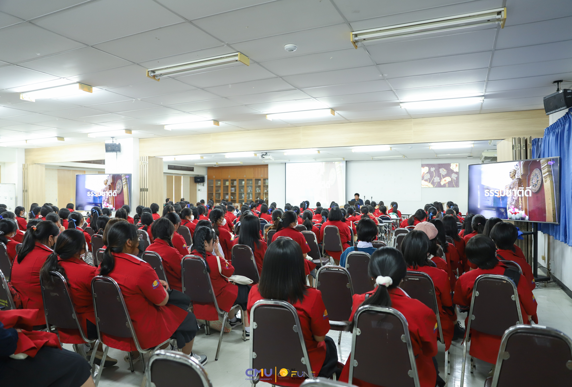วันที่ 20 กุมภาพันธ์ 2566 ผู้ช่วยศาสตราจารย์ ดร.ศุภณัฐ ชัยดี ผู้ช่วยคณบดีฝ่ายสื่อสารองค์กร คณะวิทยาศาสตร์ กล่าวต้อนรับ พร้อมกับบรรยายแนะนำหลักสูตร และภาพรวมการเรียนการสอนของคณะวิทยาศาสตร์ ให้แก่นักเรียนห้องเรียนพิเศษคณิตศาสตร์ จากโรงเรียนสตรีราชินูทิศ อ.เมือง จ.อุดรธานี จำนวน 190 คน ที่มาเยี่ยมชม และศึกษาดูงานด้านการเรียนการสอนของคณะวิทยาศาสตร์ ทั้งนี้ เพื่อให้นักเรียนมีข้อมูลประกอบการตัดสินใจศึกษาต่อในระดับอุดมศึกษาอย่างรอบด้าน โดยมีอาจารย์ ดร. ว่าที่ร้อยเอกเฉลิมรัช นนทะภา พร้อมด้วยนักศึกษาภาควิชาคณิตศาสตร์ ร่วมต้อนรับน้องๆ ณ ห้องสัมมนา ชั้น 2 อาคาร 40 ปี คณะวิทยาศาสตร์ และนำเยี่ยมชมห้องเรียน บรรยากาศการเรียนการสอน และอาคารต่างๆ ภายในคณะ