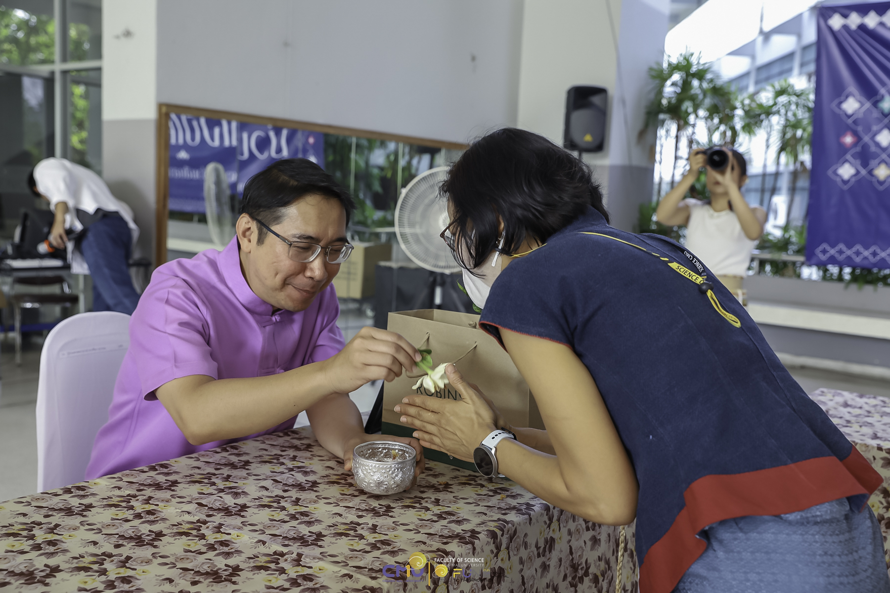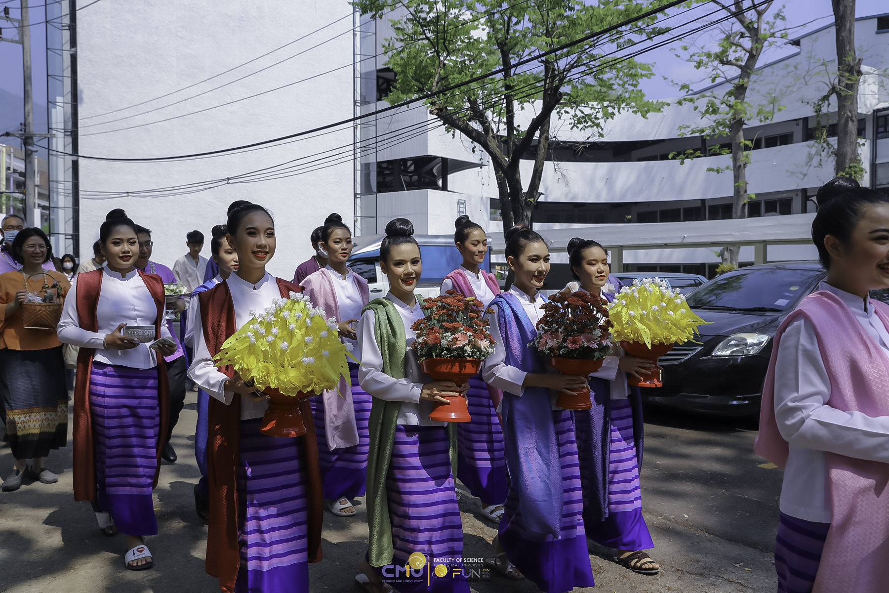 คณะวิทยาศาสตร์จัดพิธีดำหัวผู้อาวุโสคณะวิทยาศาสตร์ ในวันศุกร์ที่ 28 เมษายน 2566 ณ บริเวณโถงชั้น 1 อาคาร 40 ปี คณะวิทยาศาสตร์ โดยมีศาสตราจารย์ (เชี่ยวชาญพิเศษ) ดร. ธรณินทร์ ไชยเรืองศรี คณบดีคณะวิทยาศาสตร์ เป็นประธานในพิธี ซึ่งกิจกรรมสำคัญนี้ จัดขึ้นเพื่อส่งเสริมให้คณาจารย์ บุคลากร ตลอดจนนักศึกษาคณะวิทยาศาสตร์ ได้ร่วมกันอนุรักษ์สืบสานประเพณีปี๋ใหม่เมือง และแสดงความเคารพนอบน้อมต่อผู้อาวุโส รวมทั้งสร้างความสัมพันธ์อันดีภายในองค์กร ในปีนี้มีผู้อาวุโส ซึ่งประกอบด้วย อดีตผู้บริหาร ผู้เกษียณ และผู้ทรงคุณวุฒิจากทุกส่วนงาน ให้เกียรติเข้าร่วมงานอย่างคับคั่ง โดยบรรยากาศภายในงานเป็นไปอย่างอบอุ่นและเรียบง่าย บุคลากรและนักศึกษาได้พร้อมใจกันตกแต่งริ้วขบวนอย่างสวยงามเข้าสระเกล้าดำหัวและขอพรจากผู้อาวุโสโดยพร้อมเพรียงกัน ในโอกาสเดียวกันนี้ คณบดีคณะวิทยาศาสตร์ ได้นำคณาจารย์ บุคลากร และนักศึกษา เข้าร่วมพิธีดำหัวผู้อาวุโสมหาวิทยาลัยเชียงใหม่ ณ บริเวณลานสัก มหาวิทยาลัยเชียงใหม่ เพื่อสืบทอดวัฒนธรรมที่สวยงาม และเสริมสร้างความเป็นน้ำหนึ่งใจเดียวกันของชาว มช. ด้วย
