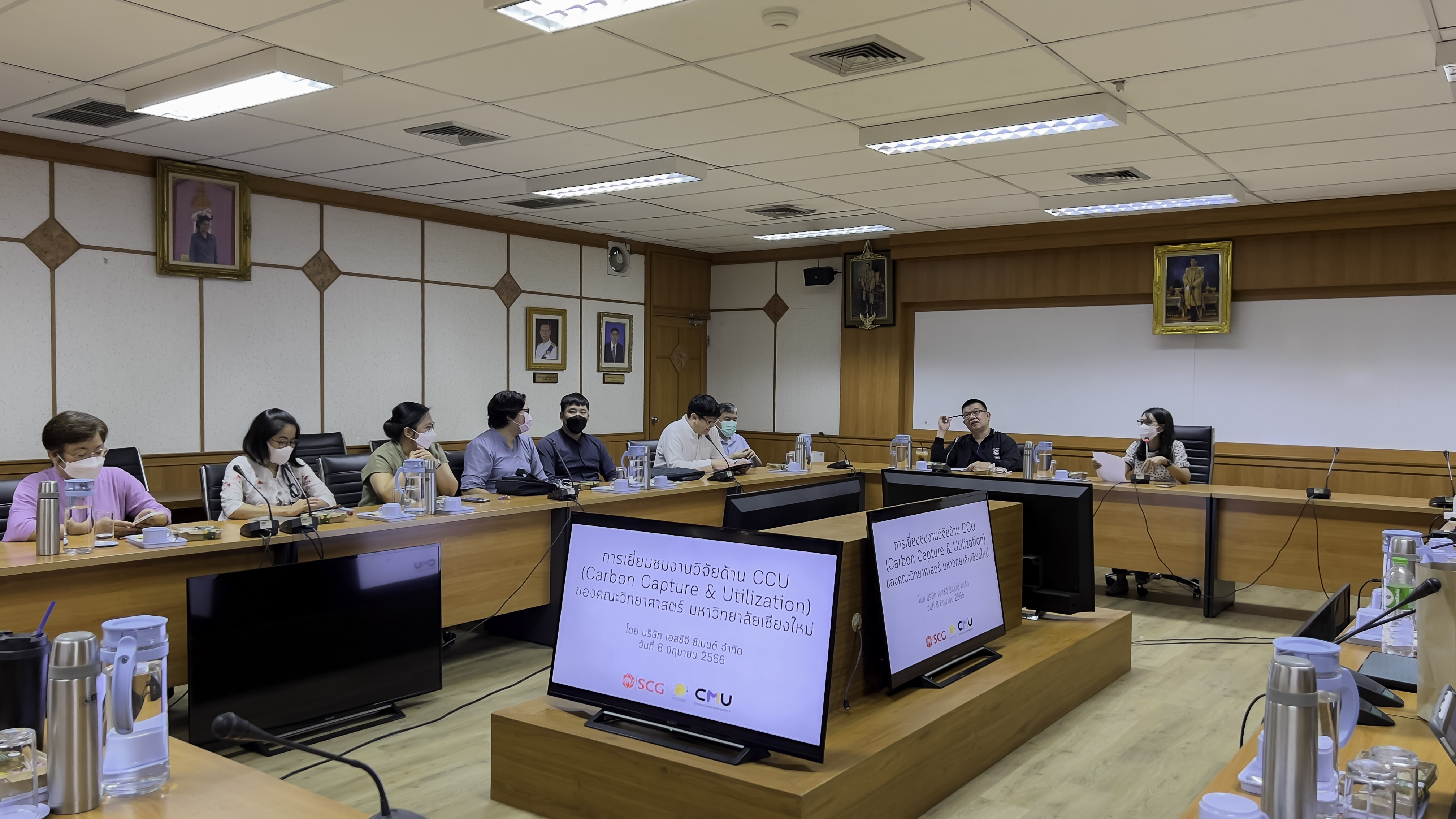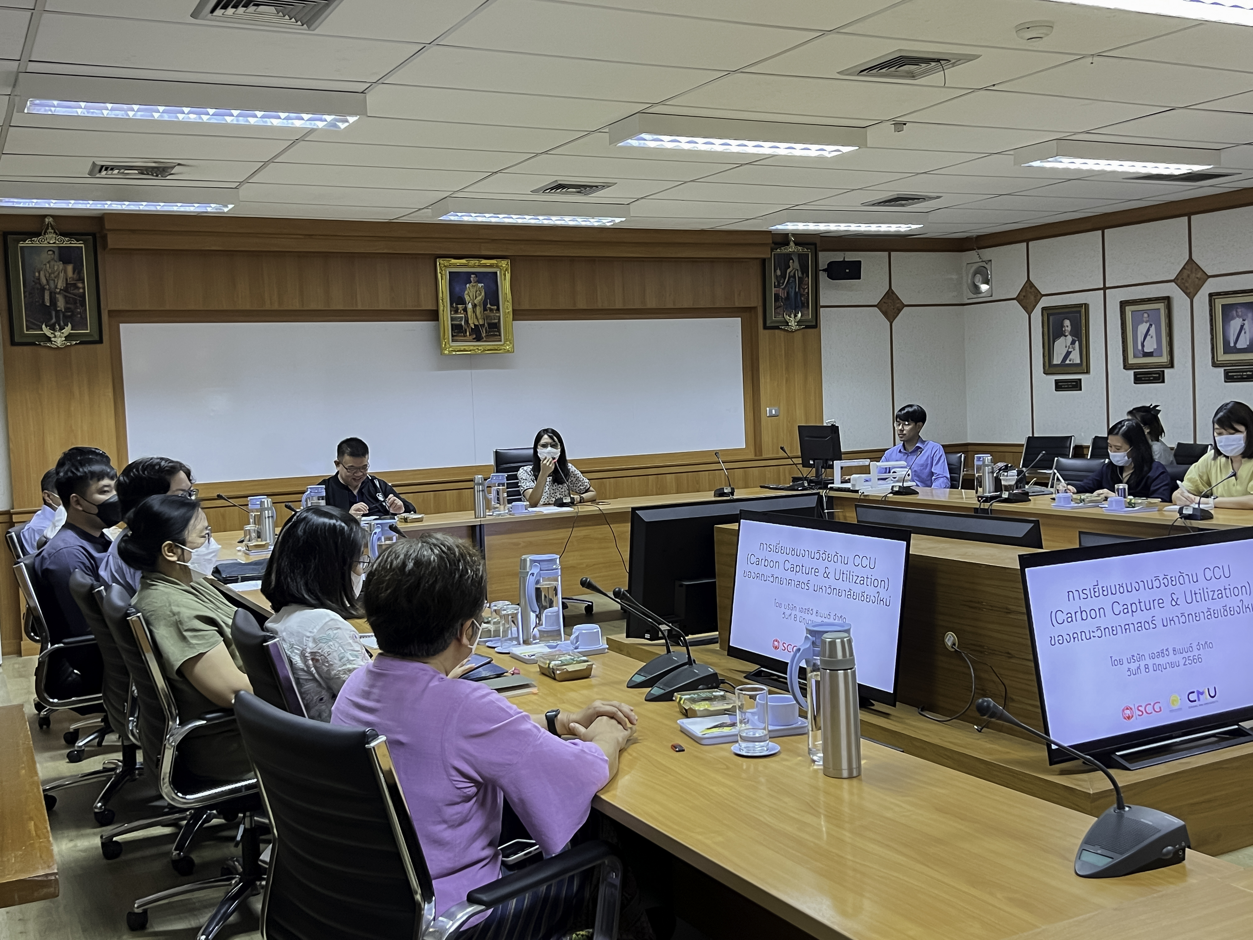 รองศาสตราจารย์ ดร. เกศรินทร์ พิมรักษา รองคณบดีฝ่ายวิจัยและวิเทศสัมพันธ์ พร้อมด้วยคณะผู้บริหาร และนักวิจัยคณะวิทยาศาสตร์ ร่วมต้อนรับคุณสุรชัย วังรัตนชัย และคณะ จากบริษัท เอสซีจี ซิเมนต์ จำกัด ในการหารือหัวข้อวิจัยในประเด็น “Carbon Capture and Utilization” เพื่อเป็นแนวทางในการทำงานวิจัยร่วมกันระหว่างมหาวิทยาลัยและภาคเอกชน เมื่อวันที่ 8 มิถุนายน 2566 ณ ห้องประชุม 2 (บัวเรศคำทอง) คณะวิทยาศาสตร์ มหาวิทยาลัยเชียงใหม่