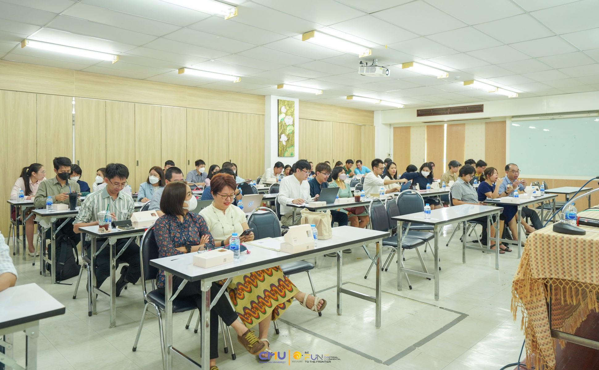 คณะวิทยาศาสตร์จัดการประชุมอาจารย์ที่ปรึกษานักศึกษาปริญญาตรีชั้นปีที่ 1 ปีการศึกษา 2566 โดยได้รับเกียรติจาก ผู้ช่วยศาสตราจารย์ ดร. ภควรรณ พวงสมบัติ รองคณบดีฝ่ายวิชาการ เป็นประธานเปิดกิจกรรม เพื่อเป็นการเตรียมความพร้อมให้แก่อาจารย์ที่ปรึกษาที่จะเป็นผู้ดูแล และให้คำปรึกษาแก่นักศึกษา ให้สอดคล้องกับสังคมในยุคที่มีการเปลี่ยนแปลงไปอย่างรวดเร็ว รวมทั้งเพื่อให้อาจารย์ที่ปรึกษาได้รับทราบเกี่ยวกับขั้นตอนการลงทะเบียน กฎระเบียบ ข้อบังคับและแนวปฏิบัติต่างๆ ที่เกี่ยวข้องและจำเป็น รวมถึงการต่อยอดพัฒนาระบบทีมอาจารย์ที่ปรึกษาให้มีประสิทธิภาพมากยิ่งขึ้น เมื่อวันที่ 12 มิถุนายน 2566 ณ ห้องสัมมนา ชั้น 2 อาคาร 40 ปี คณะวิทยาศาสตร์