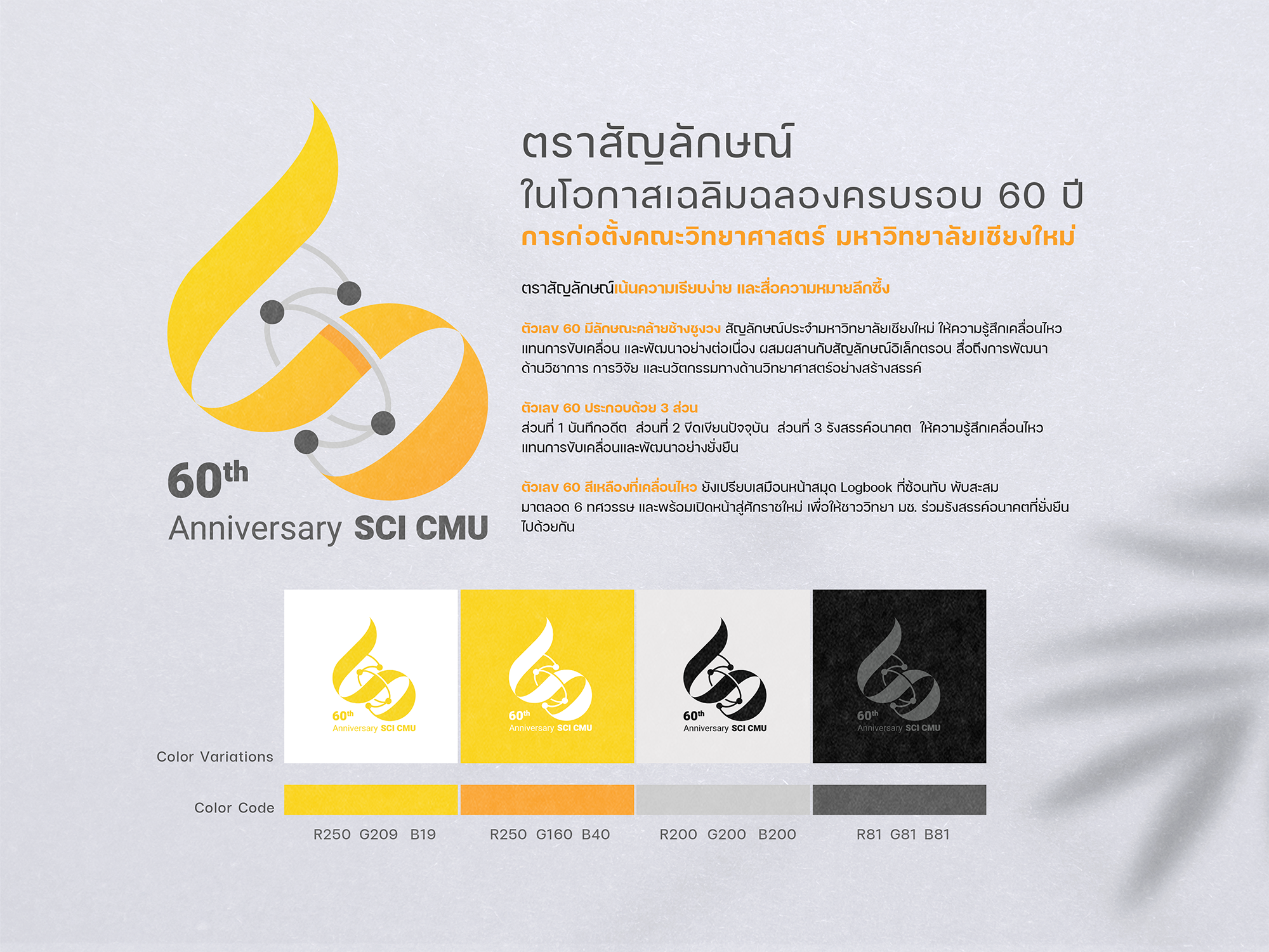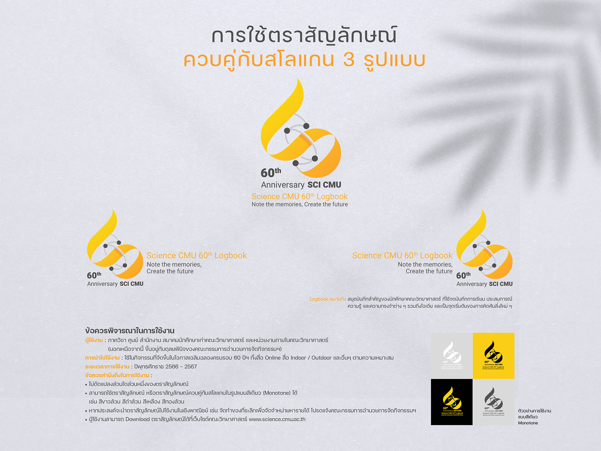ในโอกาสที่คณะวิทยาศาสตร์ มหาวิทยาลัยเชียงใหม่ จะก่อตั้งครบ 60 ปี คณะวิทยาศาสตร์จึงได้กำหนดให้มีตราสัญลักษณ์ (LOGO) ในโอกาสสำคัญนี้ เพื่อใช้ในกิจกรรมการเฉลิมฉลอง ตลอดปี พ.ศ. 2566-2567