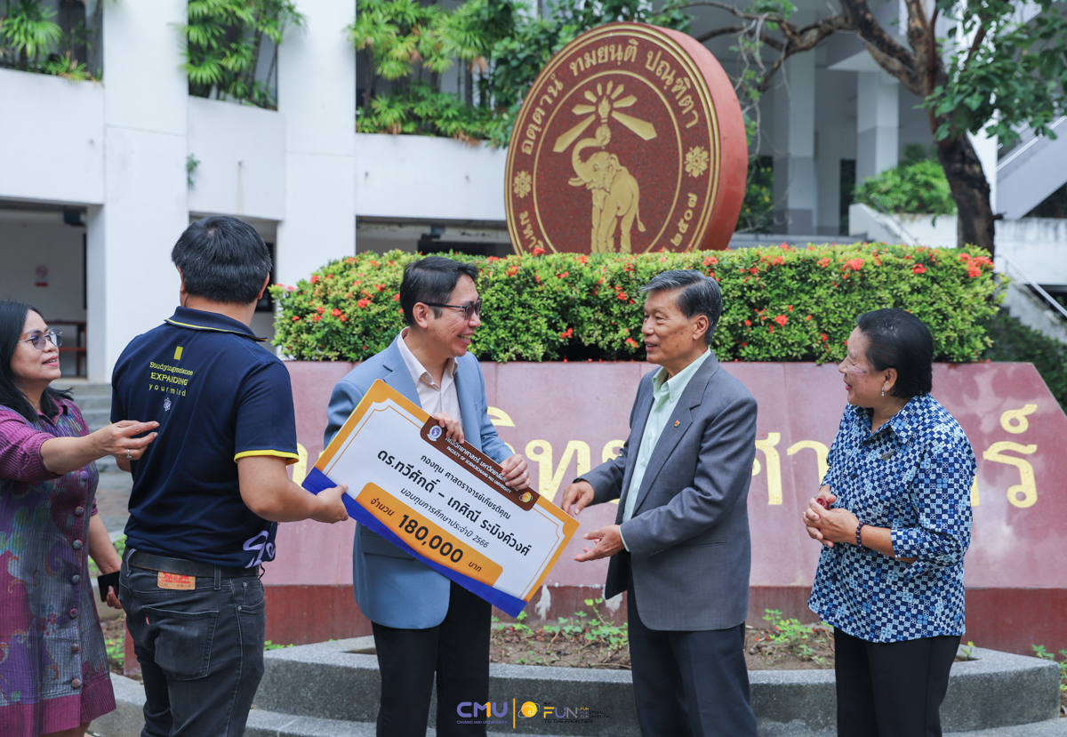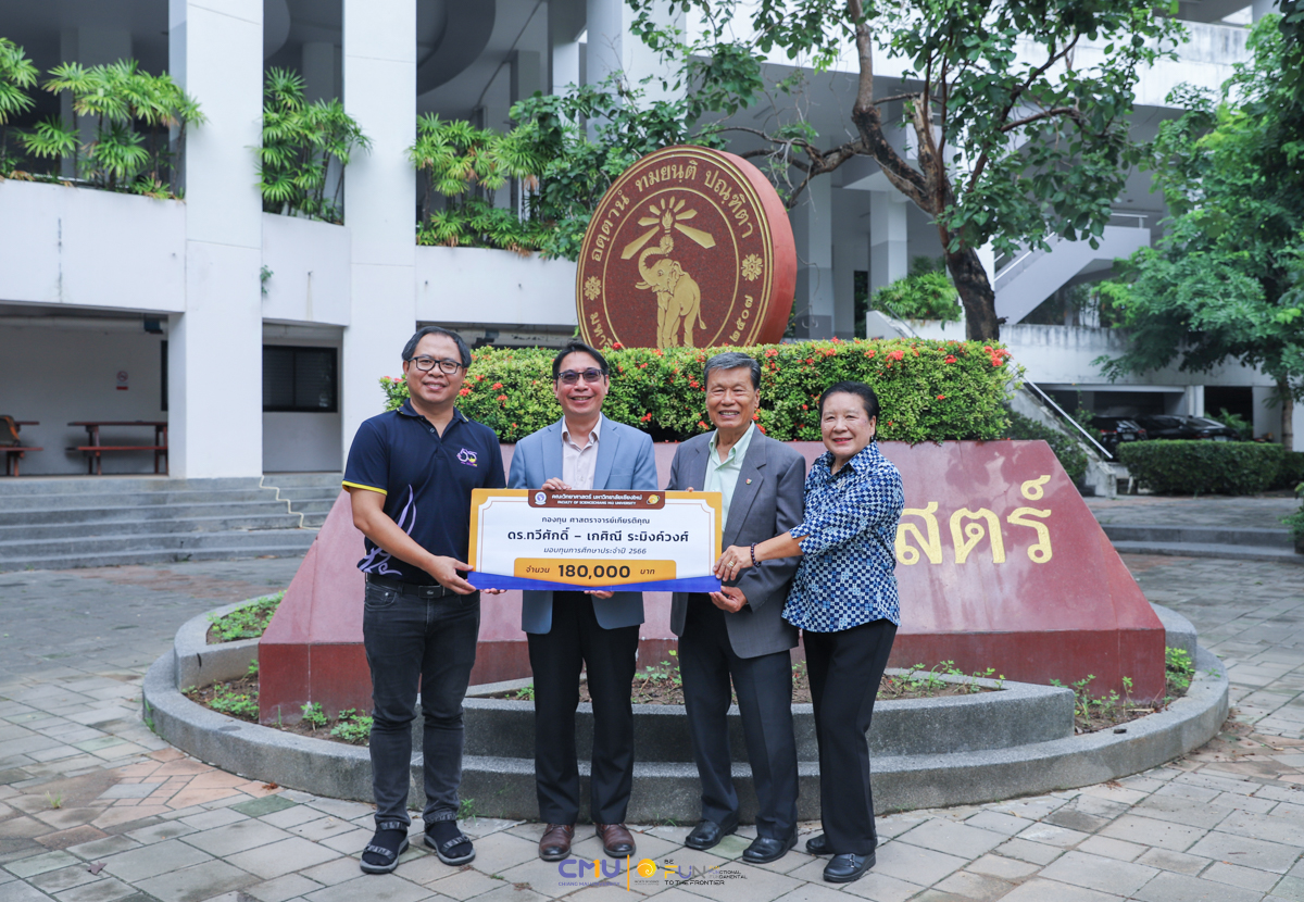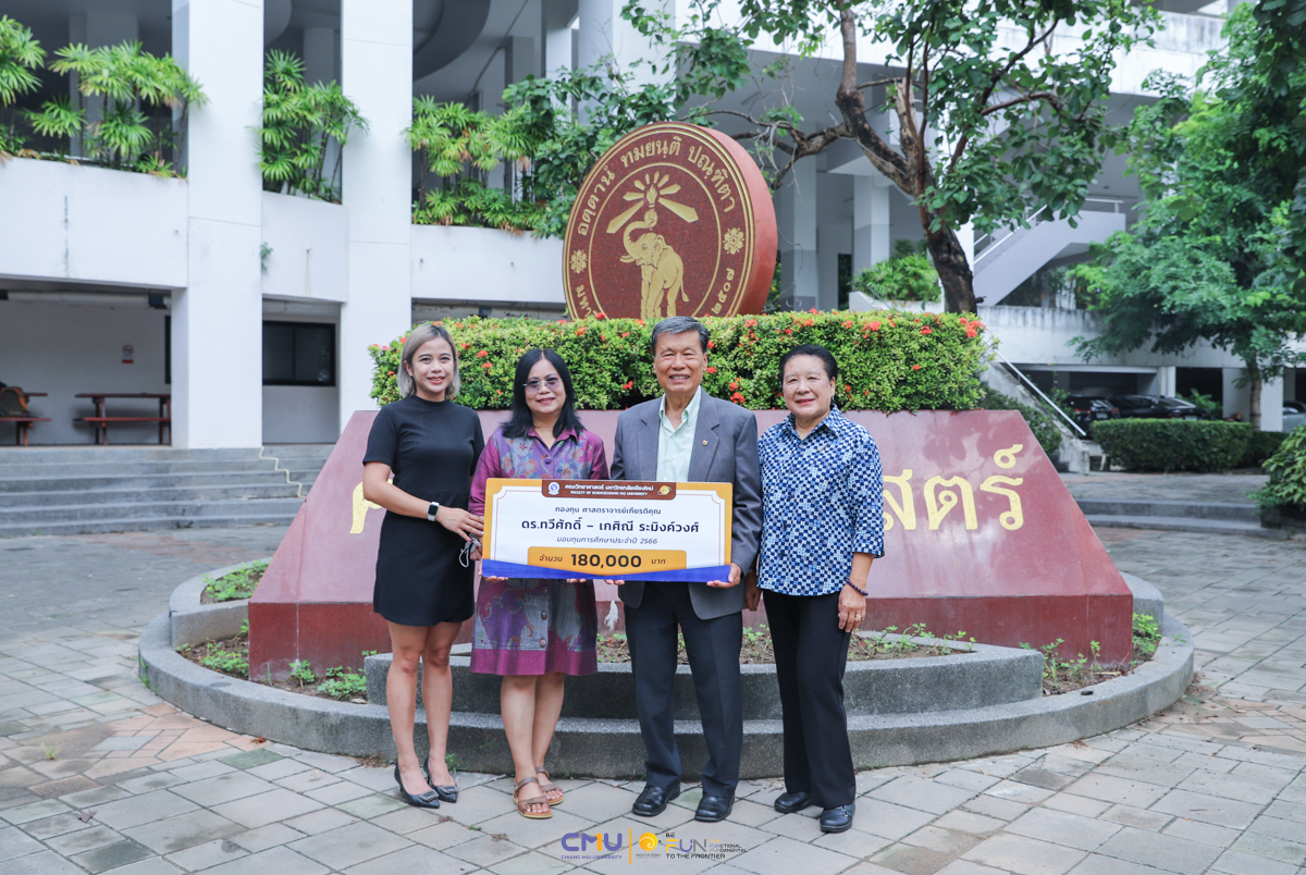ศาสตราจารย์เกียรติคุณ ดร.ทวีศักดิ์ ระมิงค์วงศ์ อดีตคณบดีคณะวิทยาศาสตร์ พร้อมด้วย รองศาสตราจารย์เกศิณี ระมิงค์วงศ์ มอบเงินกองทุน ศาสตราจารย์เกียรติคุณ ดร.ทวีศักดิ์ - เกศินี ระมิงค์วงศ์ เพื่อเป็นทุนการศึกษาแก่นักศึกษาคณะวิทยาศาสตร์ ประจำปี 2566 จำนวน 180,000 บาท โดยมี ศาสตราจารย์ (เชี่ยวชาญพิเศษ) ดร.ธรณินทร์ ไชยเรืองศรี คณบดีคณะวิทยาศาสตร์ พร้อมด้วยผู้บริหาร และบุคลากร ร่วมแสดงความขอบคุณ ในวันที่ 26 มิถุนายน 2566 ณ บริเวณป้ายคณะวิทยาศาสตร์ อาคาร 40 ปี คณะวิทยาศาสตร์
