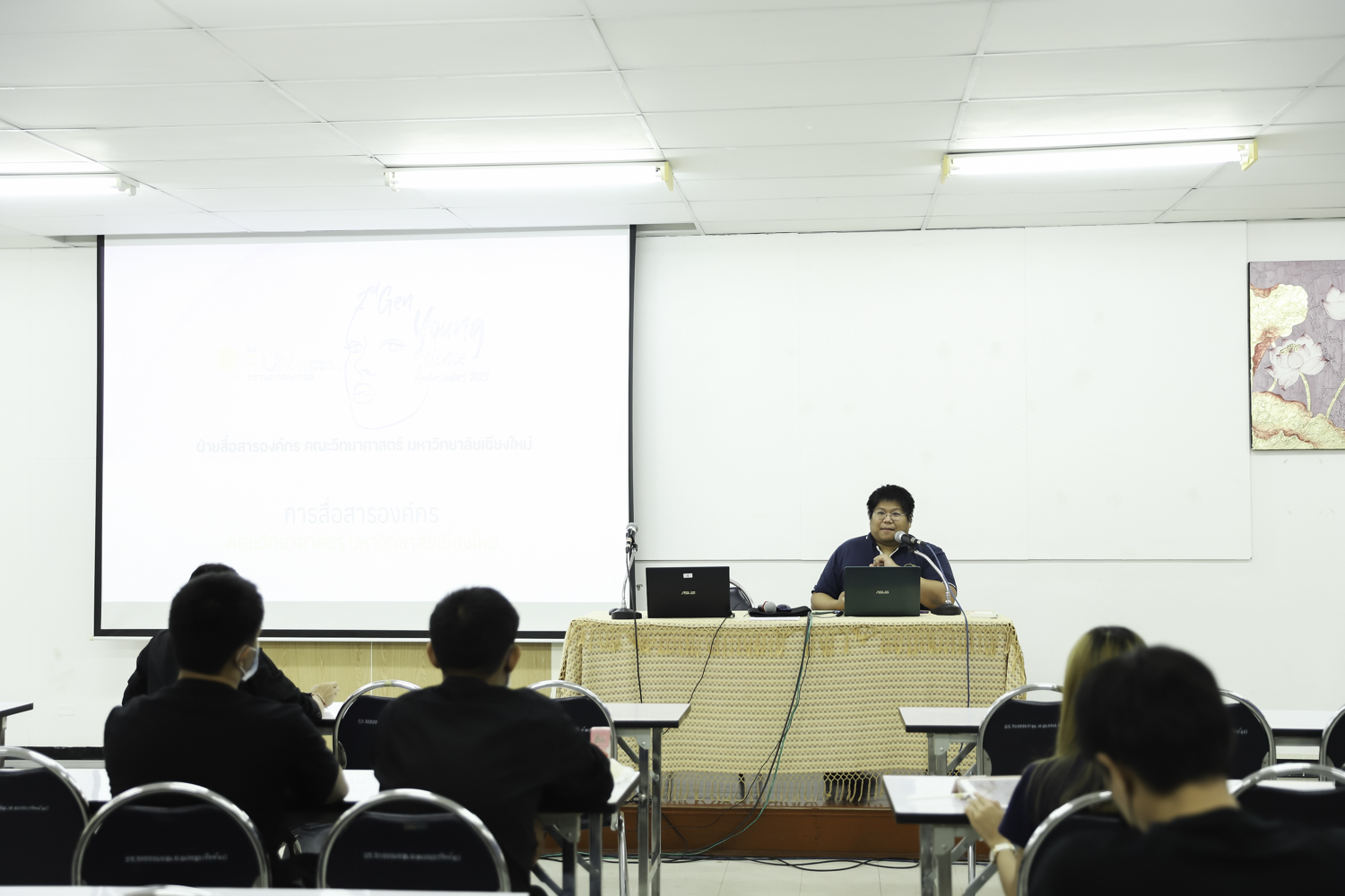 ฝ่ายสื่อสารองค์กร คณะวิทยาศาสตร์ มหาวิทยาลัยเชียงใหม่ นำโดย ผู้ช่วยศาสตราจารย์ ดร.ศุภณัฐ ชัยดี ผู้ช่วยคณบดีฝ่ายสื่อสารองค์กร จัดโครงการ Young Science Ambassadors 2023 (รุ่นที่ 2) นำนักศึกษากว่า 30 คน ที่มีความสนใจในงานด้านการสื่อสาร และมีความคิดริเริ่มสร้างสรรค์ เข้าร่วม Workshop ในหัวข้อต่างๆ ที่น่าสนใจ โดยเฉพาะอย่างยิ่งด้านการสื่อสาร การเป็นพิธีกร และการพัฒนาบุคลิกภาพ โดยวิทยากรจากฝ่ายสื่อสารองค์กร คณะวิทยาศาสตร์ ในวันที่ 28 มิถุนายน 2566 ณ ห้องสัมมนา ชั้น 2 อาคาร 40 ปี คณะวิทยาศาสตร์