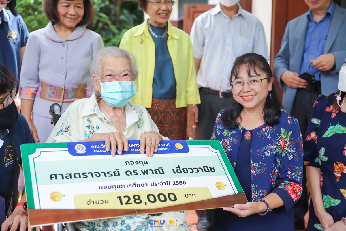 ศาสตราจารย์ ดร.พาณี เชี่ยววานิช อดีตอาจารย์ประจำภาควิชาชีววิทยา คณะวิทยาศาสตร์ มอบเงินจาก กองทุน ศาสตราจารย์ ดร.พาณี เชี่ยววานิช เพื่อเป็นทุนการศึกษาแก่นักศึกษาคณะวิทยาศาสตร์ จำนวน 128,000 บาท โดยมี ศาสตราจารย์ (เชี่ยวชาญพิเศษ) ดร.ธรณินทร์ ไชยเรืองศรี คณบดีคณะวิทยาศาสตร์ พร้อมด้วยผู้บริหาร ผู้เกษียณอายุงาน และบุคลากร เข้ารับมอบเงิน และร่วมแสดงความขอบคุณ ในวันที่ 5 กรกฎาคม 2566
