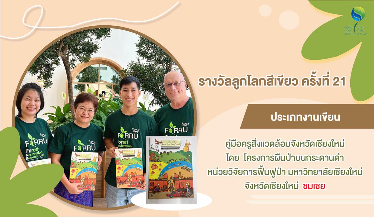 ขอแสดงความยินดีกับหน่วยวิจัยฟื้นฟูป่า (FORRU) ที่ได้รับรางวัลชมเชยประเภทงานเขียน รางวัลลูกโลกสีเขียว ครั้งที่ 21 จากผลงาน "คู่มือครูสิ่งแวดล้อม จังหวัดเชียงใหม่" ในโครงการผืนป่าบนกระดานดำ หน่วยวิจัยการฟื้นฟูป่า มหาวิทยาลัยเชียงใหม่ อ่านต่อ https://www.greenglobeinstitute.com