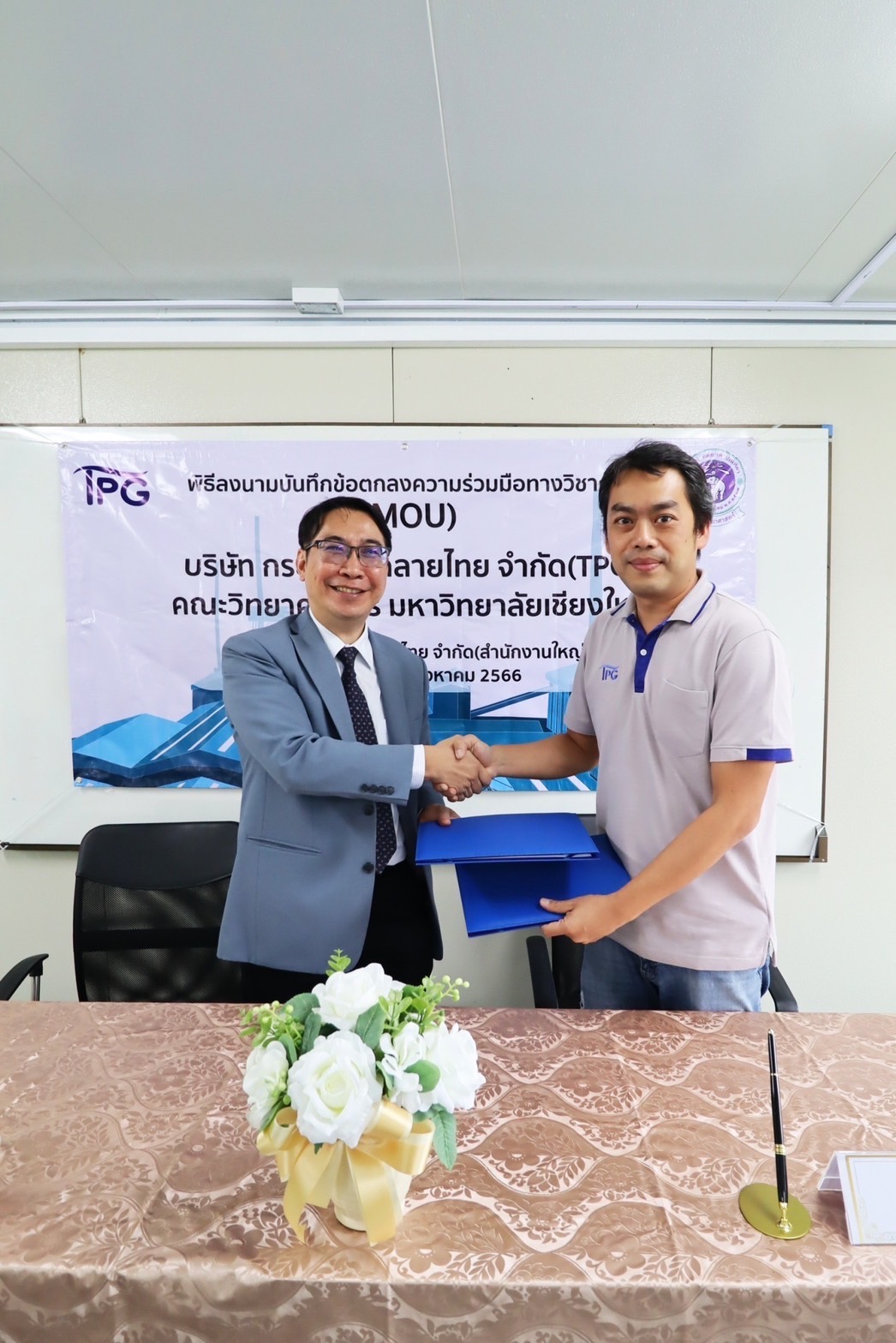 ในโอกาสนี้ คุณวีรยศ จุฬเกตุ ประธานกรรมการบริหาร พร้อมด้วยผู้บริหาร และวิศวกรฝ่ายผลิต TPG ได้ให้การต้อนรับ และร่วมลงนามความร่วมมือกับคณะวิทยาศาสตร์ มหาวิทยาลัยเชียงใหม่ ซึ่งนำโดย ศาสตราจารย์ (เชี่ยวชาญพิเศษ) ดร. ธรณินทร์ ไชยเรืองศรี คณบดีคณะวิทยาศาสตร์ มหาวิทยาลัยเชียงใหม่