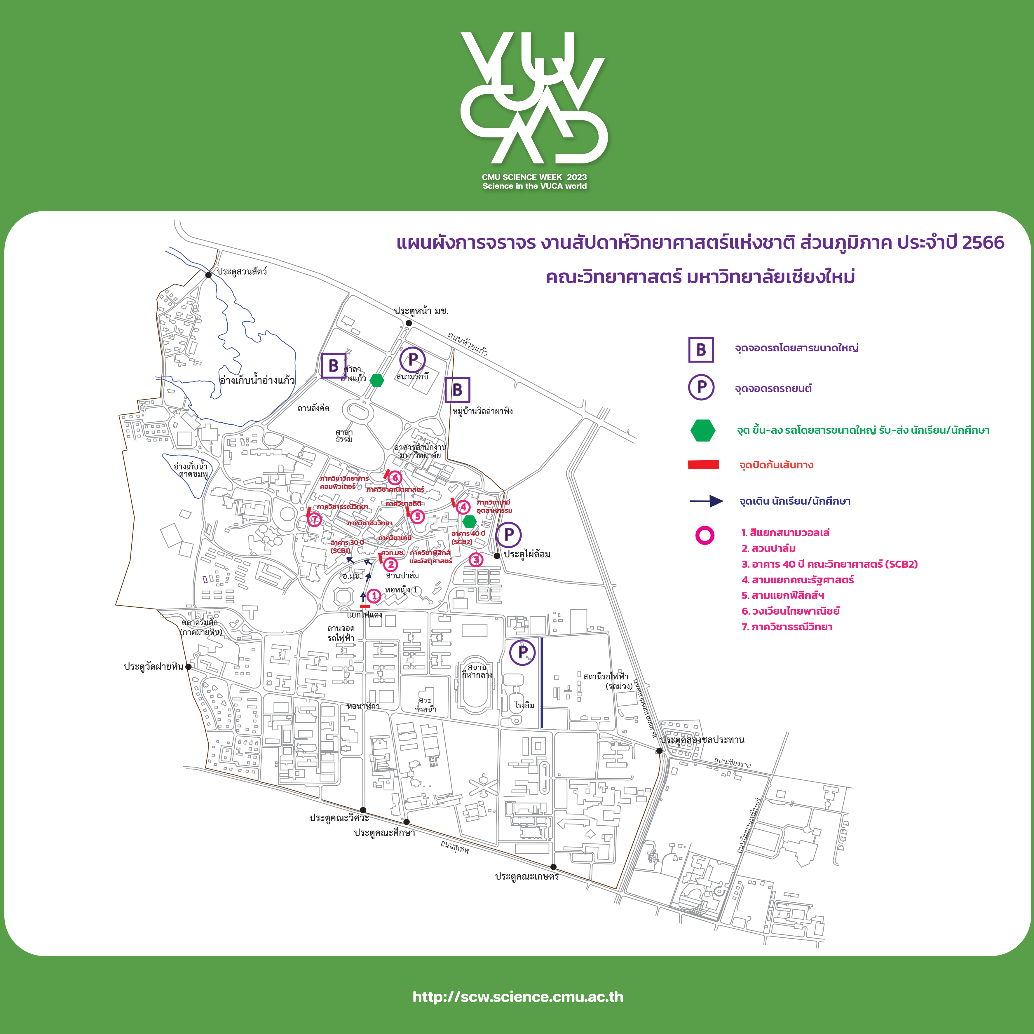 ตรวจสอบแผนผังการจราจร / การปิดถนน เนื่องในงานสัปดาห์วิทยาศาสตร์แห่งชาติ ส่วนภูมิภาค ประจำปี 2566