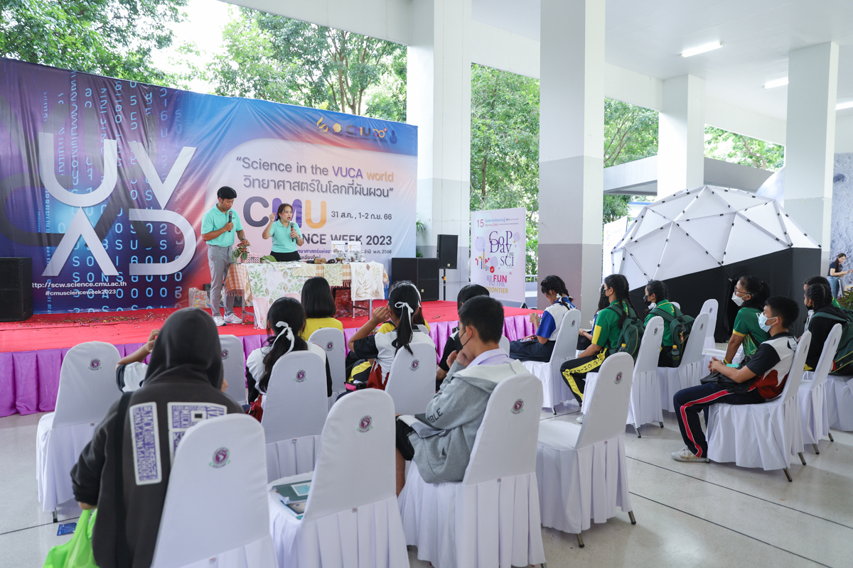 31 สิงหาคม 2566 คณะวิทยาศาสตร์ มหาวิทยาลัยเชียงใหม่ Kick off มหกรรมเปิดโลกวิทยาศาสตร์ครั้งใหญ่ในรอบปี CMU SCIENCE WEEK 2023 งานสัปดาห์วิทยาศาสตร์แห่งชาติ ส่วนภูมิภาค ประจำปี 2566 โดยมีพี่ ๆ นักศึกษา อาจารย์ และบุคลากรคณะวิทยาศาสตร์ รวมทั้งหน่วยงานทั้งภาครัฐและเอกชน ที่ขนทัพความสนุกแบบจัดเต็มมาต้อนรับน้องๆ เยาวชนจากทั่วภาคเหนือ เพื่อให้ทุกคนได้ค้นหาแรงบันดาลใจในการเรียนรู้แบบไม่สิ้นสุด