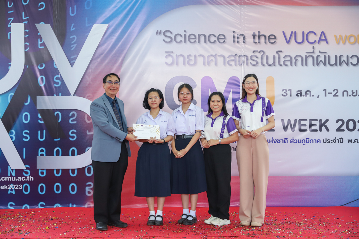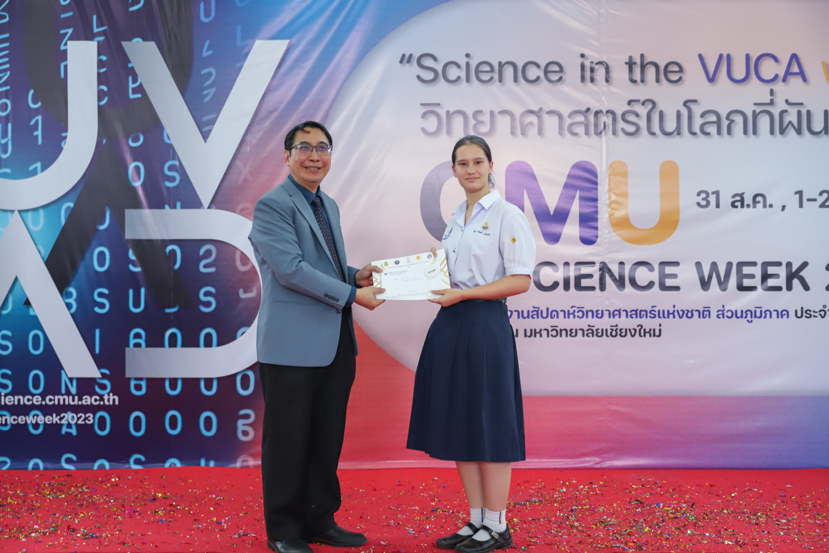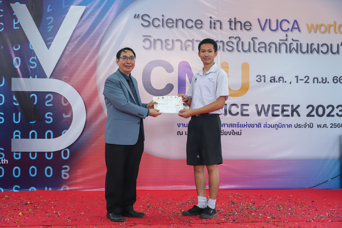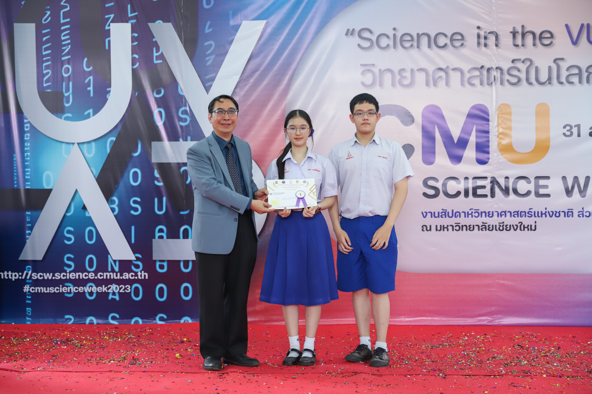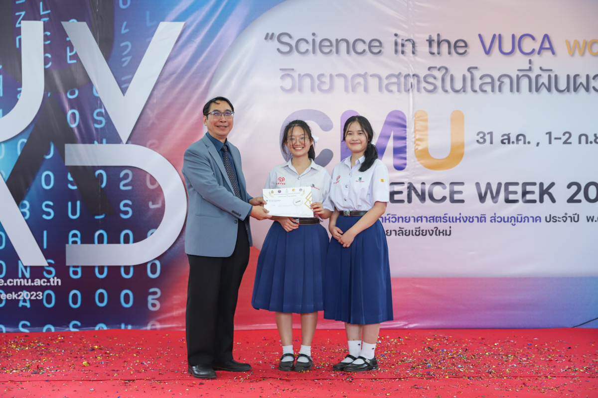 บรรยากาศการมอบรางวัลการแข่งขันวาดภาพจิตนาการทางวิทยาศาตร์ วันที่ 31 สิงหาคม 2566 ในงาน CMU SCIENCE WEEK 2023 งานสัปดาห์วิทยาศาสตร์แห่งชาติ ส่วนภูมิภาค ประจำปี 2566 ที่คณะวิทยาศาสตร์ มหาวิทยาลัยเชียงใหม่