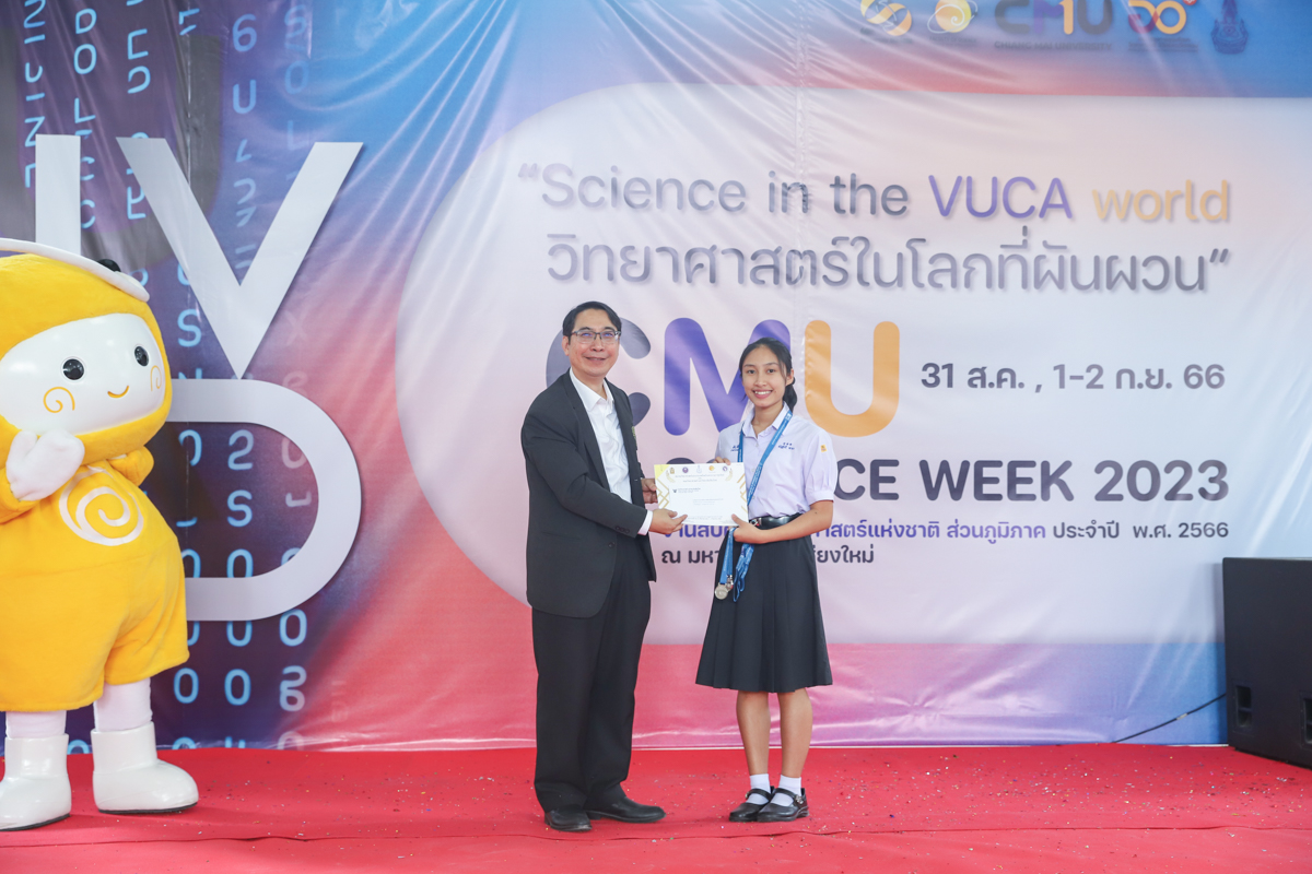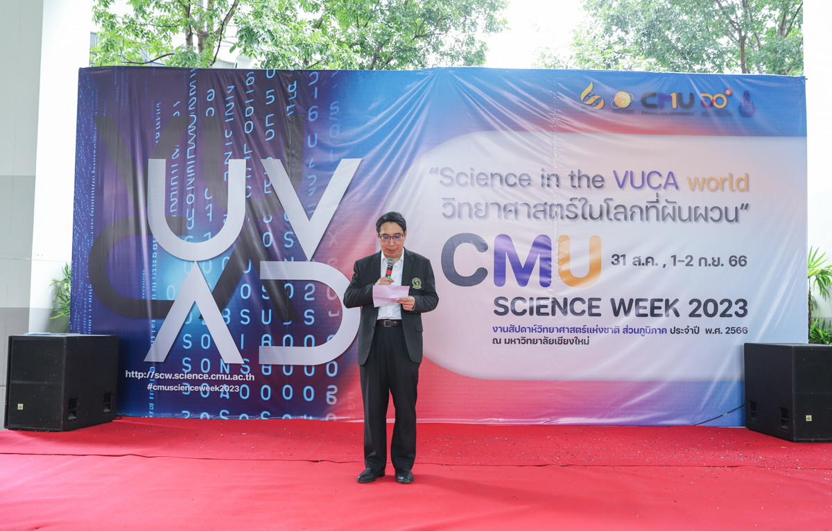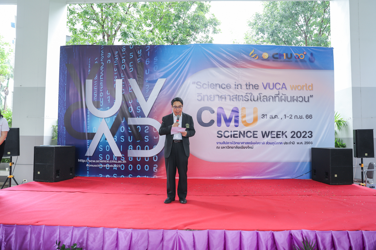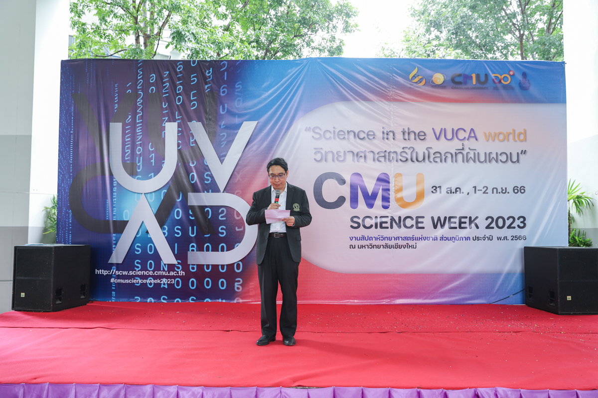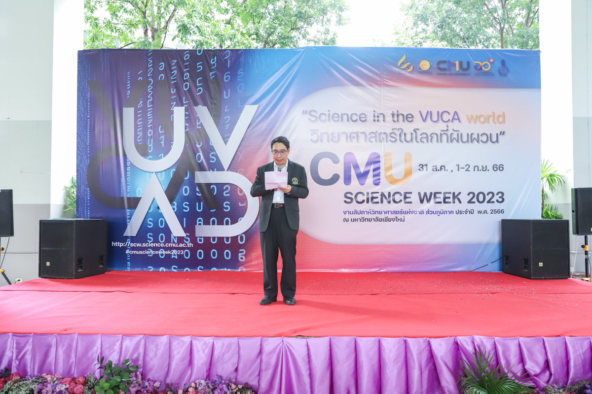 วันที่ 2 กันยายน ณ ลานกิจกรรม ชั้น 1 อาคาร 40 ปี คณะวิทยาศาสตร์ ศาสตราจารย์ (เชี่ยวชาญพิเศษ) ดร.ธรณินทร์ ไชยเรืองศรี คณบดีคณะวิทยาศาสตร์ เป็นประธานในพิธีปิดงาน CMU SCIENCE WEEK 2023 งานสัปดาห์วิทยาศาสตร์แห่งชาติ ส่วนภูมิภาค ประจำปี 2566 ภายใต้แนวคิด “วิทยาศาสตร์ในวันที่โลกผันผวน : Science in the VUCA World” และกล่าวแสดงความขอบคุณหน่วยงานทั้งภาครัฐและเอกชนที่ให้การสนับสนุนการจัดงาน ตลอดจนคณะครู นักเรียน นักศึกษา และประชาชนทั่วไปที่ให้ความสนใจเข้าร่วมกิจกรรม ตลอด 3 วัน ของการจัดงาน รวมกว่า 1 หมื่น 8 พันคน ตั้งแต่วันที่ 31 สิงหาคม และ 1-2 กันยายน 2566