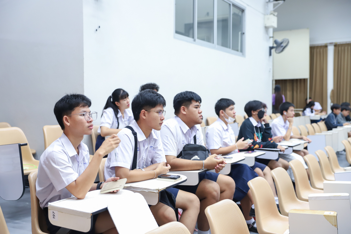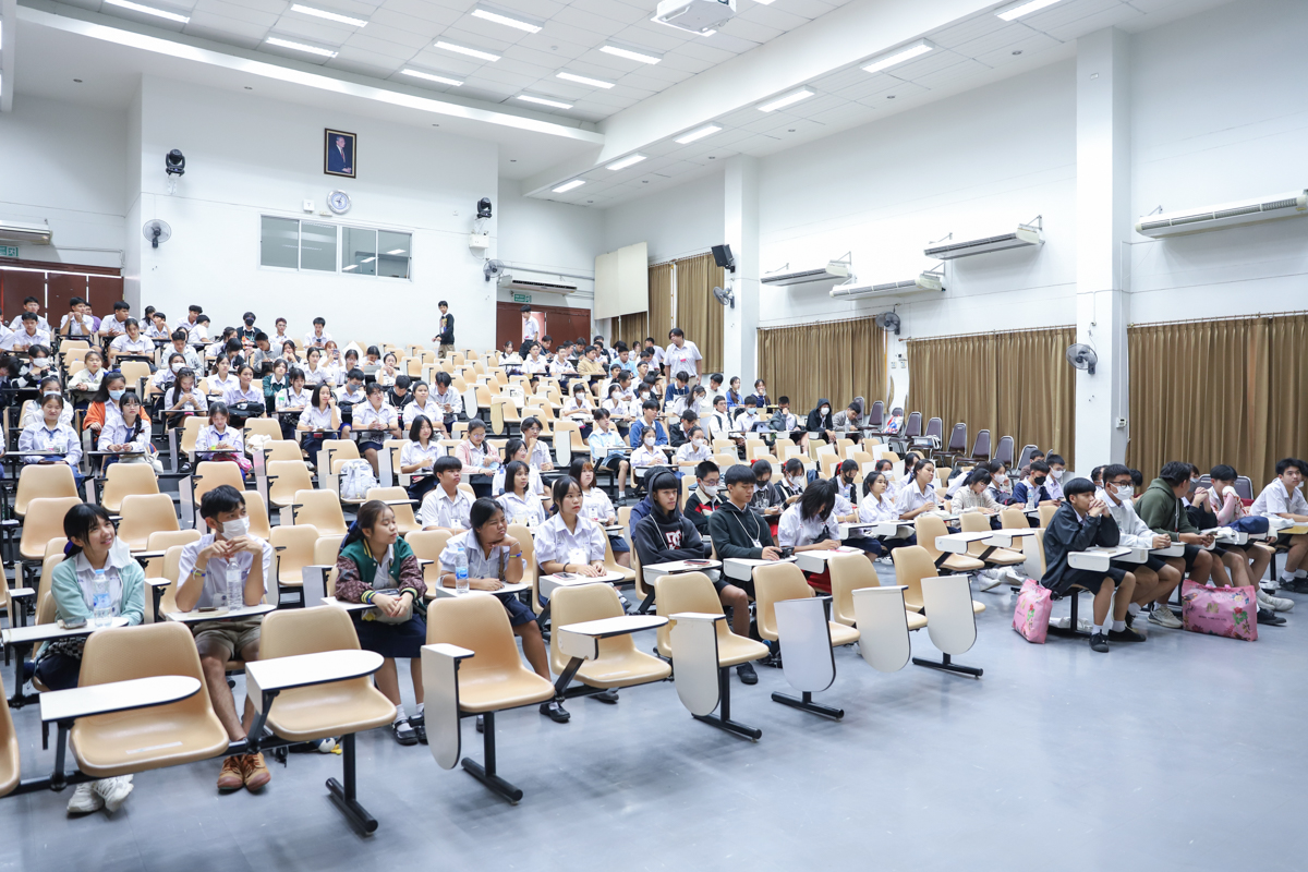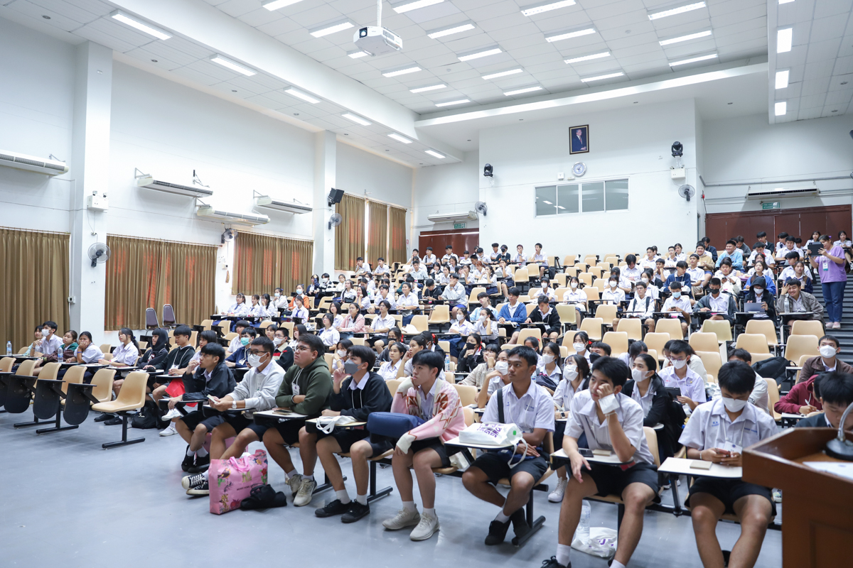 วันที่ 18 ตุลาคม 2566 ผศ.ดร.ศุภณัฐ ชัยดี ผู้ช่วยคณบดีฝ่ายสื่อสารองค์กร คณะวิทยาศาสตร์ กล่าวต้อนรับและบรรยายแนะนำหลักสูตร และภาพรวมการเรียนการสอนของคณะวิทยาศาสตร์ ให้แก่นักเรียนระดับมัธยมศึกษาตอนปลาย จากโรงเรียนกวดวิชา Strong Academy ที่มาเยี่ยมชมและศึกษาดูงานด้านการเรียนการสอนของคณะฯ เพื่อให้นักเรียนมีข้อมูลประกอบการตัดสินใจศึกษาต่อระดับอุมดมศึกษา ในโอกาสนี้ อ.ดร.สุธาสินี โทวุฒิกุล จากภาควิชาวิทยาการคอมพิวเตอร์ ร่วมบรรยายแนะนำสาขาวิชาด้วย ณ ห้องบรรยาย SCB2100 อาคาร 40 ปี คณะวิทยาศาสตร์