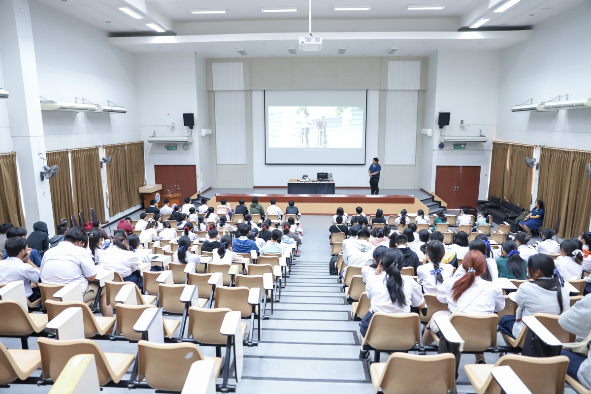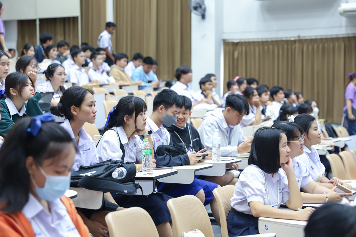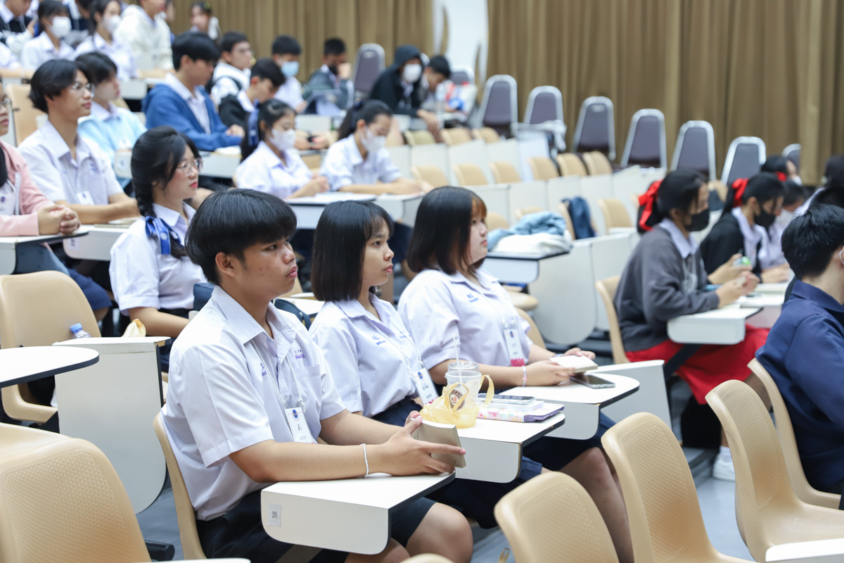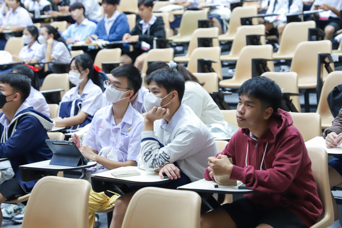 วันที่ 18 ตุลาคม 2566 ผศ.ดร.ศุภณัฐ ชัยดี ผู้ช่วยคณบดีฝ่ายสื่อสารองค์กร คณะวิทยาศาสตร์ กล่าวต้อนรับและบรรยายแนะนำหลักสูตร และภาพรวมการเรียนการสอนของคณะวิทยาศาสตร์ ให้แก่นักเรียนระดับมัธยมศึกษาตอนปลาย จากโรงเรียนกวดวิชา Strong Academy ที่มาเยี่ยมชมและศึกษาดูงานด้านการเรียนการสอนของคณะฯ เพื่อให้นักเรียนมีข้อมูลประกอบการตัดสินใจศึกษาต่อระดับอุมดมศึกษา ในโอกาสนี้ อ.ดร.สุธาสินี โทวุฒิกุล จากภาควิชาวิทยาการคอมพิวเตอร์ ร่วมบรรยายแนะนำสาขาวิชาด้วย ณ ห้องบรรยาย SCB2100 อาคาร 40 ปี คณะวิทยาศาสตร์