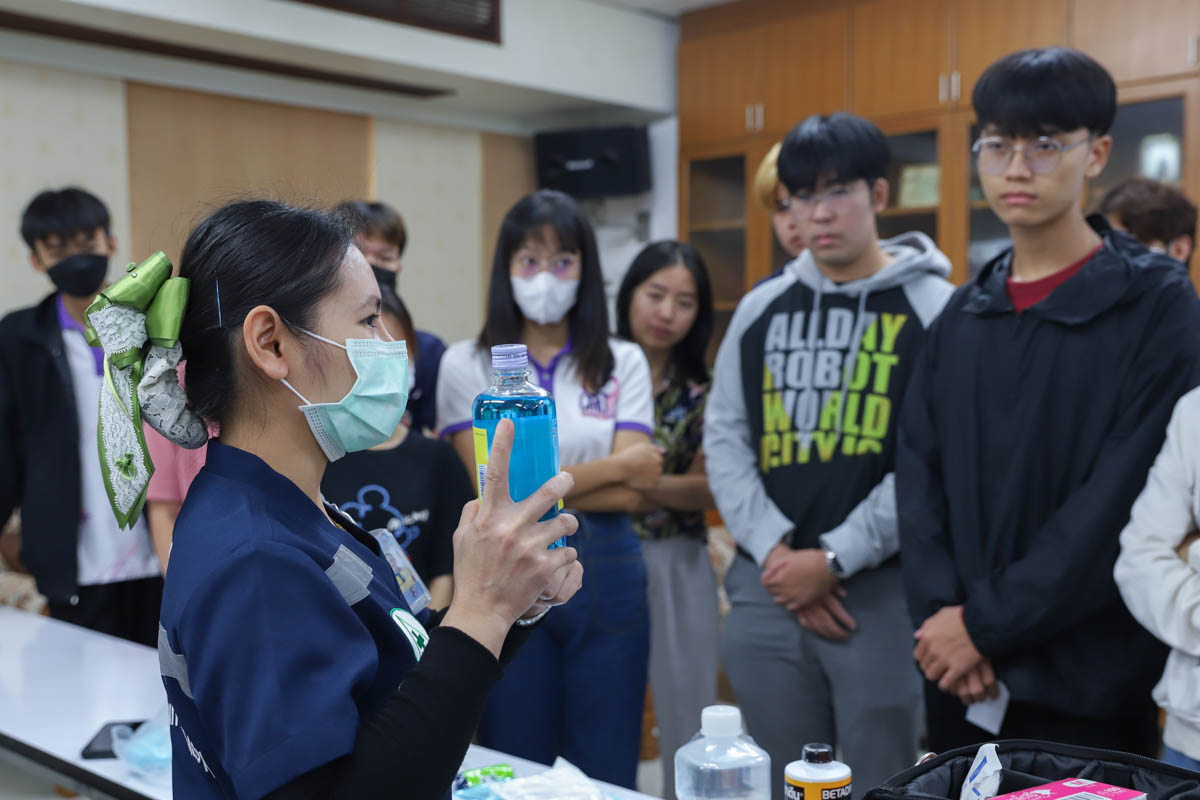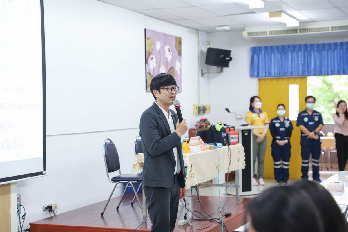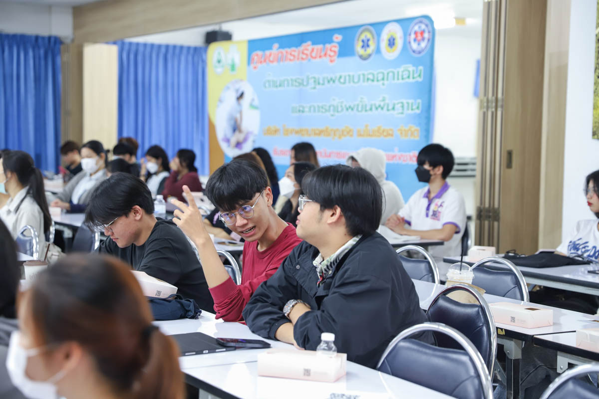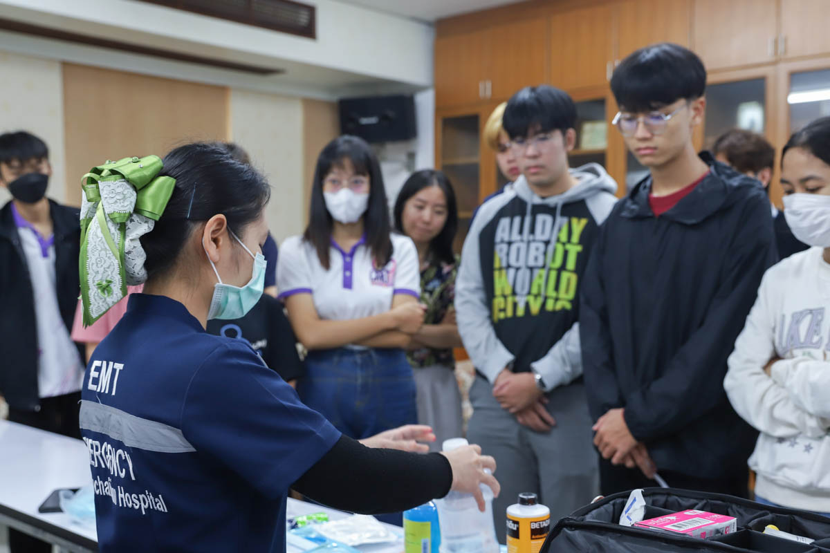 หน่วยพัฒนาคุณภาพนักศึกษาและศิษย์เก่าสัมพันธ์ คณะวิทยาศาสตร์ จัดอบรมเชิงปฏิบัติการ เรื่อง การเสริมสร้างความรู้เรื่องการปฐมพยาบาลเบื้องต้น ประจำปีการศึกษา 2566 สำหรับนักศึกษาอาสามัคร สโมสรนักศึกษาคณะวิทยาศาสตร์ และคณะกรรมการที่ปรึกษาฝ่ายพัฒนาคุณภาพนักศึกษา เพื่อให้มีความรู้ความเข้าใจและมีทักษะในการปฐมพยาบาลเบื้องต้นเมื่อเกิดเหตุฉุกเฉินต่างๆ นำโดยวิทยากรจากโรงพยาลหริภุญชัย ราม จ.ลำพูน ในวันที่ 31 ตุลาคม 2566 ณ ห้องสัมมนา ชั้น 2 อาคาร 40 ปี คณะวิทยาศาสตร์