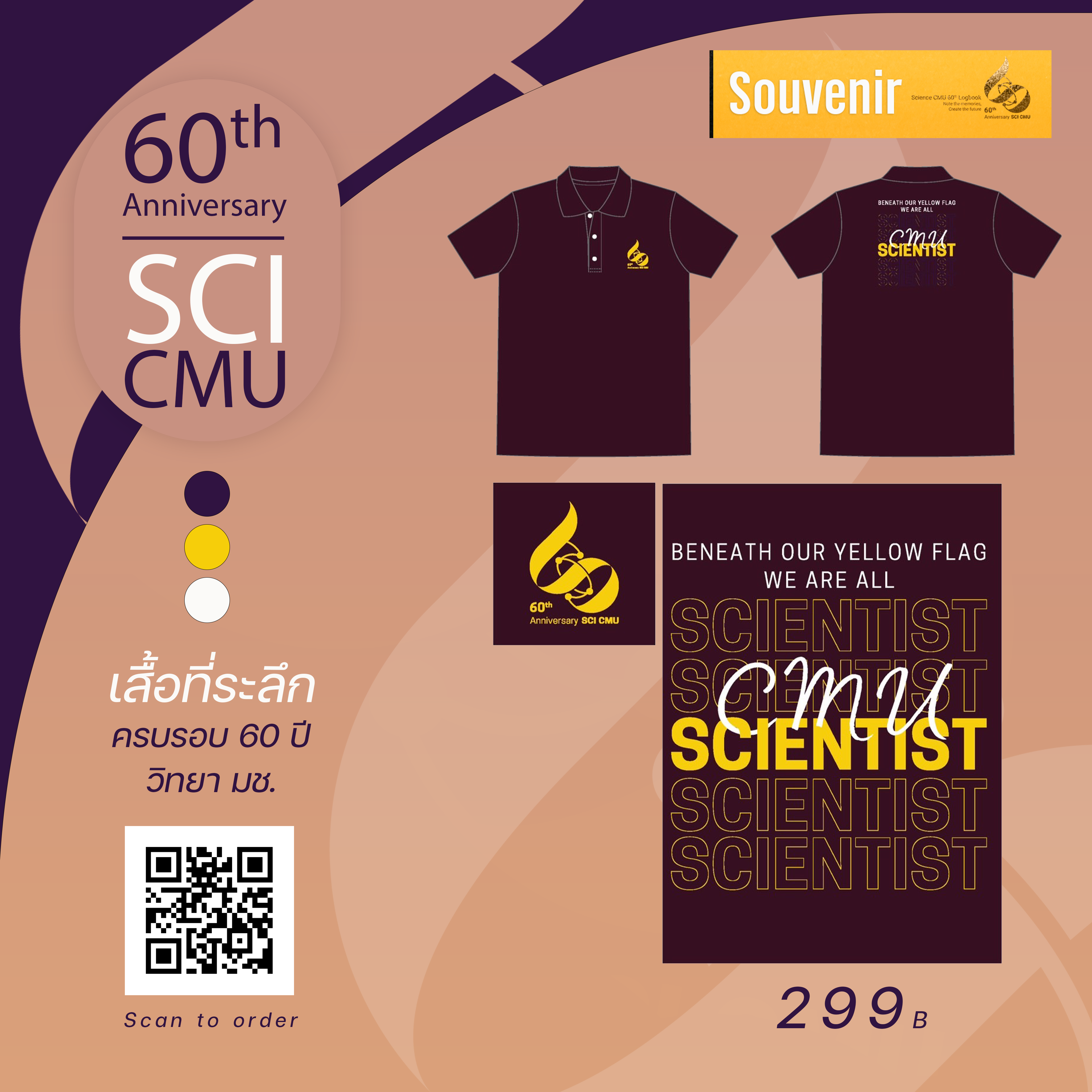 ในโอกาสครบรอบ 60 คณะวิทยาศาสตร์ มหาวิทยาลัยเชียงใหม่ ขอเชิญชวนศิษย์เก่า นักศึกษา บุคลากรคณะวิทยาศาสตร์ และผู้สนใจ สั่งซื้อเสื้อที่ระลึกครบรอบ 60 ปีฯ เพื่อร่วมเป็นส่วนหนึ่งของความภาคภูมิใจ และก้าวเข้าสู่ปีที่ 60 ของคณะวิทยาศาสตร์ มช. ไปด้วยกัน