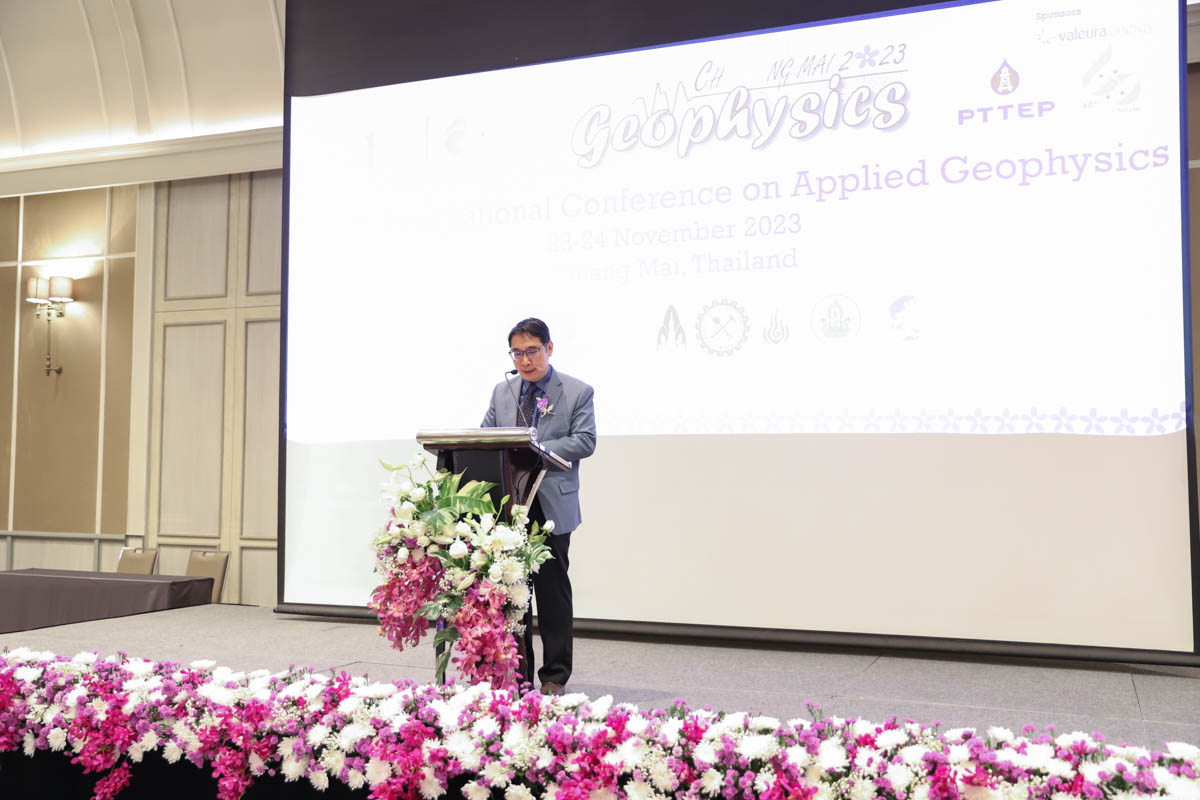 THE 9TH INTERNATIONAL CONFERENCE ON APPLIED GEOPHYSICS ในวันที่ 23 พฤศจิกายน 2566 ณ U Nimman Chiang Mai Hotel โดยมีศาสตราจารย์ (เชี่ยวชาญพิเศษ) ดร.ธรณินทร์ ไชยเรืองศรี คณบดีคณะวิทยาศาสตร์ กล่าวต้อนรับผู้เข้าร่วมงาน และรองศาสตราจารย์ ดร.พิษณุ วงศ์พรชัย ภาควิชาธรณีวิทยา ประธานการจัดงาน กล่าวรายงานความเป็นมาของการจัดงาน