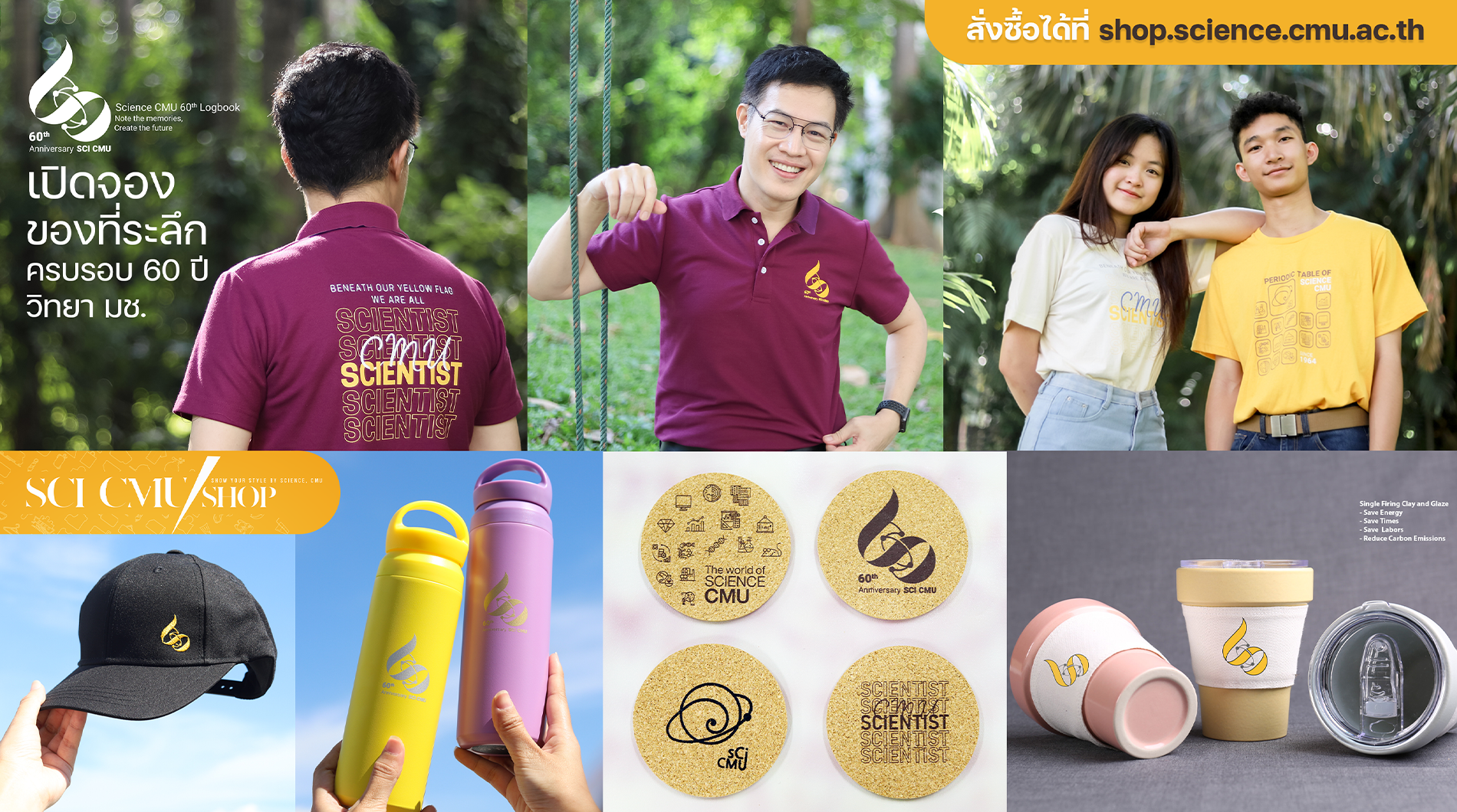 ในโอกาสครบรอบ 60 คณะวิทยาศาสตร์ มหาวิทยาลัยเชียงใหม่ ขอเชิญชวนศิษย์เก่า นักศึกษา บุคลากรคณะวิทยาศาสตร์ และผู้สนใจ สั่งซื้อของที่ระลึกครบรอบ 60 ปีฯ เพื่อร่วมเป็นส่วนหนึ่งของความภาคภูมิใจ และก้าวเข้าสู่ปีที่ 60 ของคณะวิทยาศาสตร์ มช. ไปด้วยกัน