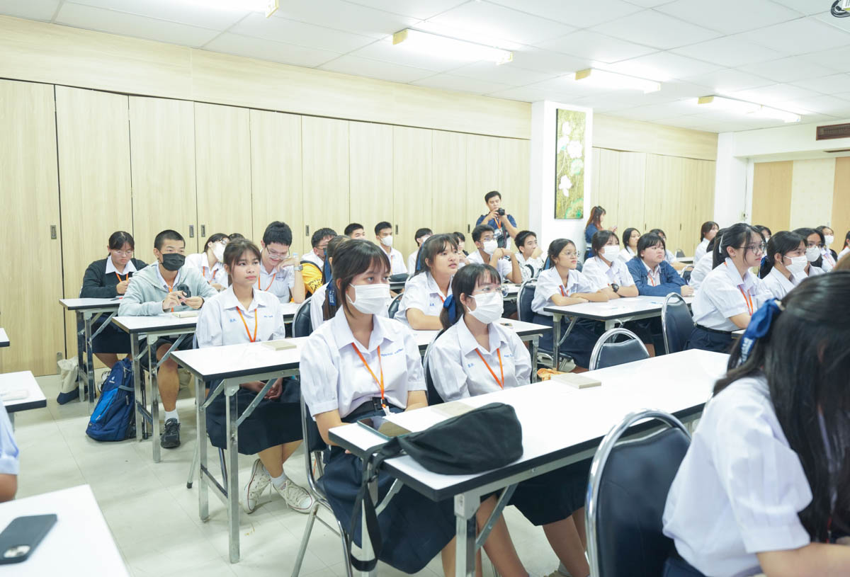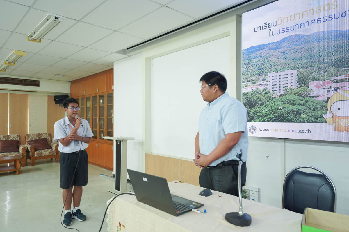 ผู้ช่วยศาสตราจารย์ ดร.ศุภณัฐ ชัยดี ผู้ช่วยคณบดีฝ่ายสื่อสารองค์กร คณะวิทยาศาสตร์ กล่าวต้อนรับ พร้อมกับบรรยายแนะนำหลักสูตร และภาพรวมการเรียนการสอนของคณะวิทยาศาสตร์ ให้แก่นักเรียนระดับมัธยมศึกษาตอนปลาย จากโรงเรียนอุดมดรุณี จังหวัดสุโขทัย ที่มาเยี่ยมชม และศึกษาดูงานด้านการเรียนการสอนของคณะฯ ณ ห้องสัมมนา ชั้น 2 อาคาร 40 ปี คณะวิทยาศาสตร์ เมื่อวันที่ 8 ธันวาคม 2566 เพื่อให้นักเรียนมีข้อมูลประกอบการตัดสินใจศึกษาต่อระดับอุมดมศึกษา ทั้งนี้ คณะฯ ยังได้เปิดโอกาสให้นักเรียนเข้าเยี่ยมชมการเรียนการสอน ณ ภาควิชาวิทยาการคอมพิวเตอร์ และภาควิชาธรณีวิทยา เพื่อให้นักเรียนได้รับประสบการณ์การเรียนในห้องเรียนจริง