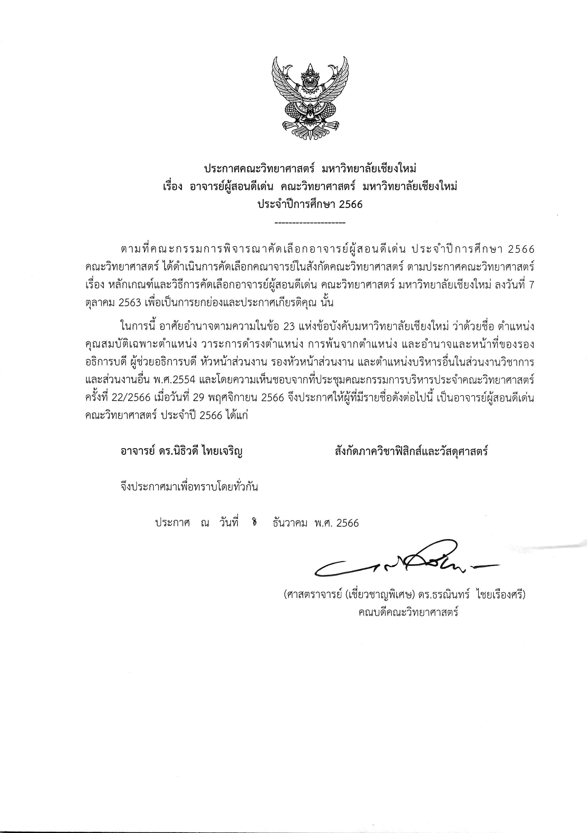 คณะวิทยาศาสตร์ขอแสดงความยินดีกับอาจารย์ที่ได้รับคัดเลือกเป็นอาจารย์ผู้สอนดีเด่น คณะวิทยาศาสตร์ ประจำปีการศึกษา 2566
