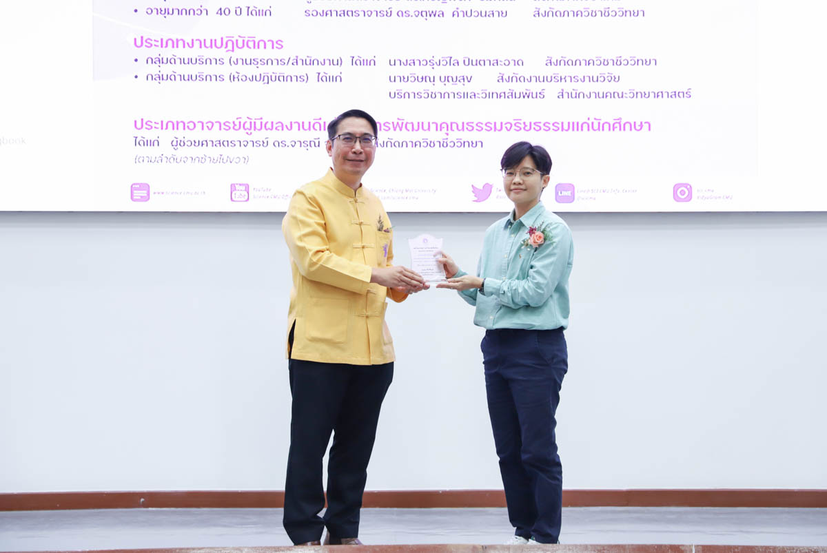 นอกจากนี้ ยังมีการแนะนำผู้บริหารและบุคลากรใหม่ และการมอบโล่เชิดชูเกียรติแก่บุคลากรดีเด่น อาจารย์ผู้สอนดีเด่น และนักวิจัยที่มีผลงานวิจัยดีเด่น รวมทั้งการมอบช่อดอกไม้แสดงความยินดีกับบุคลากรผู้สร้างชื่อเสียงแก่คณะวิทยาศาสตร์และมหาวิทยาลัยเชียงใหม่ ในรอบปีที่ผ่านมา จากนั้นในช่วงบ่ายมีการจัดงานส่งท้ายปีเก่าต้อนรับปีใหม่ 2567 เพื่อเป็นการสร้างขวัญและกำลังใจแก่บุคลากรคณะวิทยาศาสตร์ที่ร่วมกันทำงานอย่างเต็มที่ตลอดปีที่ผ่านมา โดยมีคณาจารย์และบุคลากรจากทั้งสำนักงานคณะฯ ภาควิชา และศูนย์ เข้าร่วมงานอย่างคับคั่ง