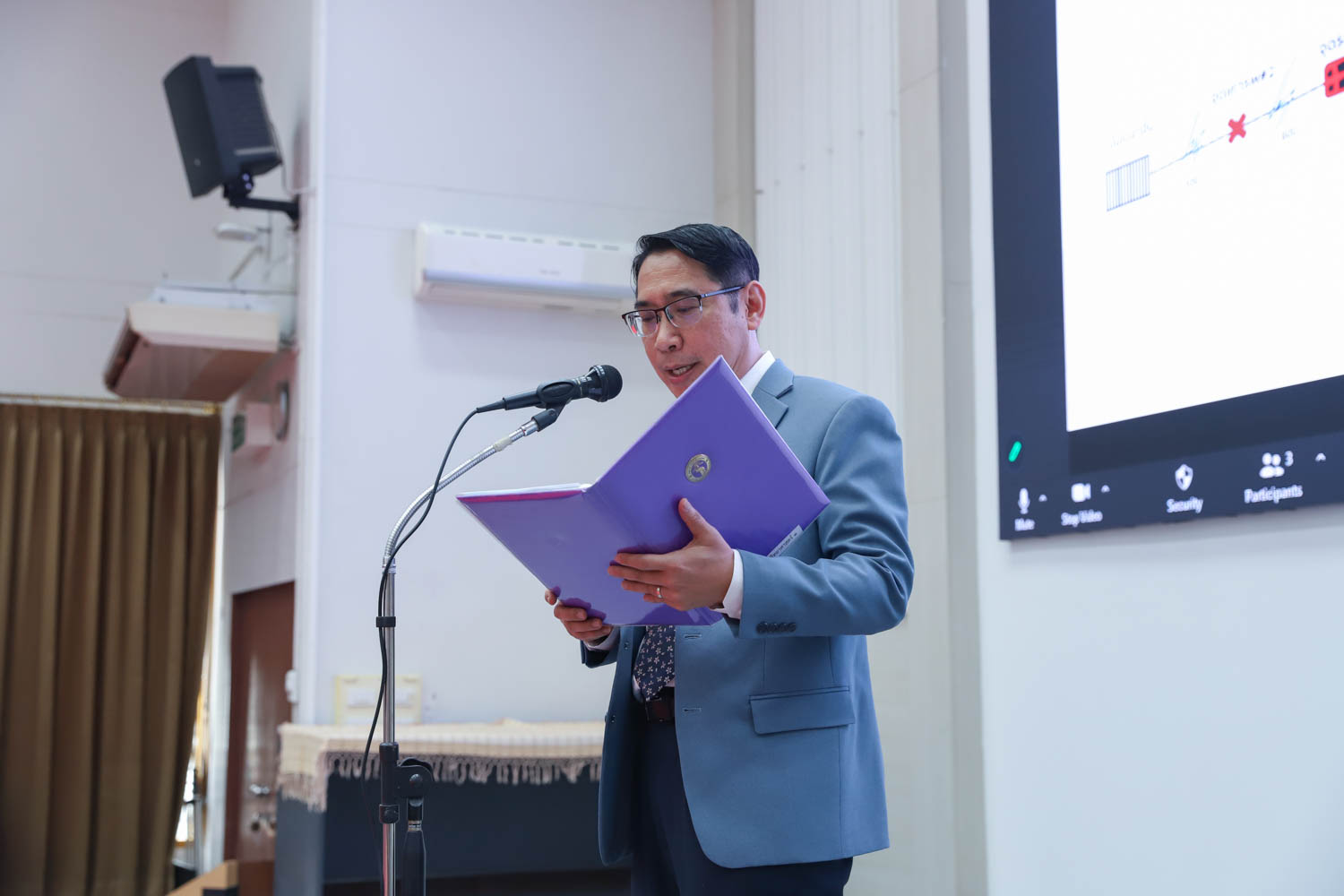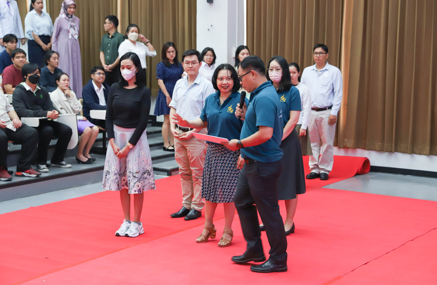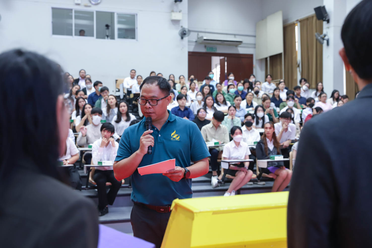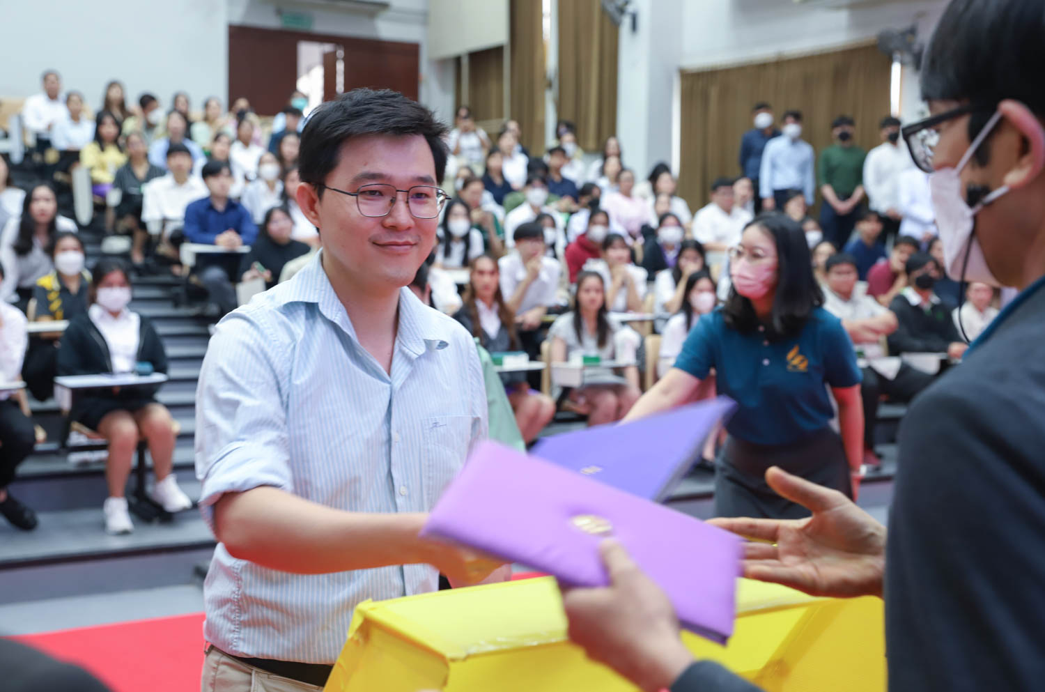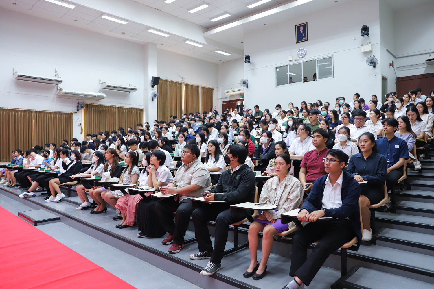 ศาสตราจารย์ (เชี่ยวชาญพิเศษ) ดร.ธรณินทร์ ไชยเรืองศรี คณบดีคณะวิทยาศาสตร์ และคุณพร้อมพร อิศรางกูร ณ อยุธยา นายกสมาคมนักศึกษาเก่าคณะวิทยาศาสตร์ กล่าวต้อนรับ และแสดงความยินดีกับบัณฑิตใหม่ของคณะวิทยาศาสตร์ ที่จะเข้ารับพระราชทานปริญญาบัตร ครั้งที่ 58 ของมหาวิทยาลัยเชียงใหม่ ในวันที่ 29-30 มกราคม 2567 ในการฝึกซ้อมเข้ารับพระราชทานปริญญาบัตรของบัณฑิตคณะวิทยาศาสตร์ เมื่อวันที่ 26 มกราคม 2567 ณ ห้องบรรยาย SCB2100 อาคาร 40 ปี คณะวิทยาศาสตร์